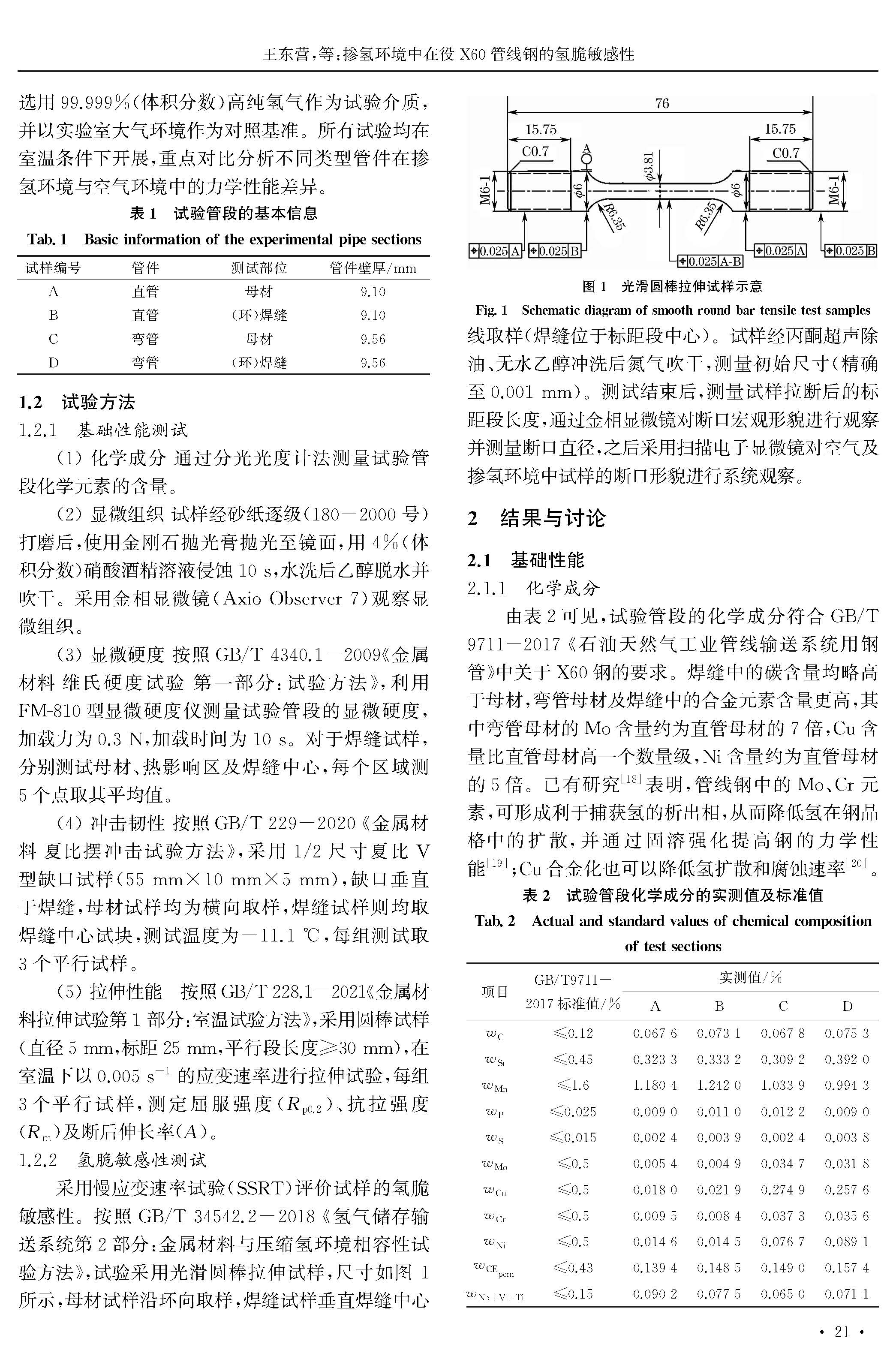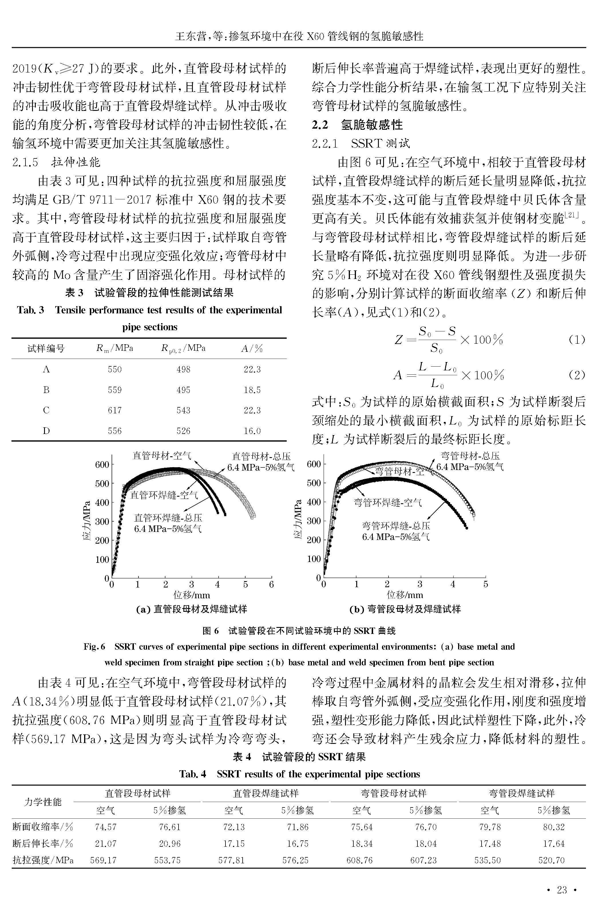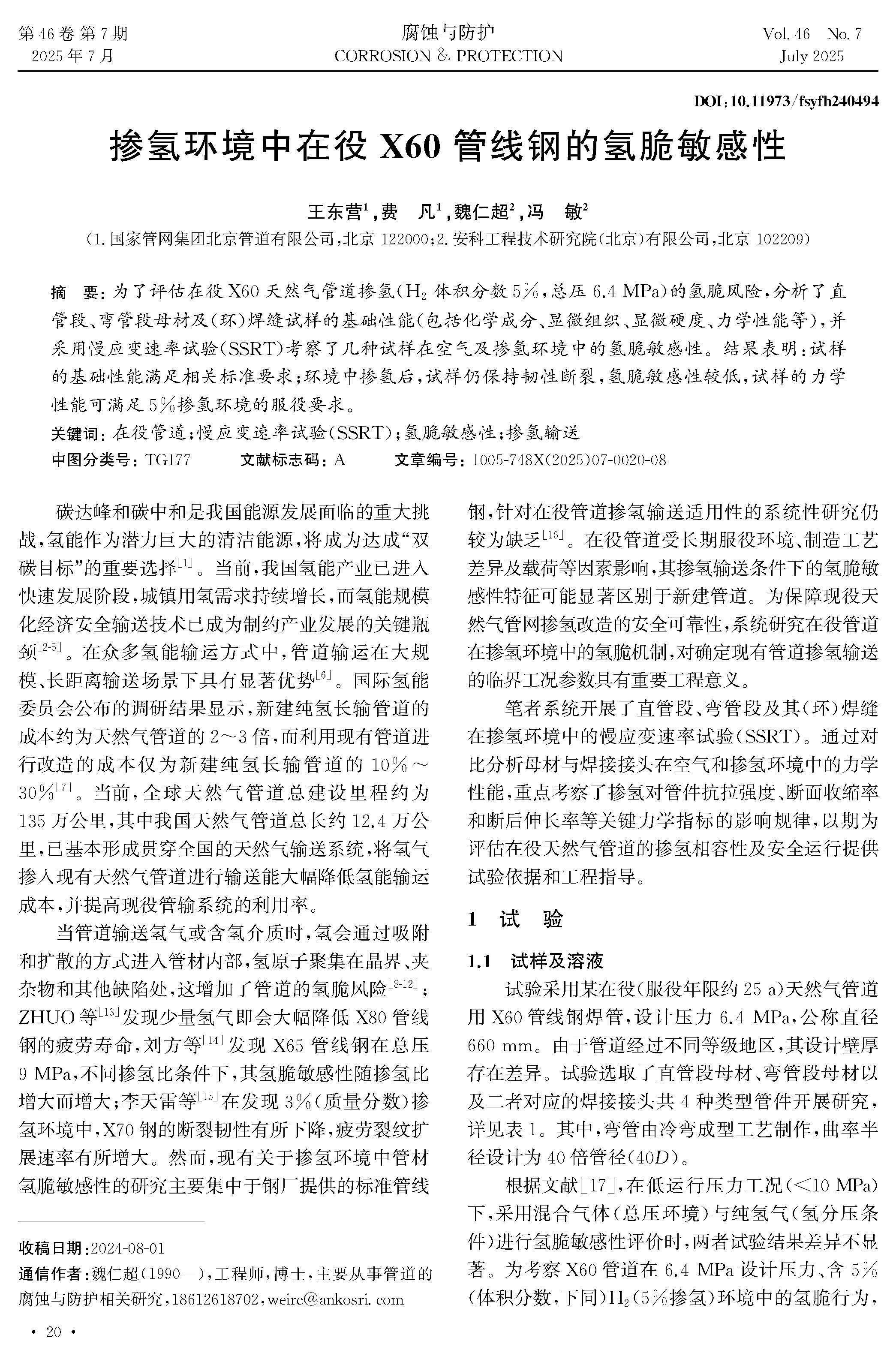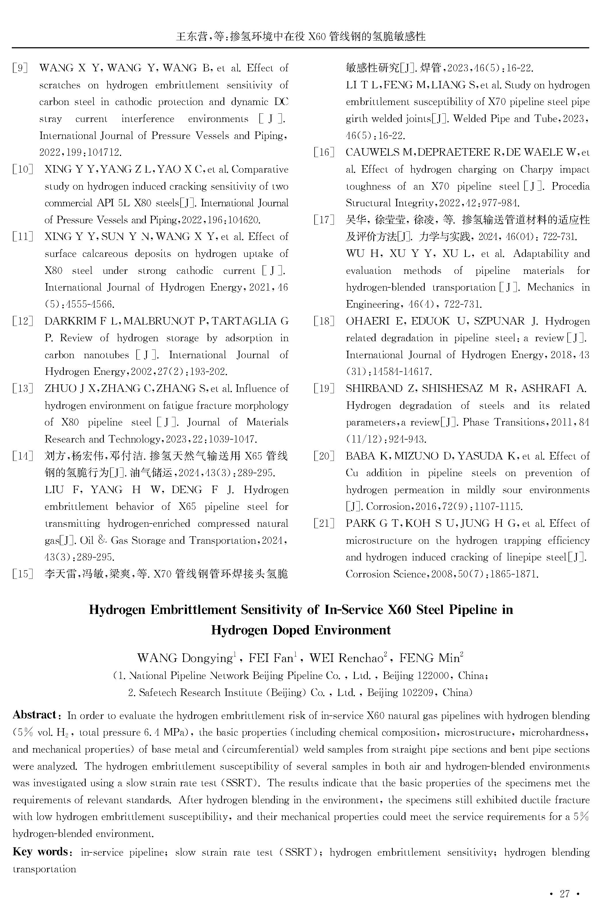 掺氢环境中在役X60管线钢的氢脆敏感性