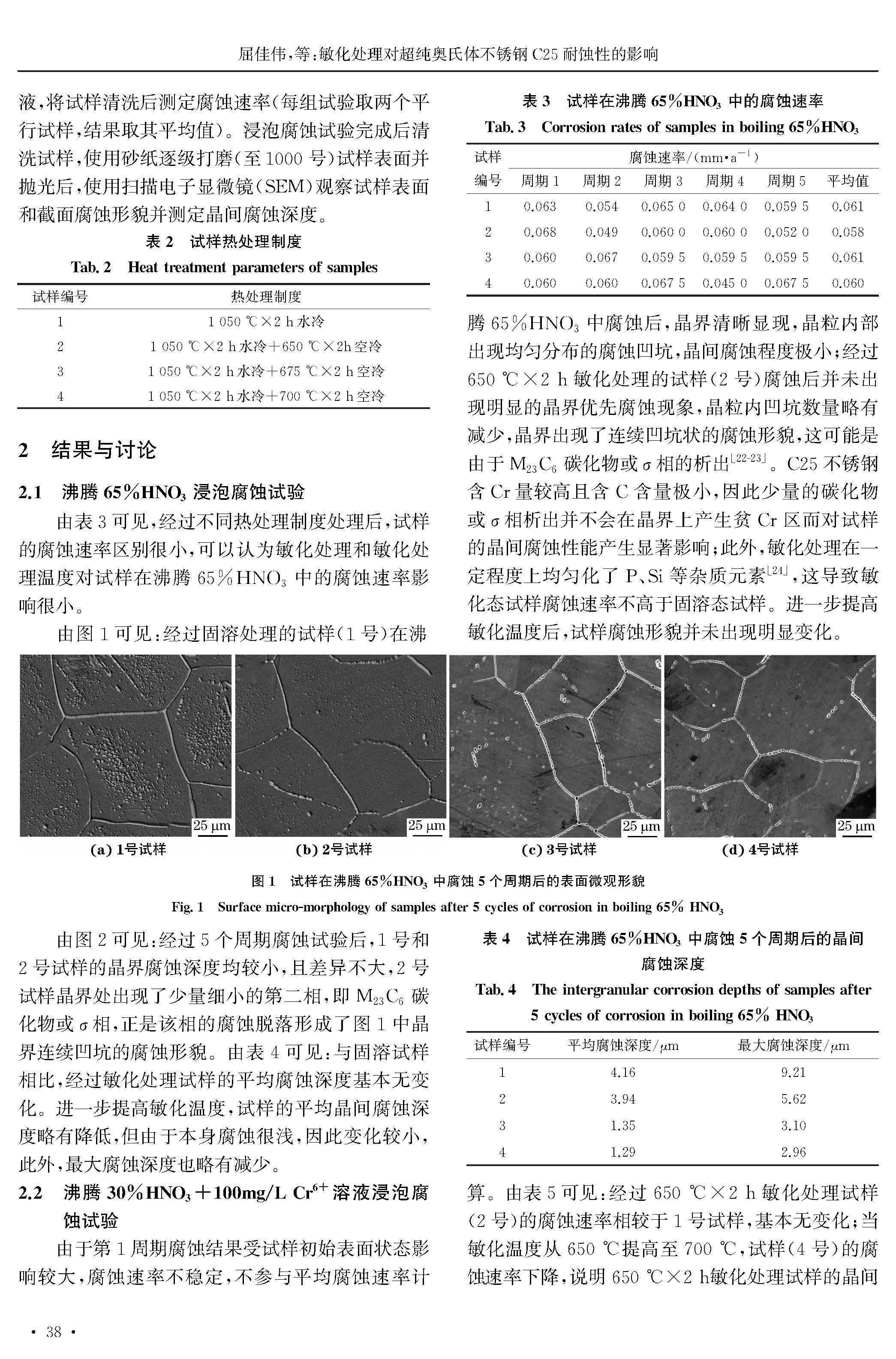 敏化处理对超纯奥氏体不锈钢C25耐蚀性的影响