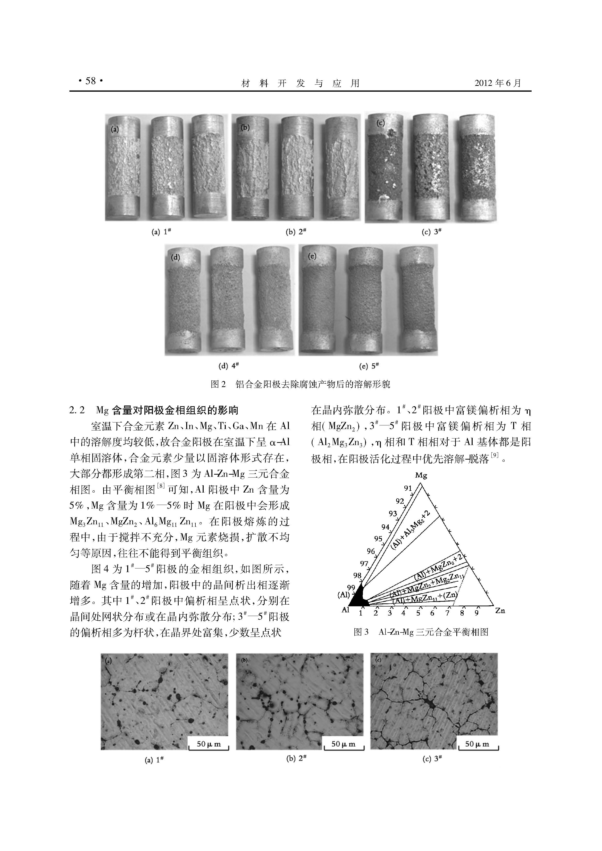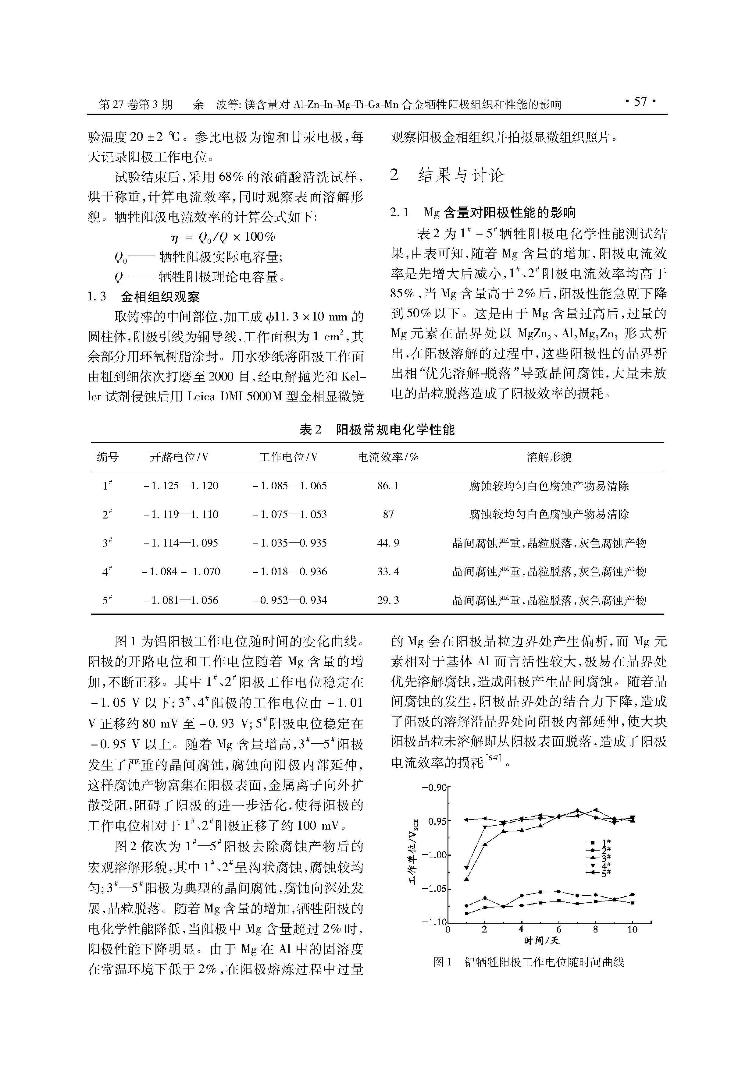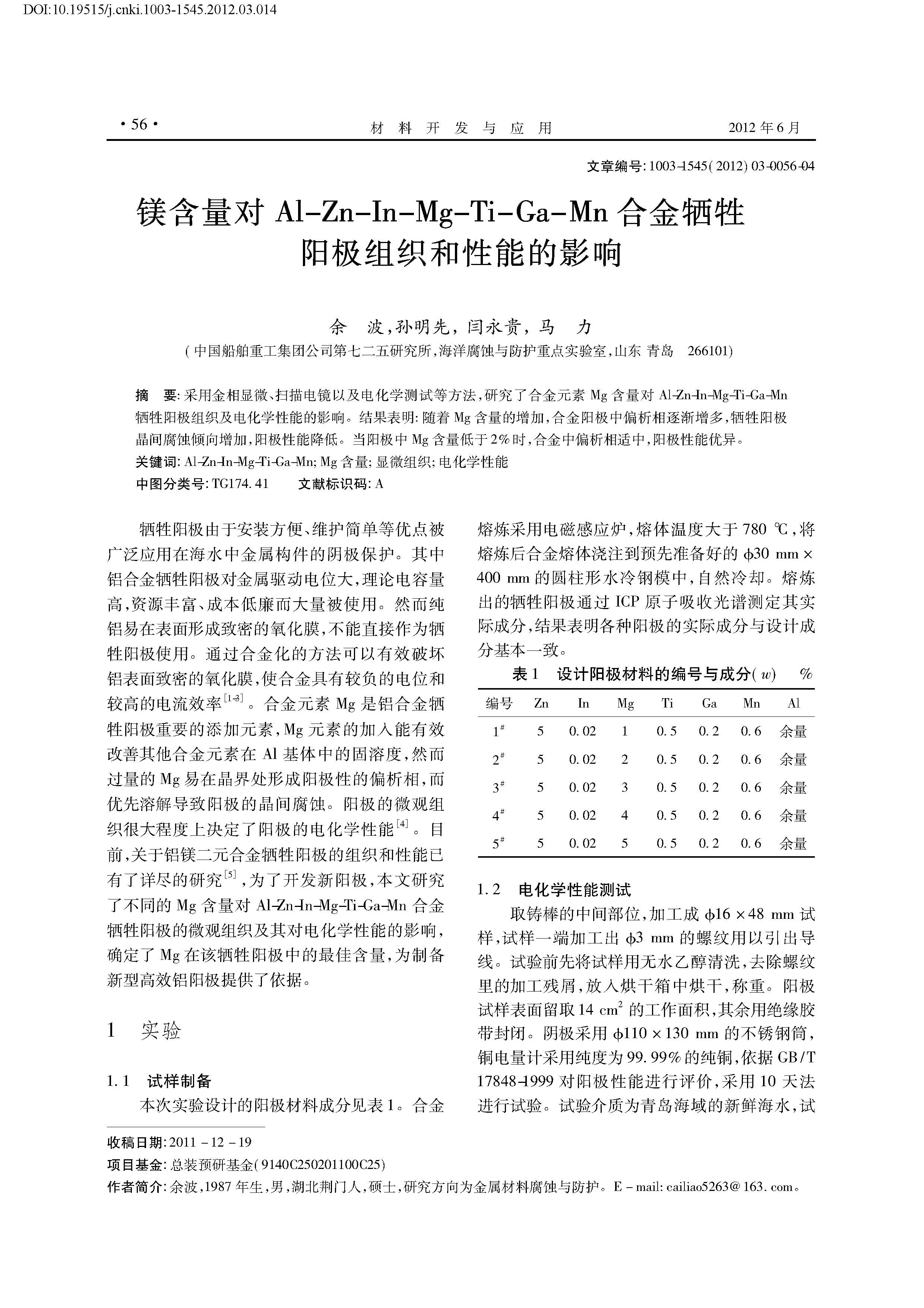 镁含量对 Al-Zn-In-Mg-Ti-Ga-Mn 合金牺牲阳极组织和性能的影响