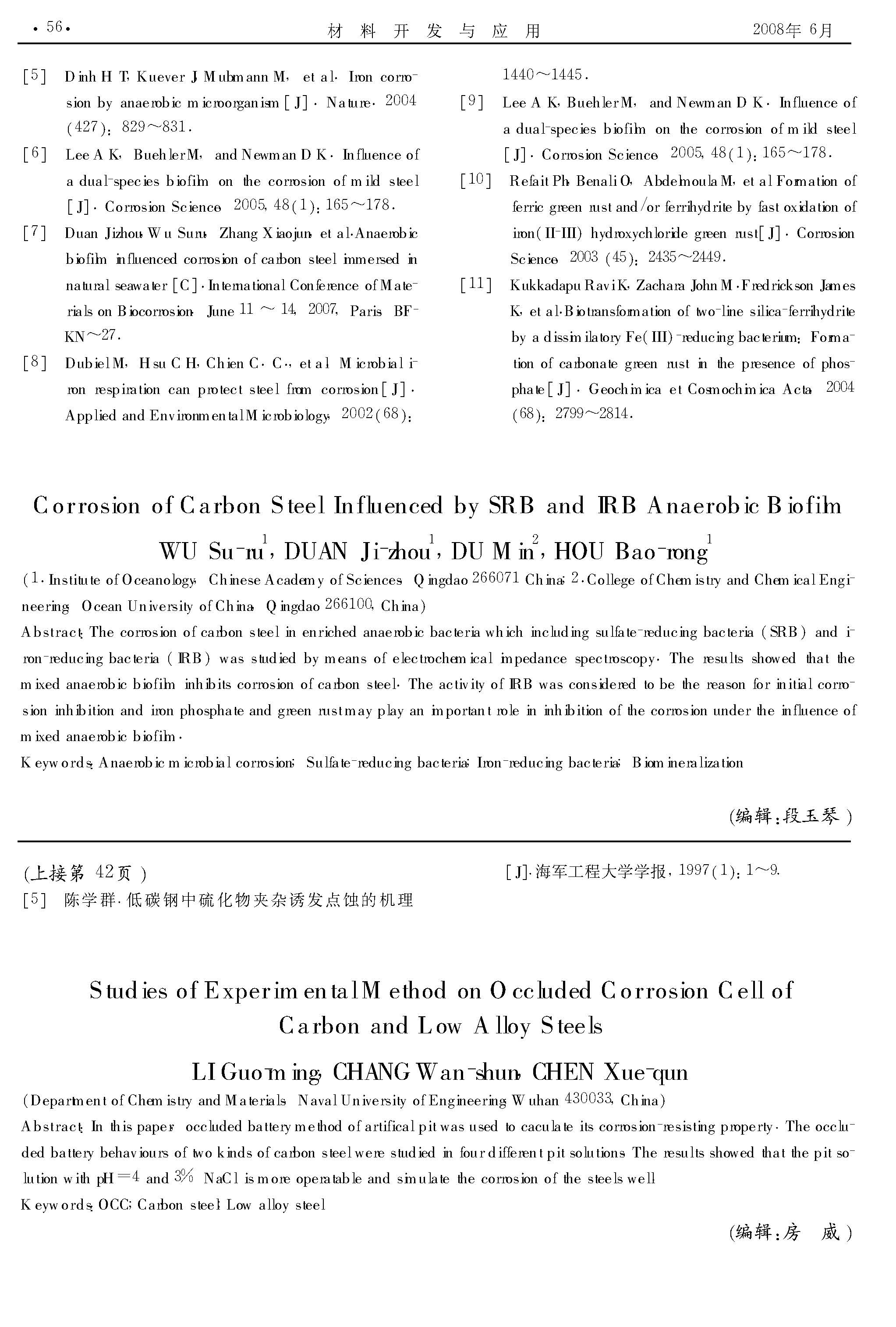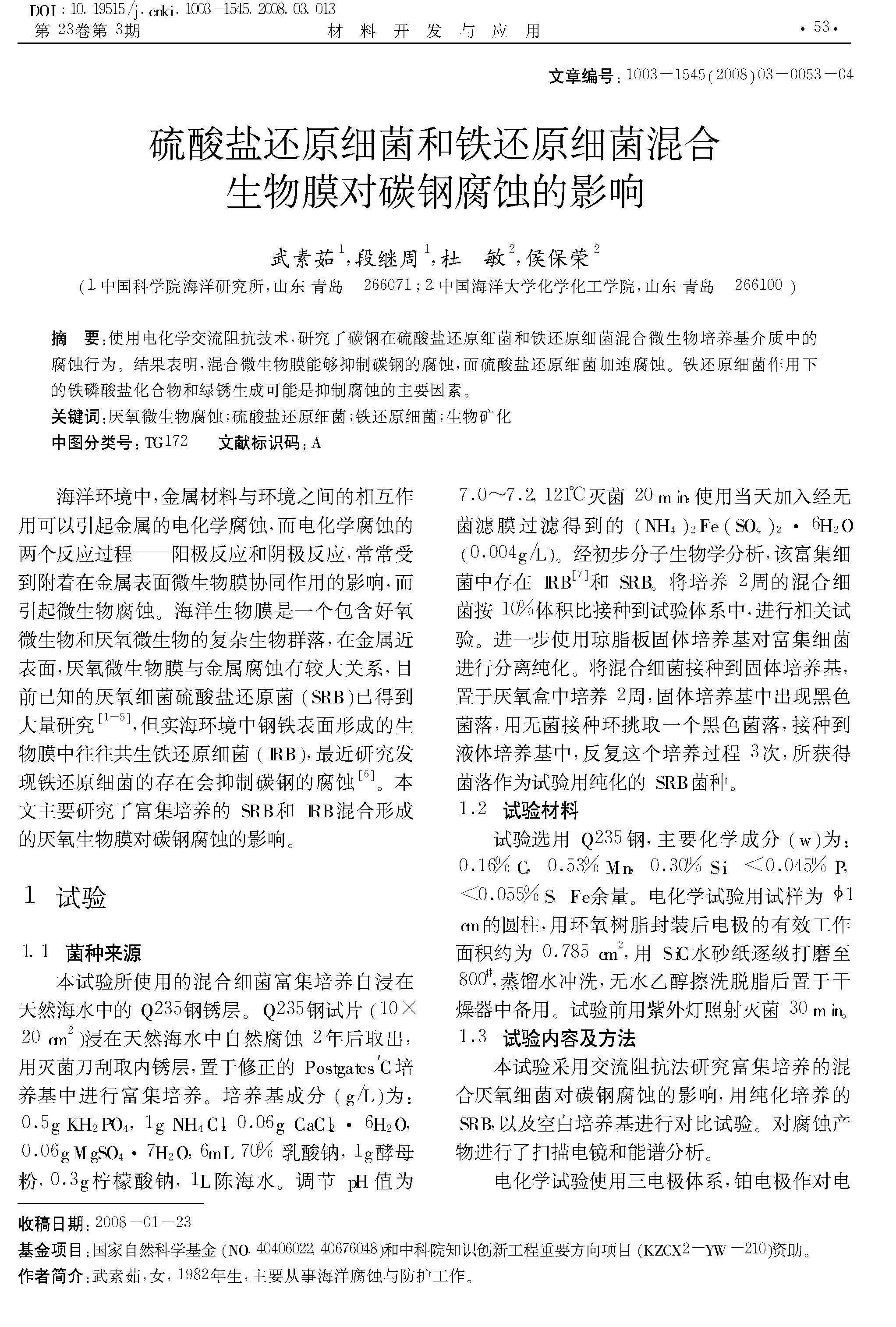 硫酸盐还原细菌和铁还原细菌混合生物膜对碳钢腐蚀的影响