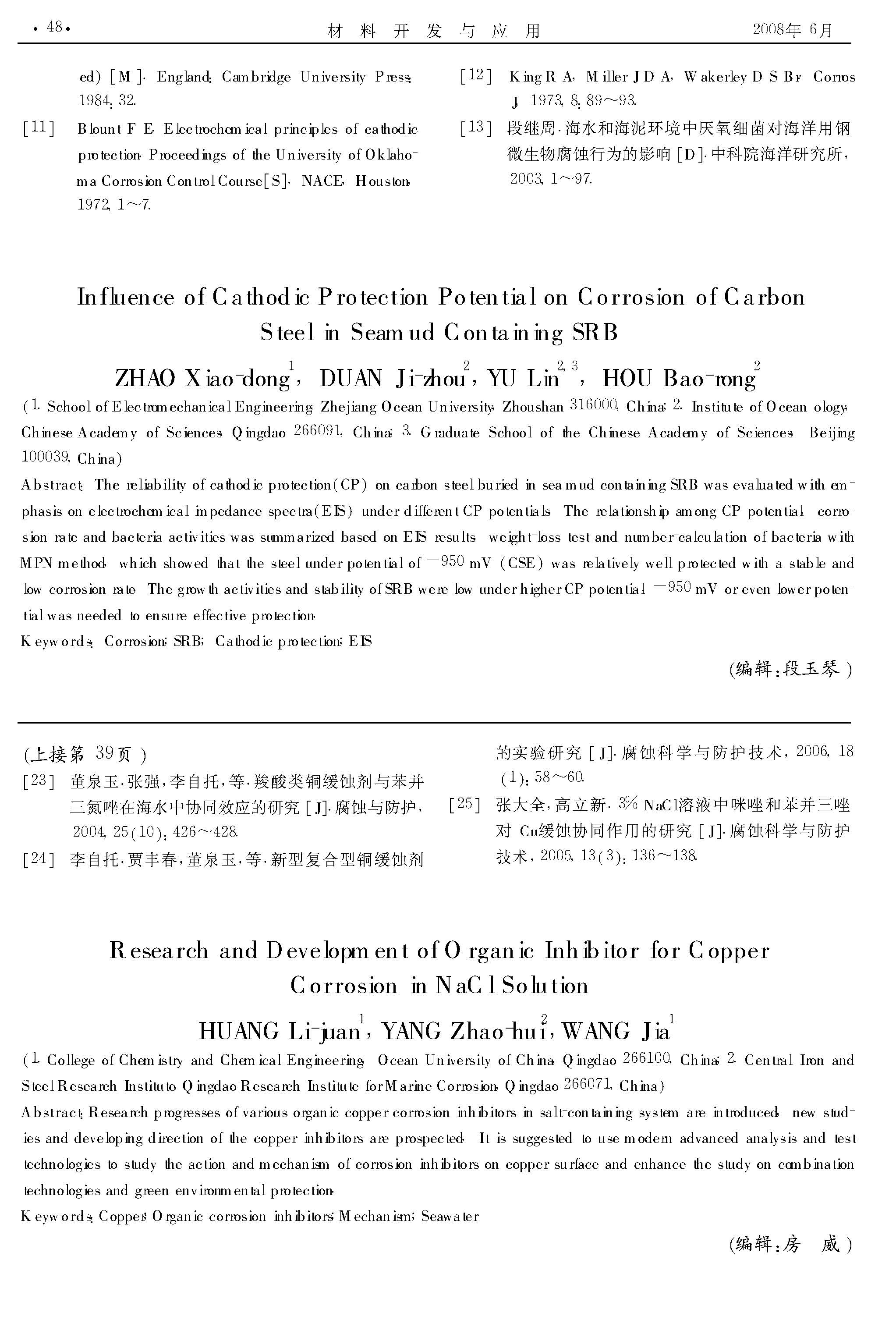 含有硫酸盐还原菌的海泥中阴极保护电位对碳钢腐蚀的影响