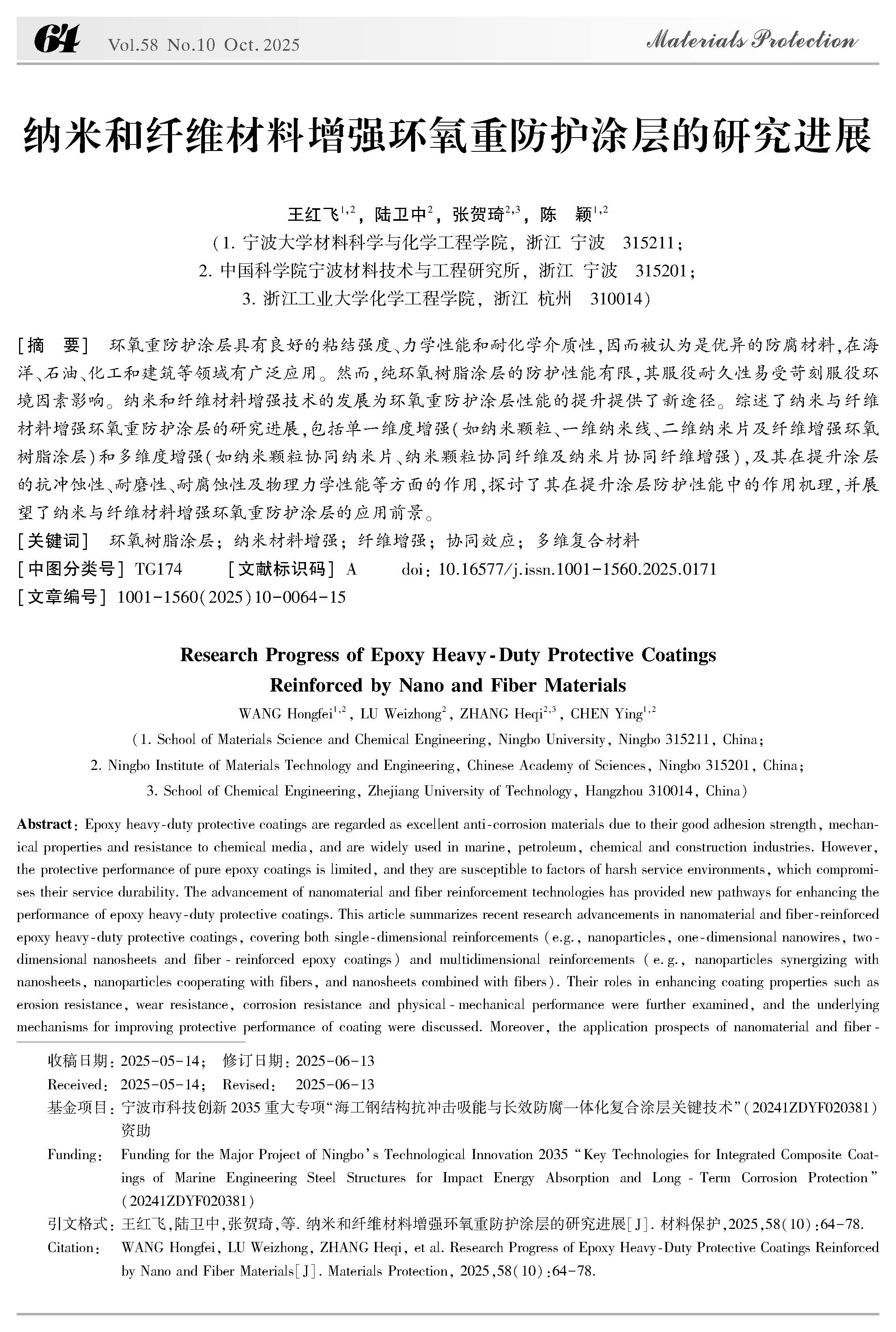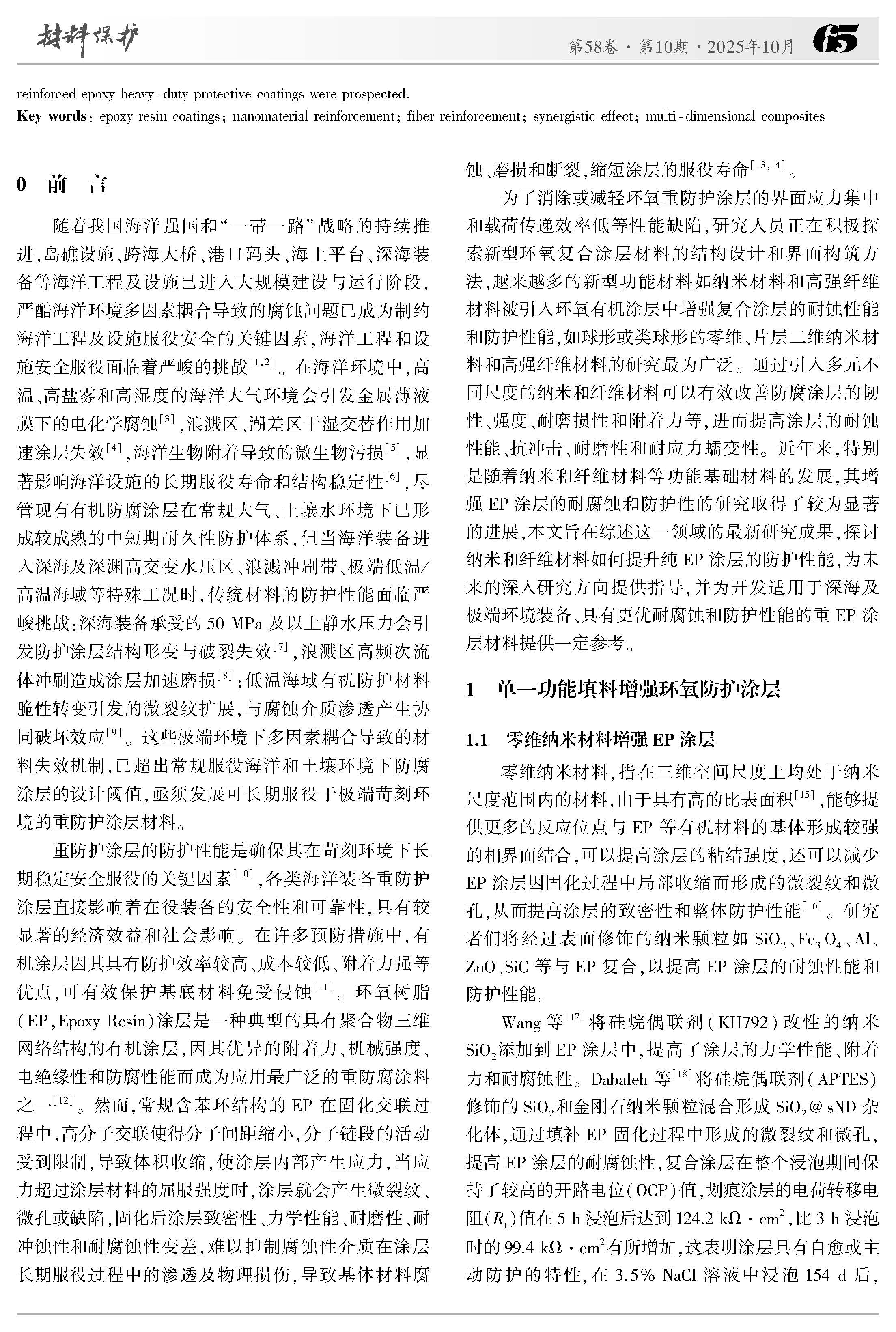 纳米和纤维材料增强环氧重防护涂层的研究进展