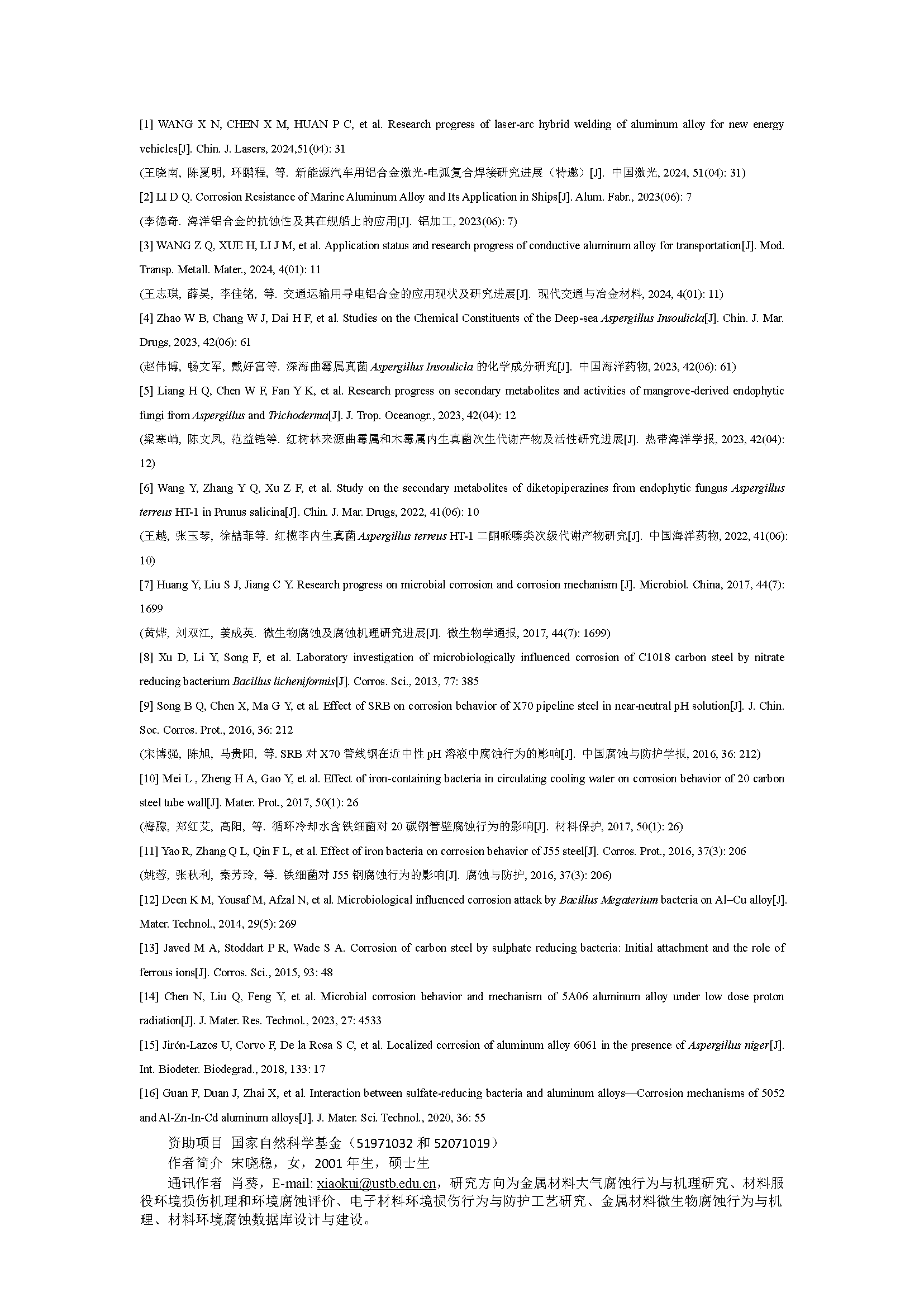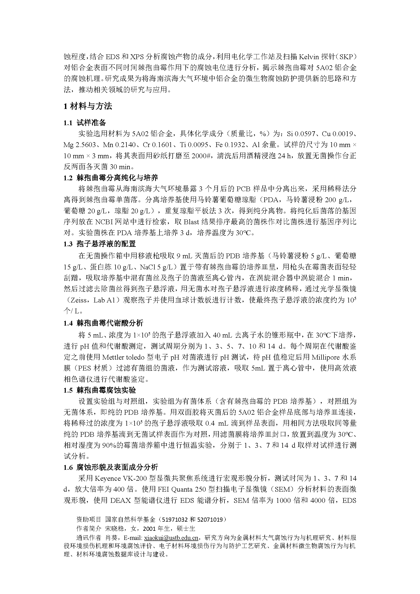 海南滨海大气环境中棘孢曲霉对铝合金腐蚀行为影响