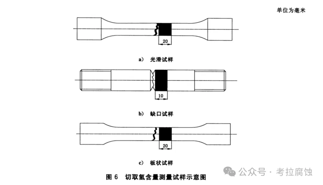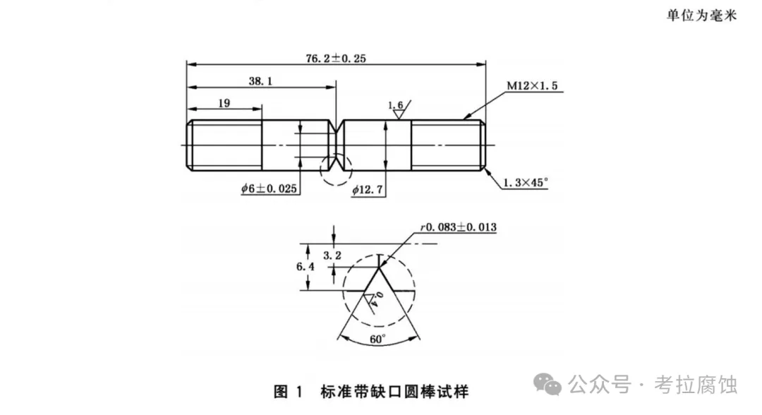 【1】ISO 16573:2015 Steel- Measurement method for the evaluation of hydrogen embirttlement resistance of high strenth steelsISO 16573:2015中推荐的试样尺寸,下图。直径D=10mm的试样为标准试样。根据实际情况,小尺寸试样(如,D=5mm),r/D=0.02等试样也可选用。【2】GB/T 39039-2020 高强钢氢致延迟断裂评价方法(Evaluation method for hydogen-induced fracture of high strength steels)取样部位按照GB/T 2975,推荐采用光滑试样、缺口试样、板状试样。试样几何尺寸如代表。建议采用直径10mm圆棒或厚度2mm的板状试样。【3】ASTM G142 Standard test methof for determination of susceptibility of metals to embrittlement in hydrogen containing environments at High pressure, High temperature, or Both中给出的标准光滑试样和标准缺口试样。【4】GB/T 34542.2 氢气储存输送系统 第2部分:金属材料与氢环境相容性试验方法,中给出的标准带缺口圆棒试样。