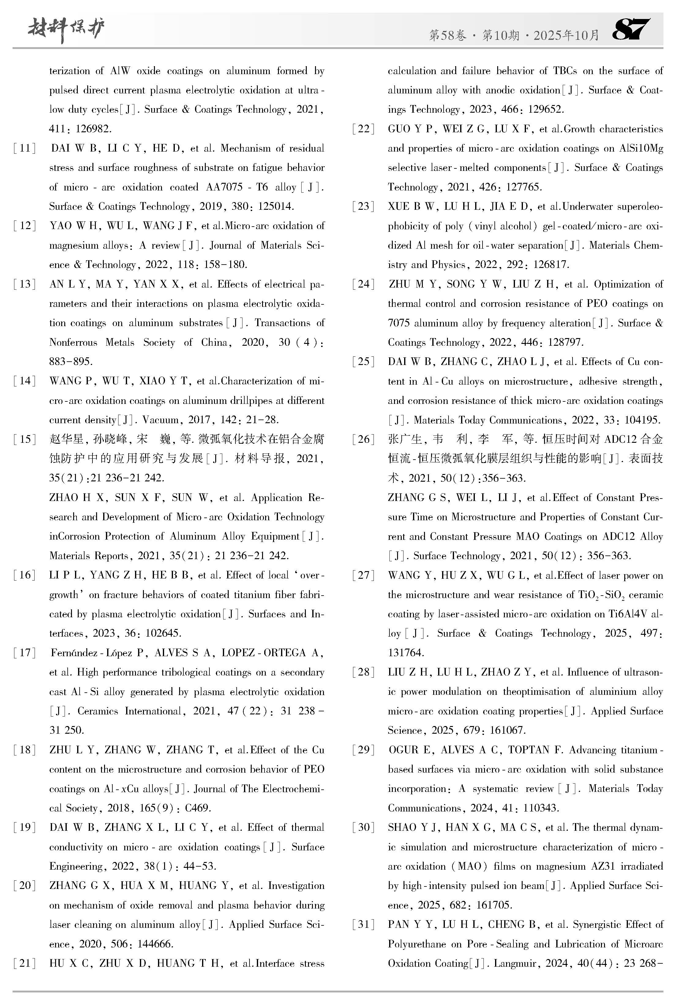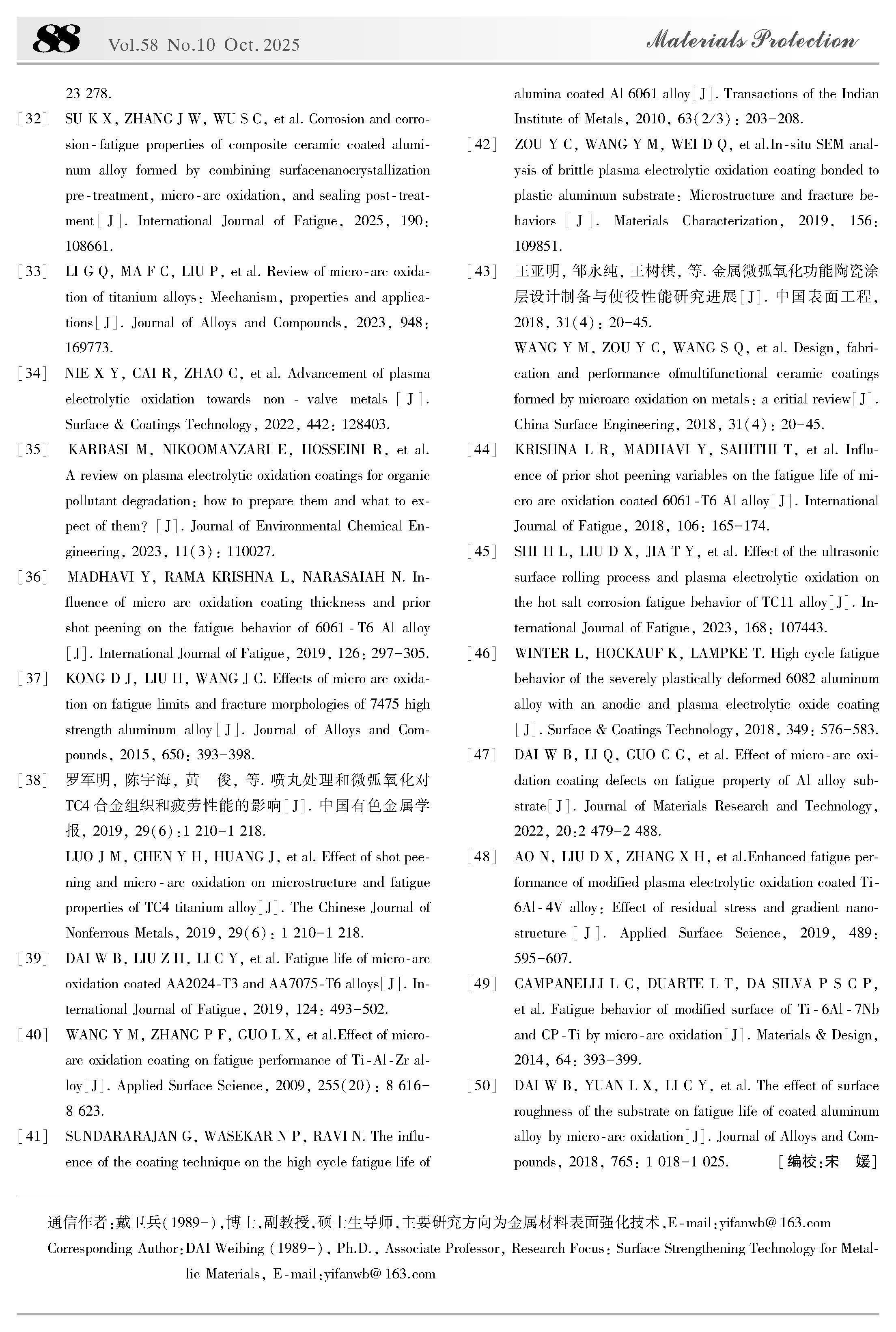 辽工程戴卫兵副教授:铝合金微弧氧化膜层的多缺陷和疲劳行为研究进展