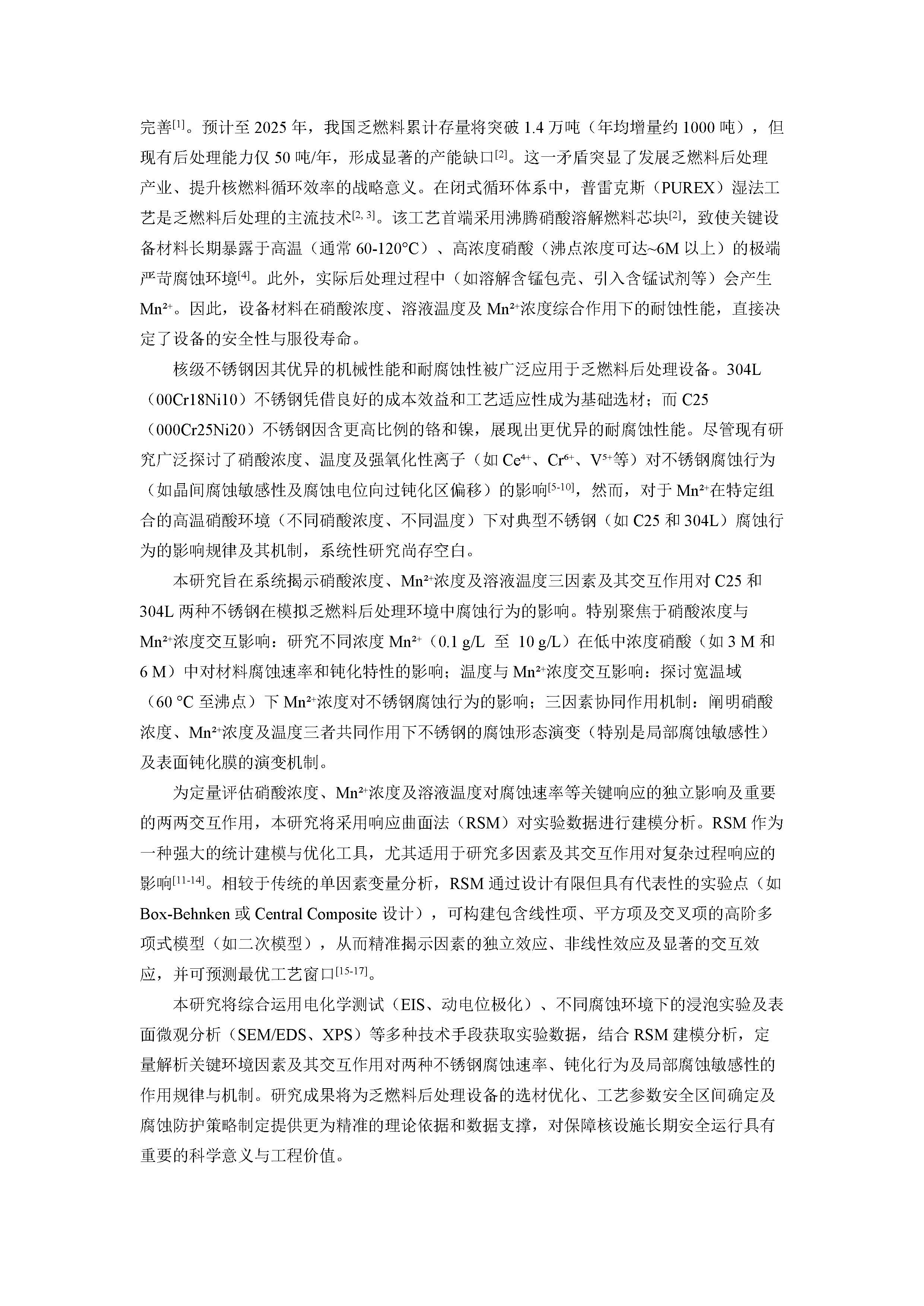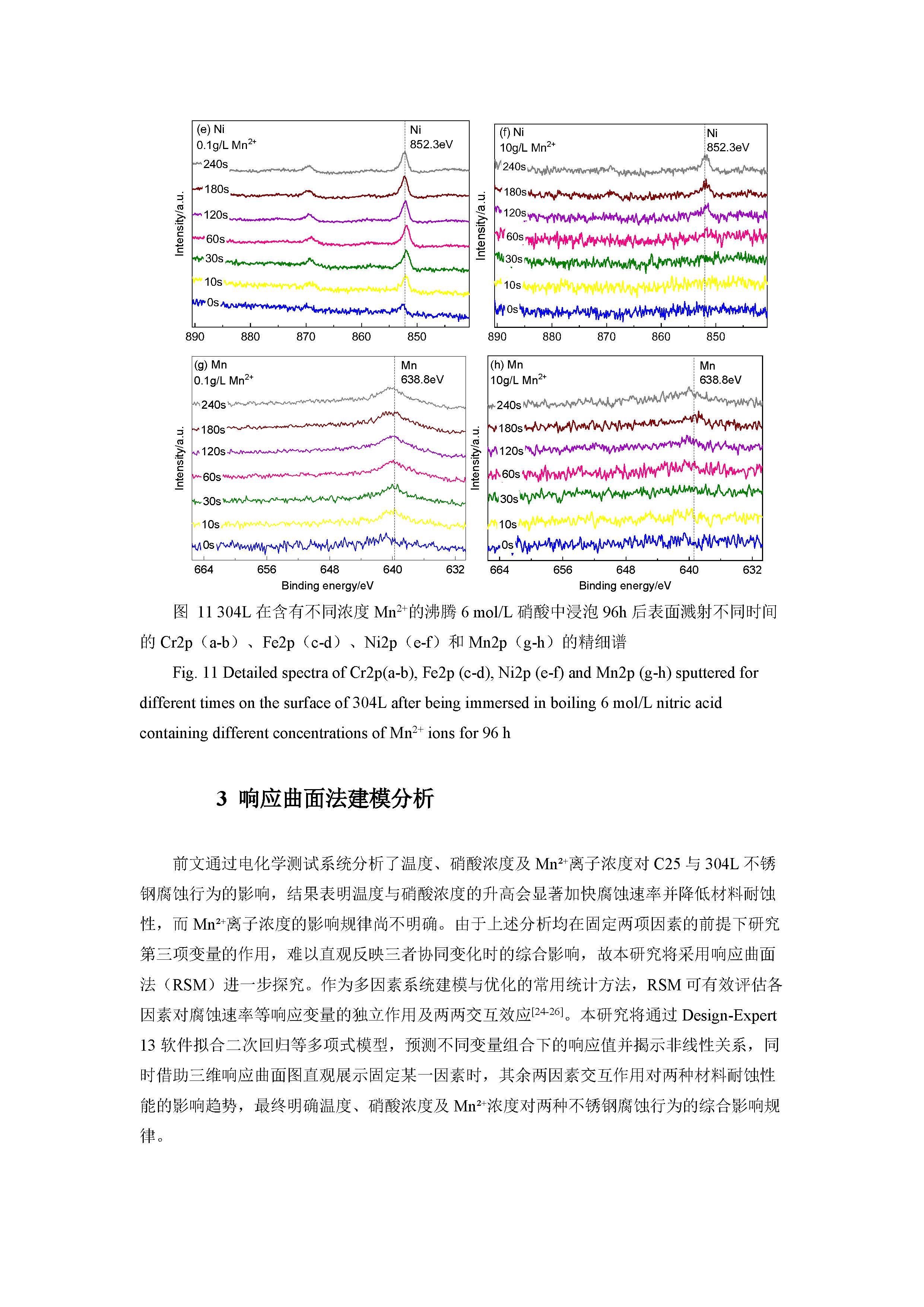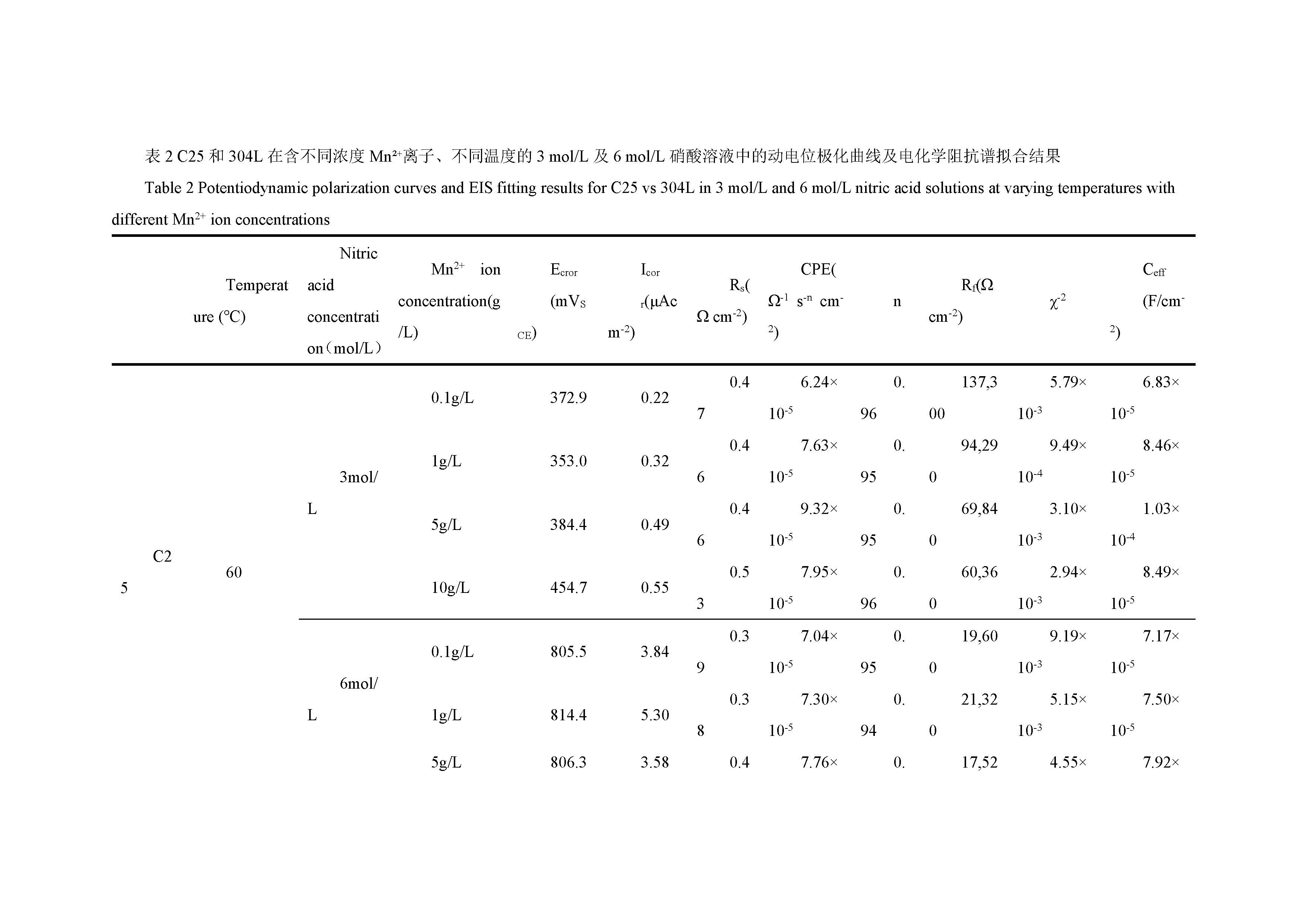Mn2+对304L和C25不锈钢在高温硝酸中腐蚀行为的协同作用机制与响应曲面模型研究