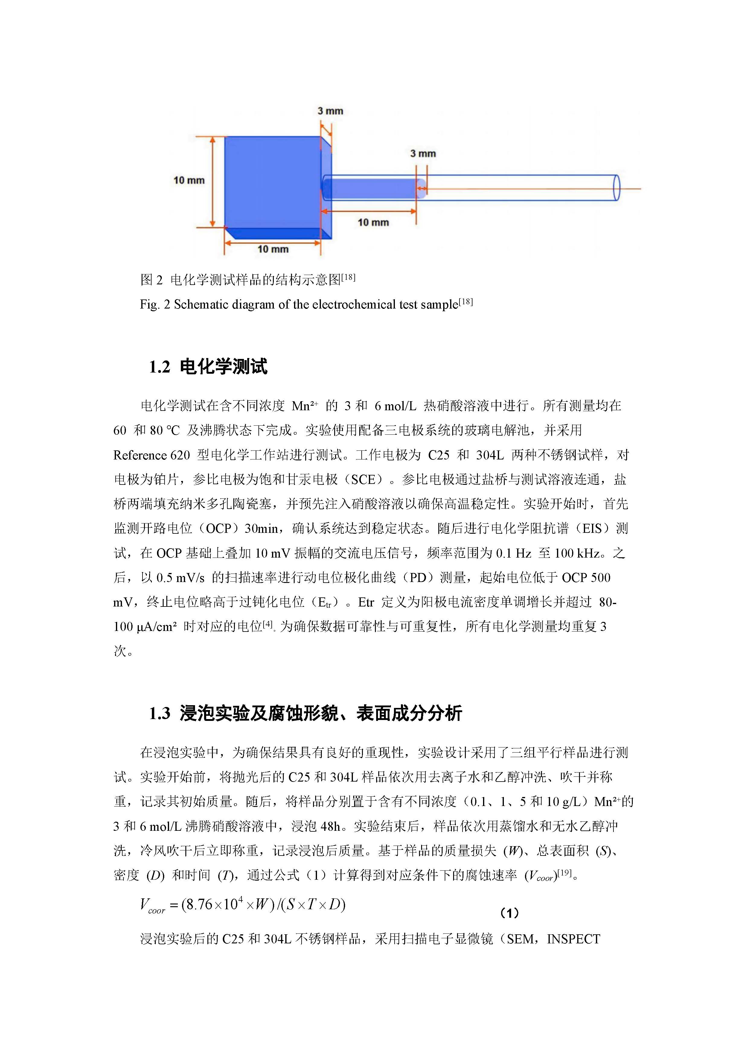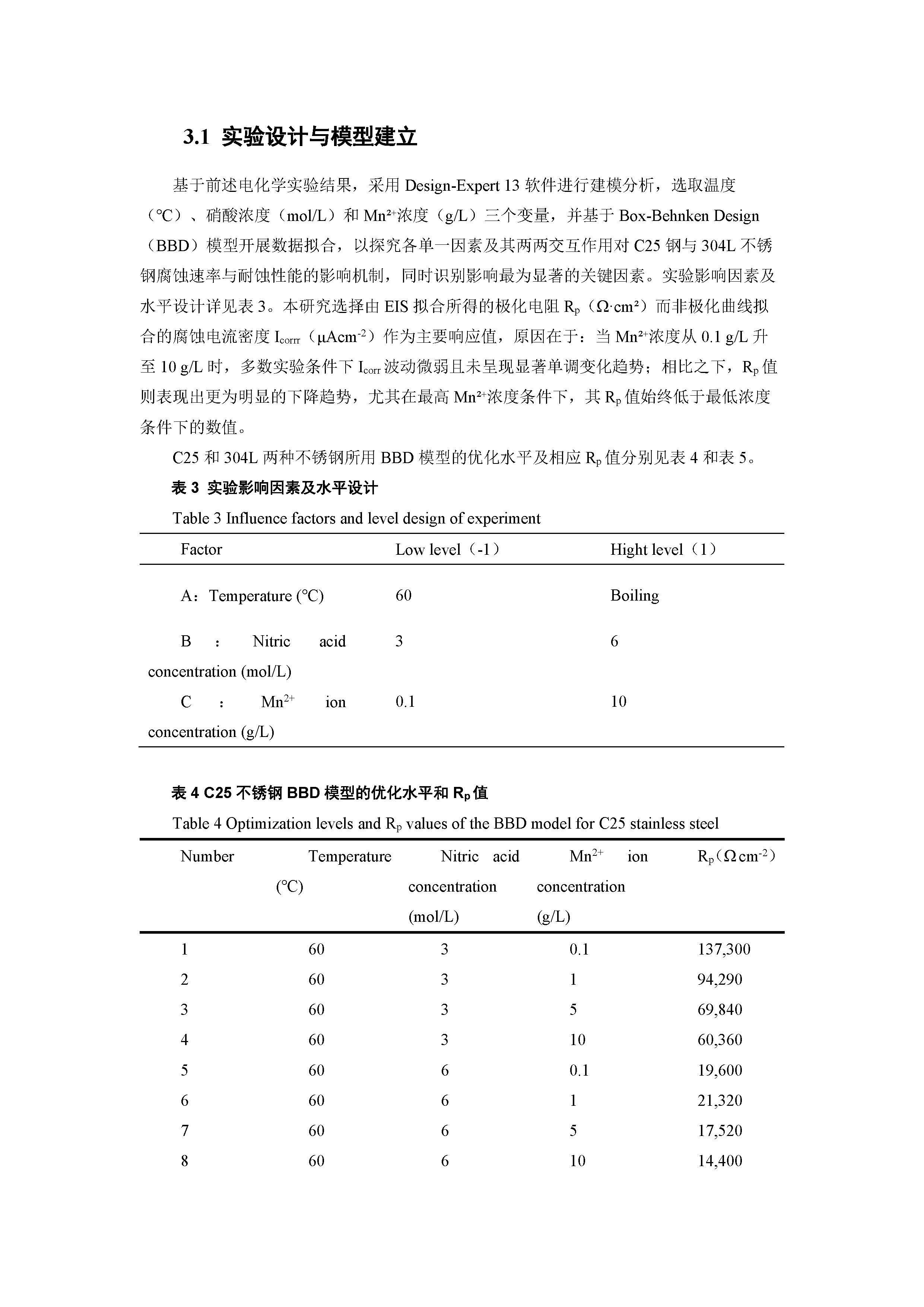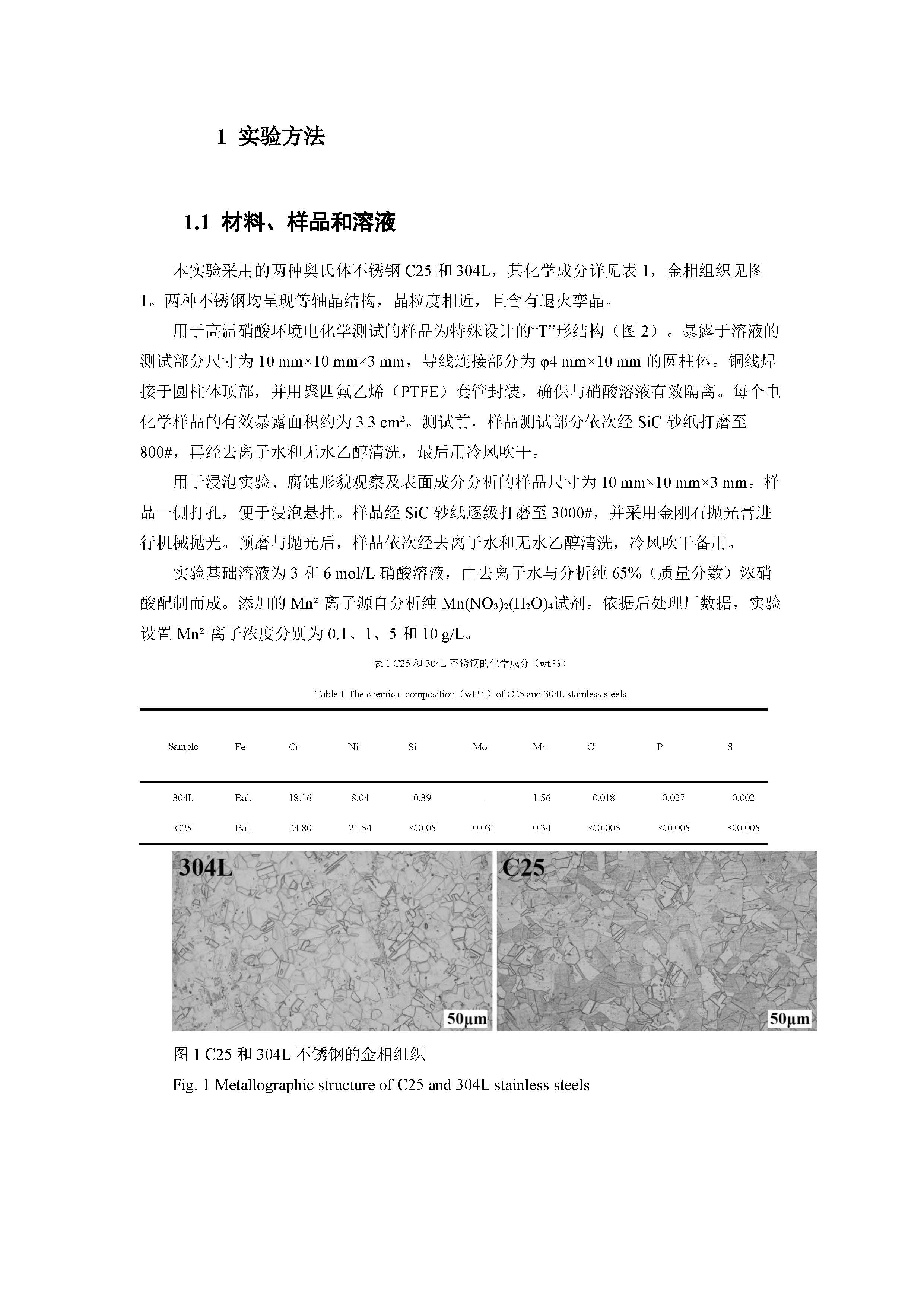 Mn2+对304L和C25不锈钢在高温硝酸中腐蚀行为的协同作用机制与响应曲面模型研究