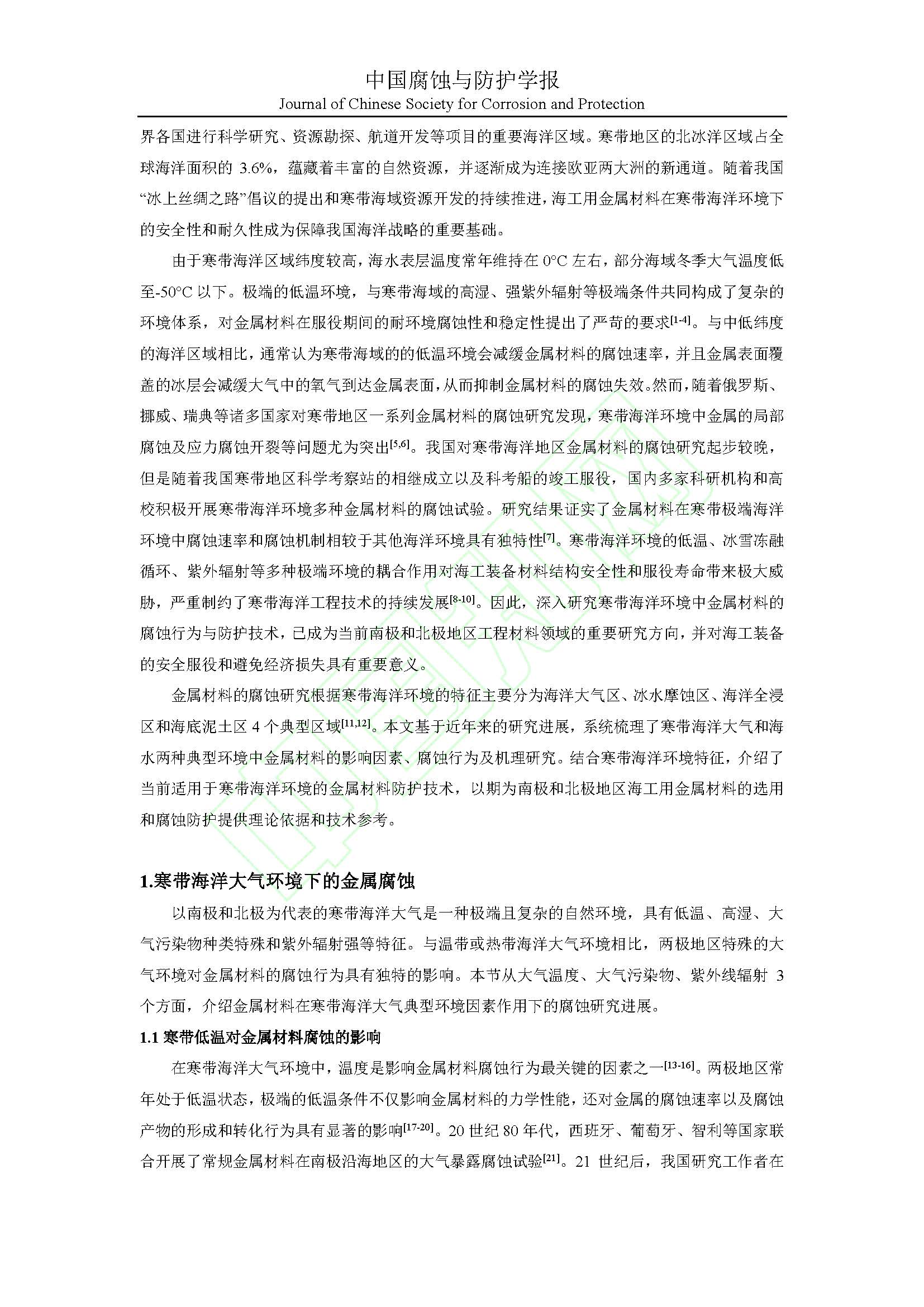 寒带海洋环境下金属材料腐蚀与防护研究进展