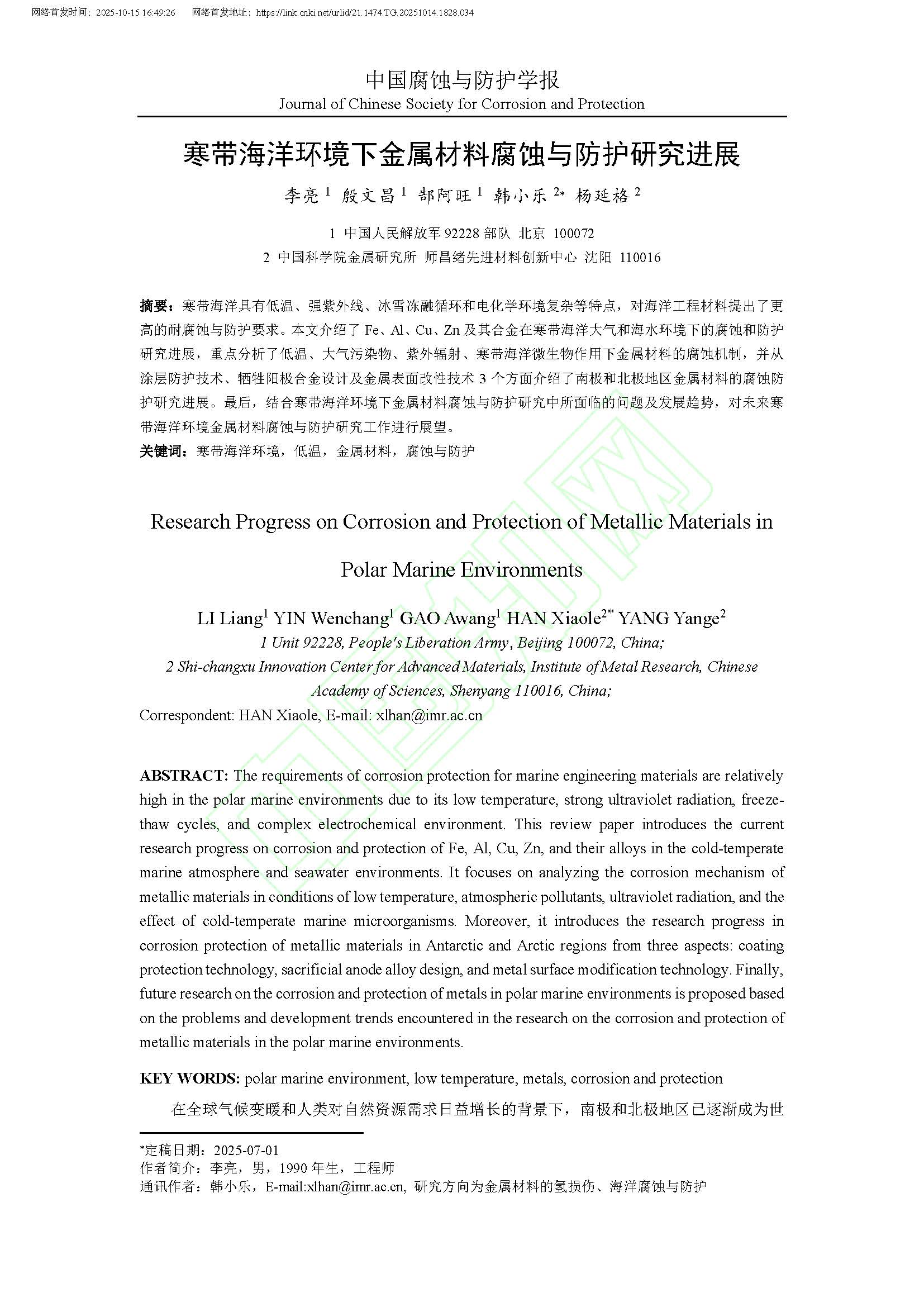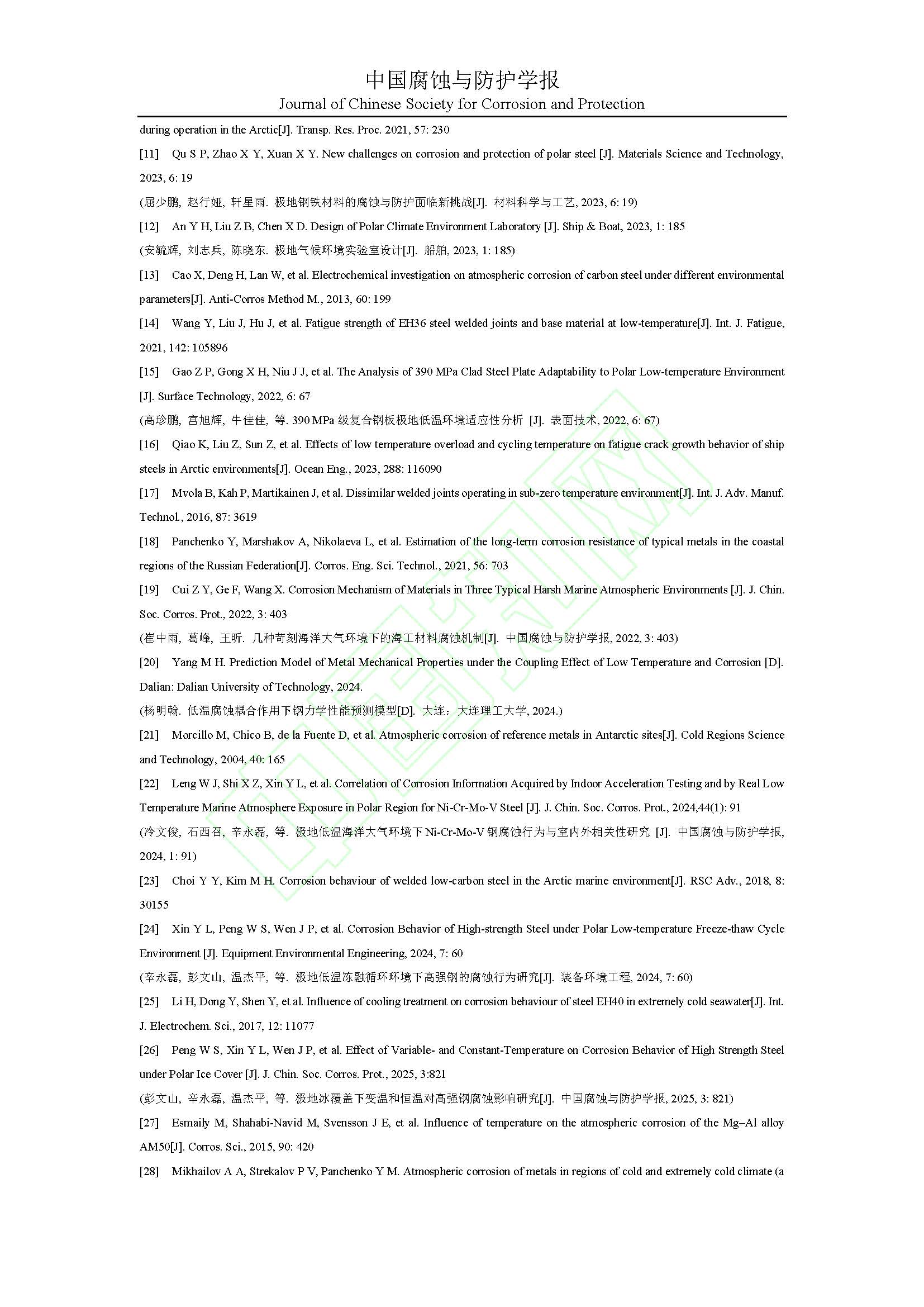 来源:中国腐蚀与防护学报