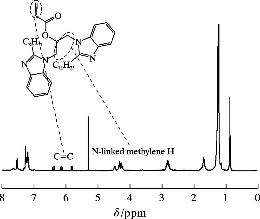 通过酰胺成环、取代反应等一系列反应,以月桂酸和邻苯二胺为主要原料,合成一种新型绿色双苯并咪唑环衍生物(AUB)油气田缓蚀剂。通过傅里叶红外光谱(FTIR)和核磁共振氢谱(1H NMR)确认了AUB的结构,验证了AUB的成功合成。通过扫描电子显微镜、能谱仪、Raman光谱仪、X射线衍射仪测试分析和正置荧光显微镜对试样的腐蚀表面进行分析,通过电化学测试研究了AUB在模拟酸性油气田条件下对Q235钢的缓蚀、阻垢和耐SRB腐蚀性能。