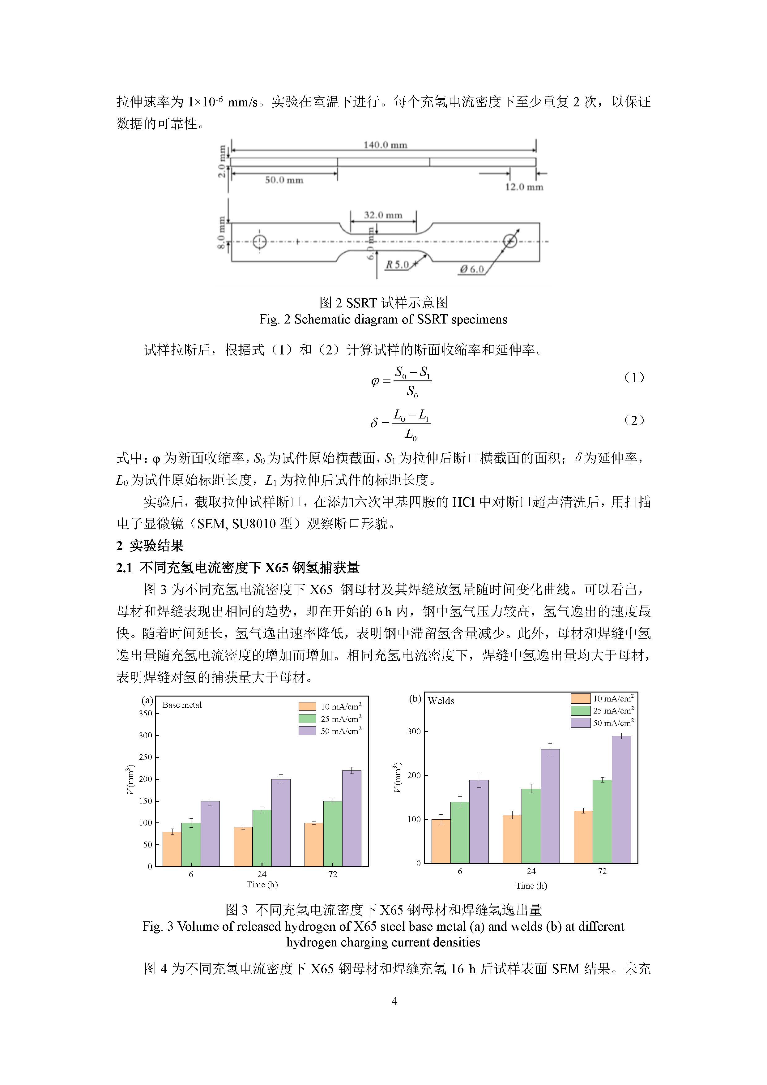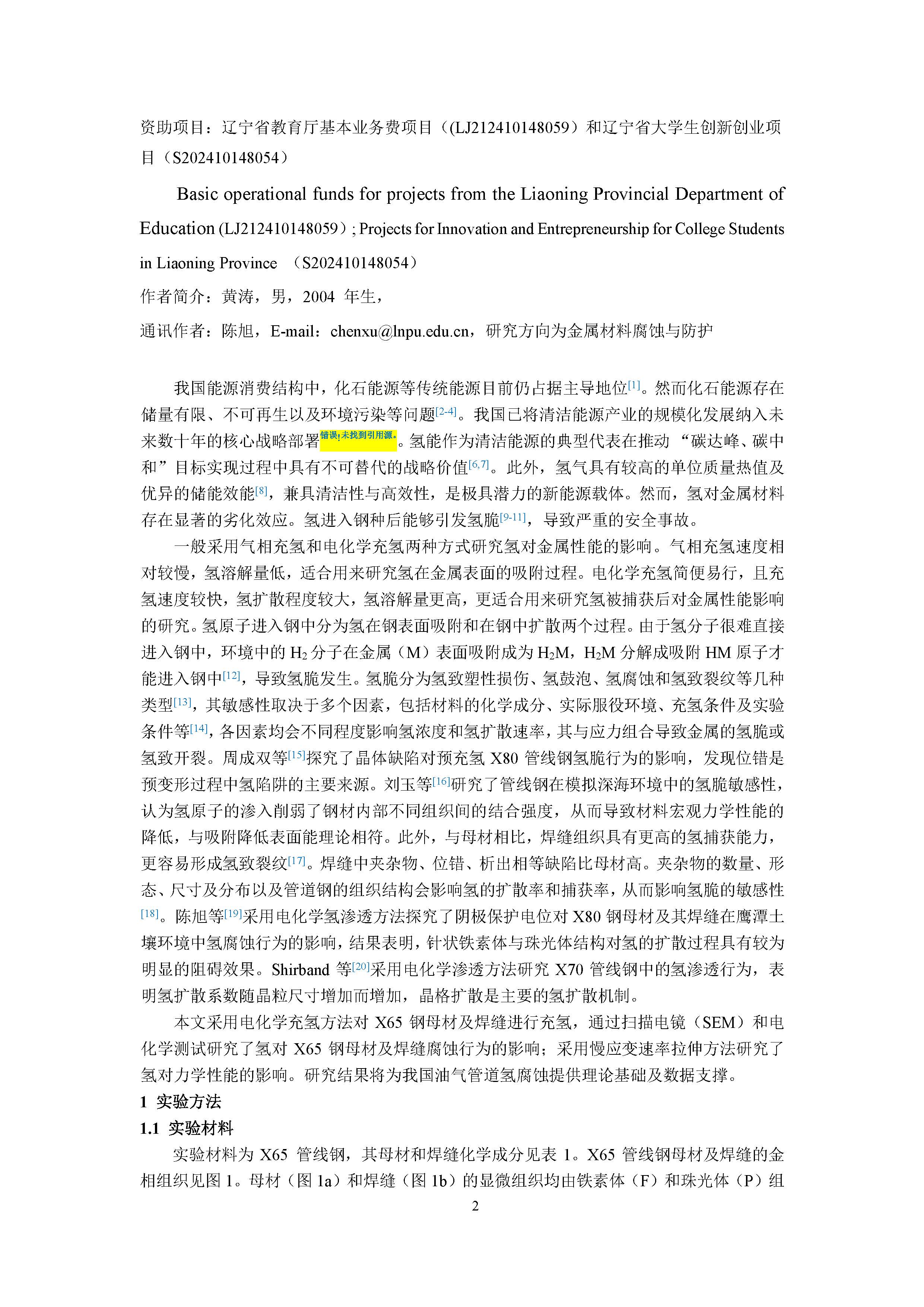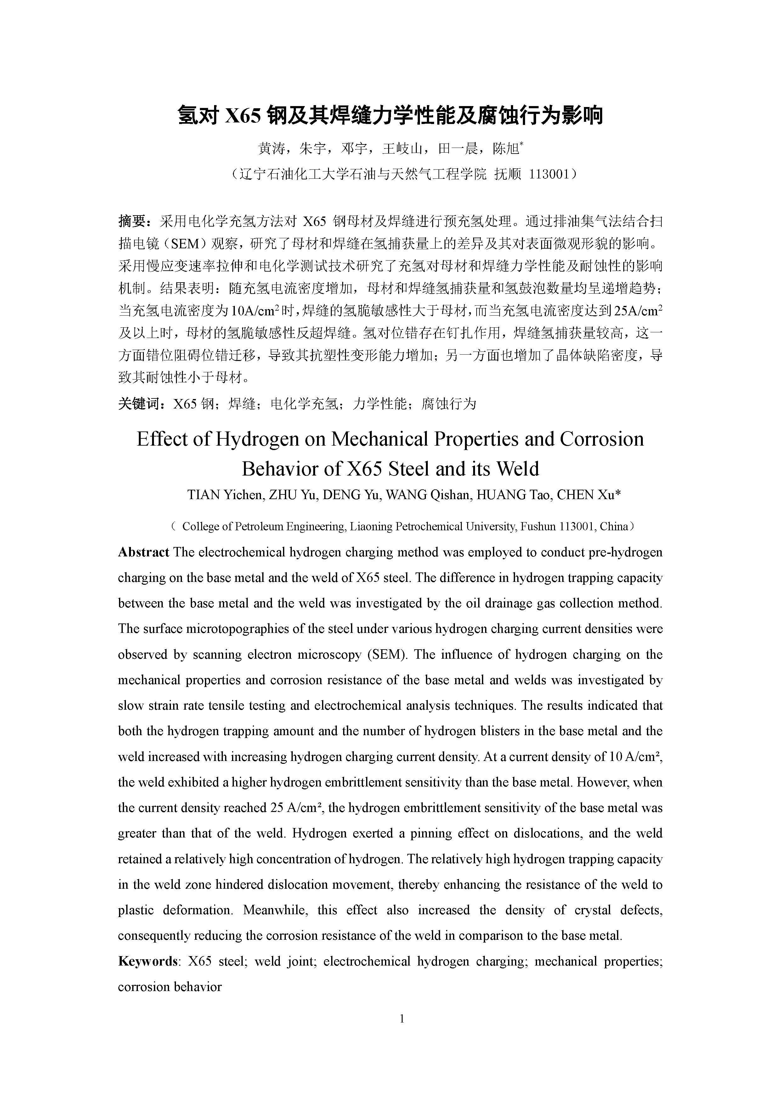 氢对 X65 钢及其焊缝力学性能及腐蚀行为影响