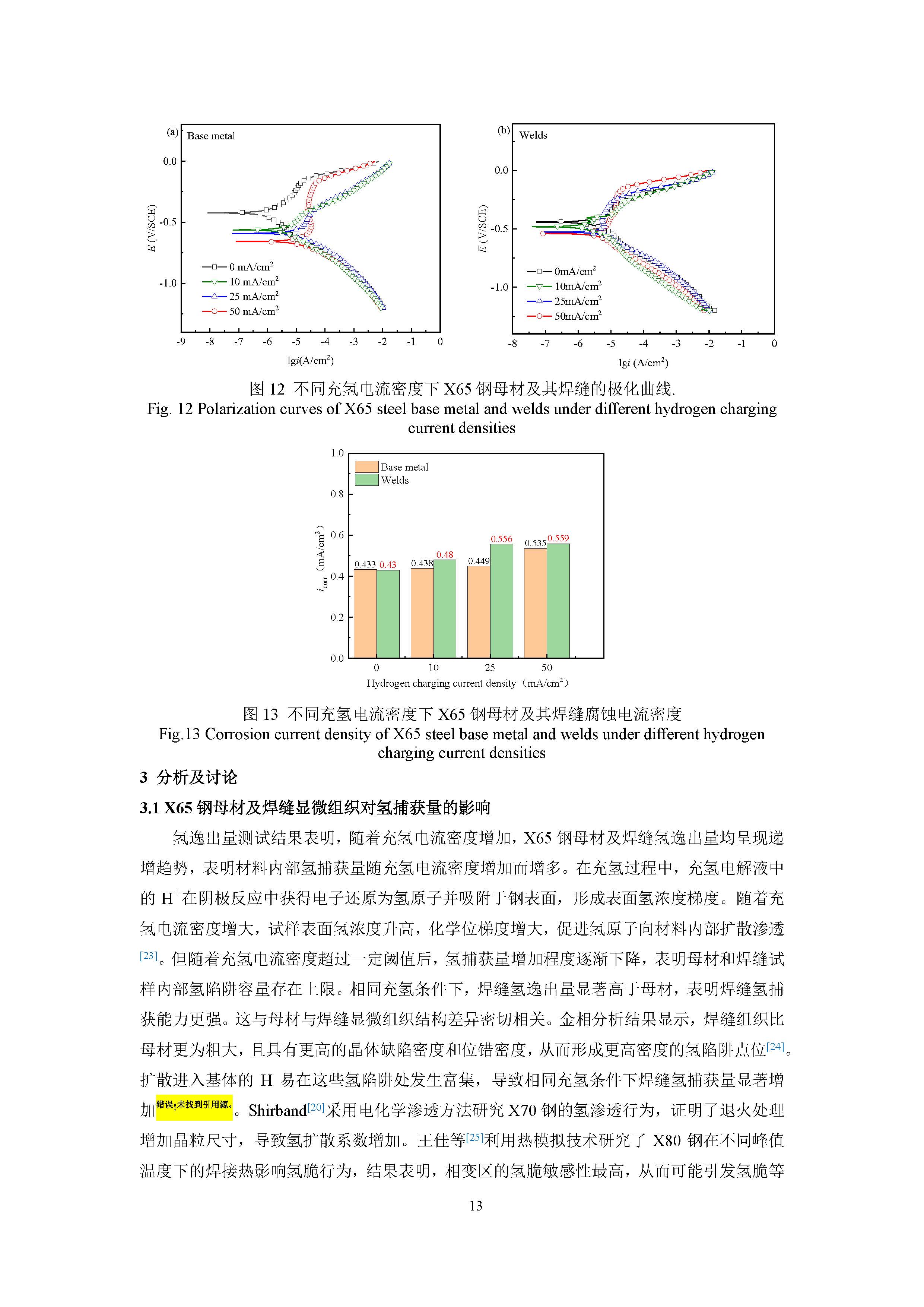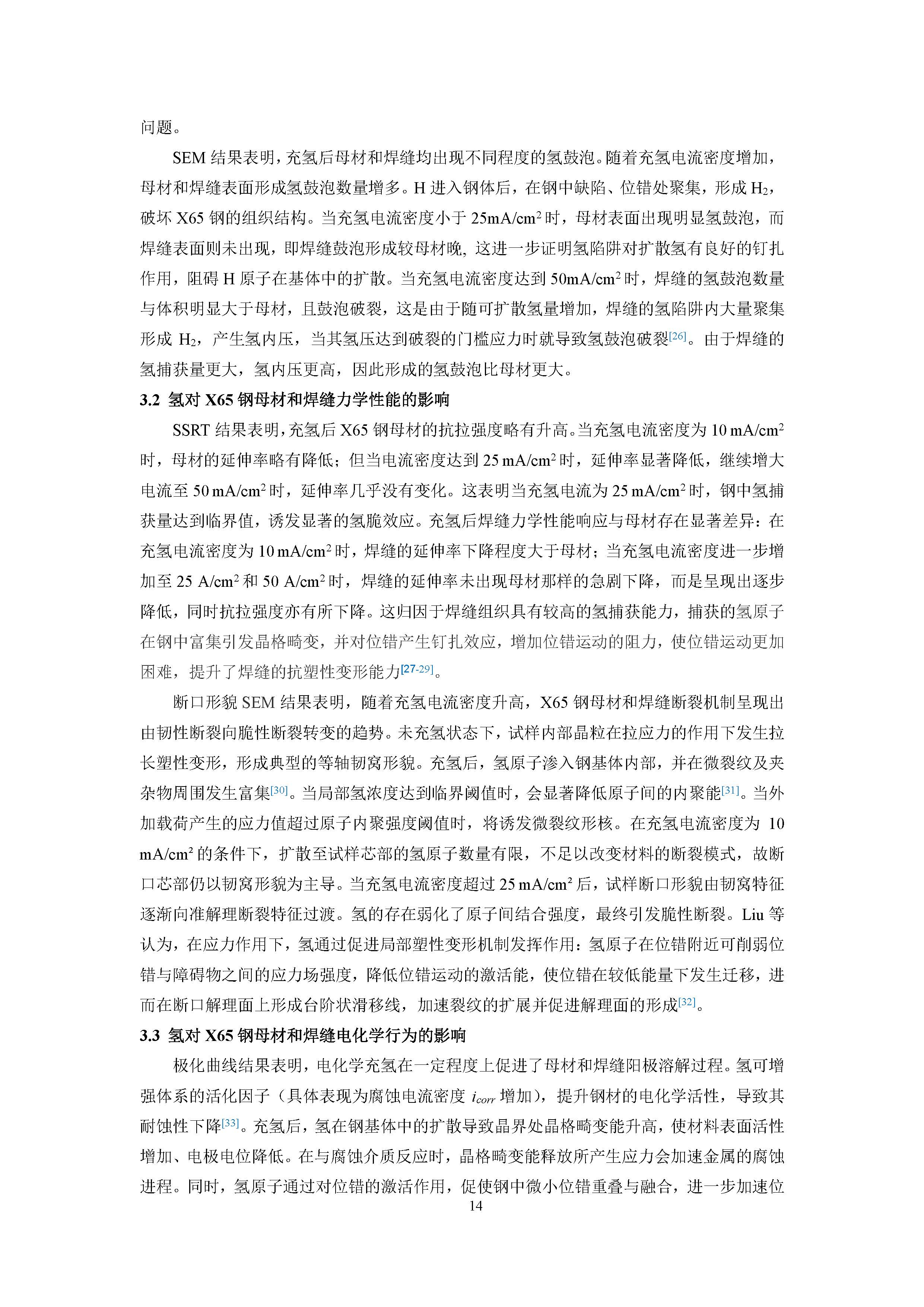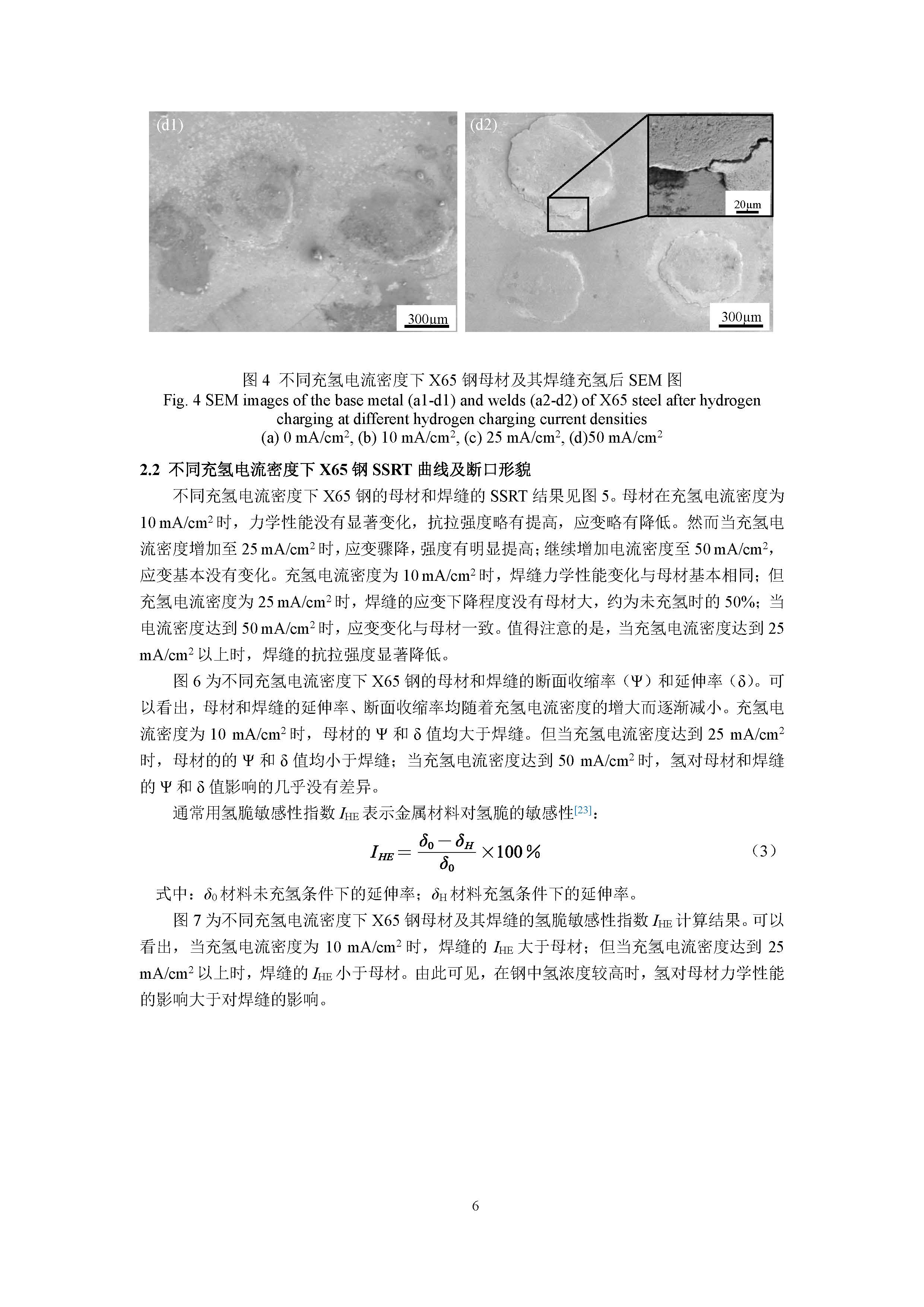 氢对 X65 钢及其焊缝力学性能及腐蚀行为影响