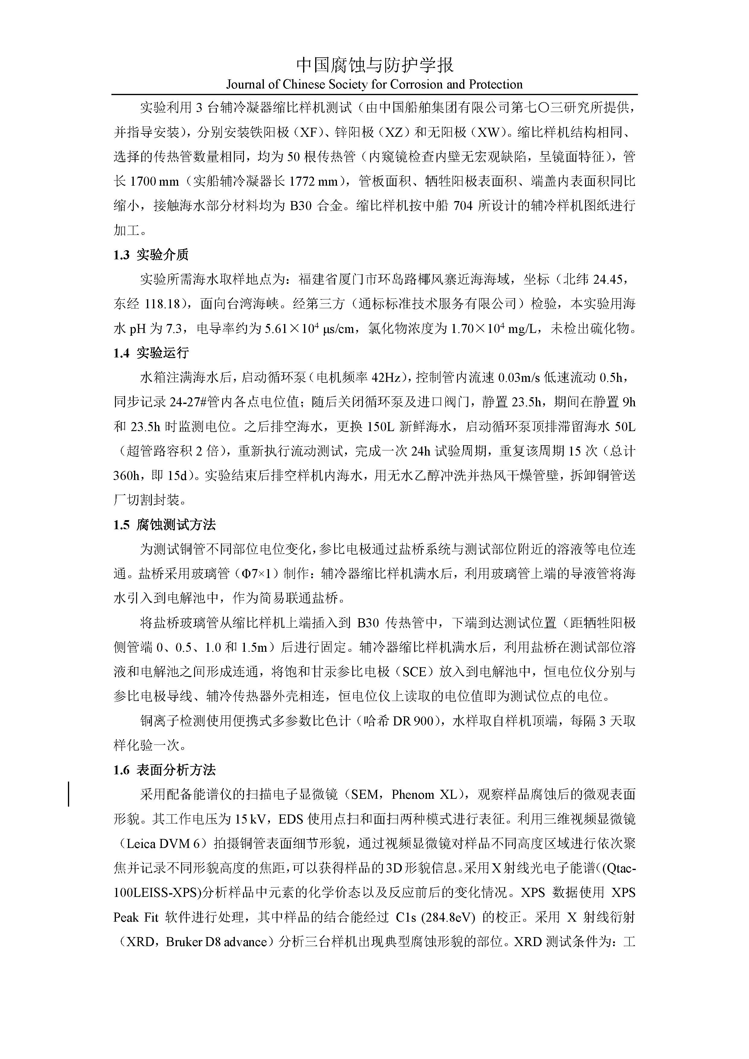 基于海水循环模拟系统的牺牲阳极材料对 B30 传热管腐蚀行为影响研究