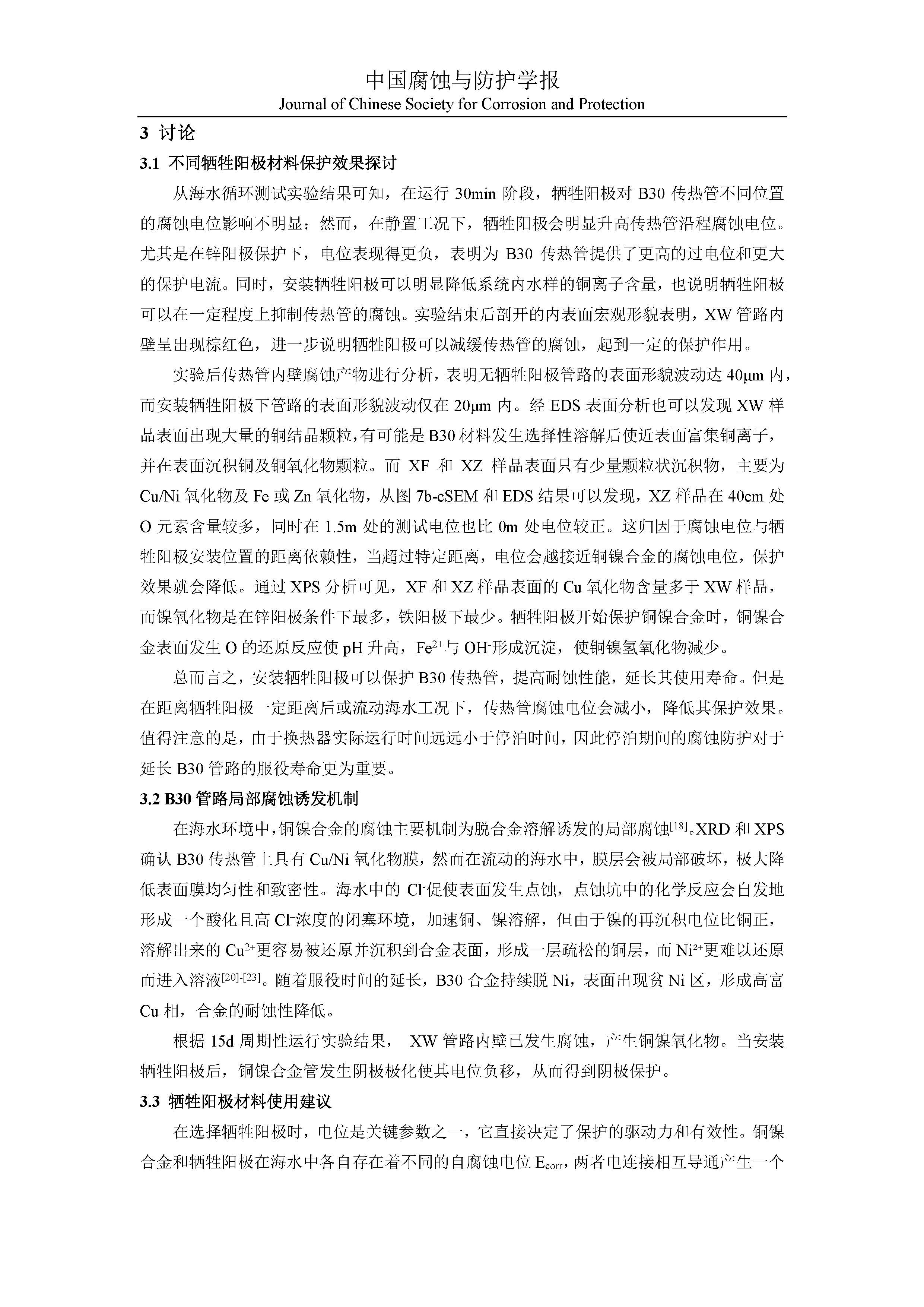 基于海水循环模拟系统的牺牲阳极材料对 B30 传热管腐蚀行为影响研究