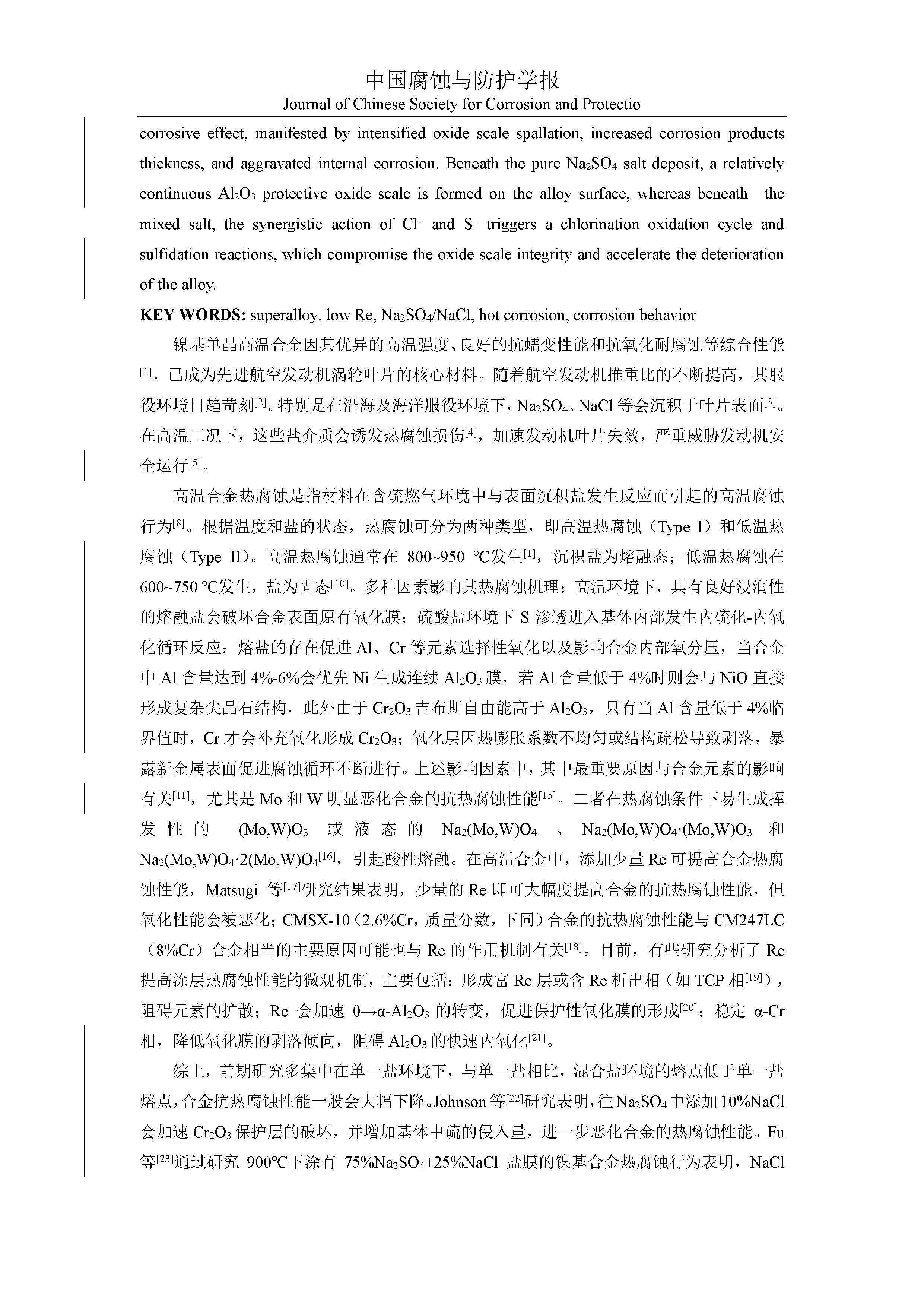 一种低 Re 二代单晶高温合金的热腐蚀行为研究