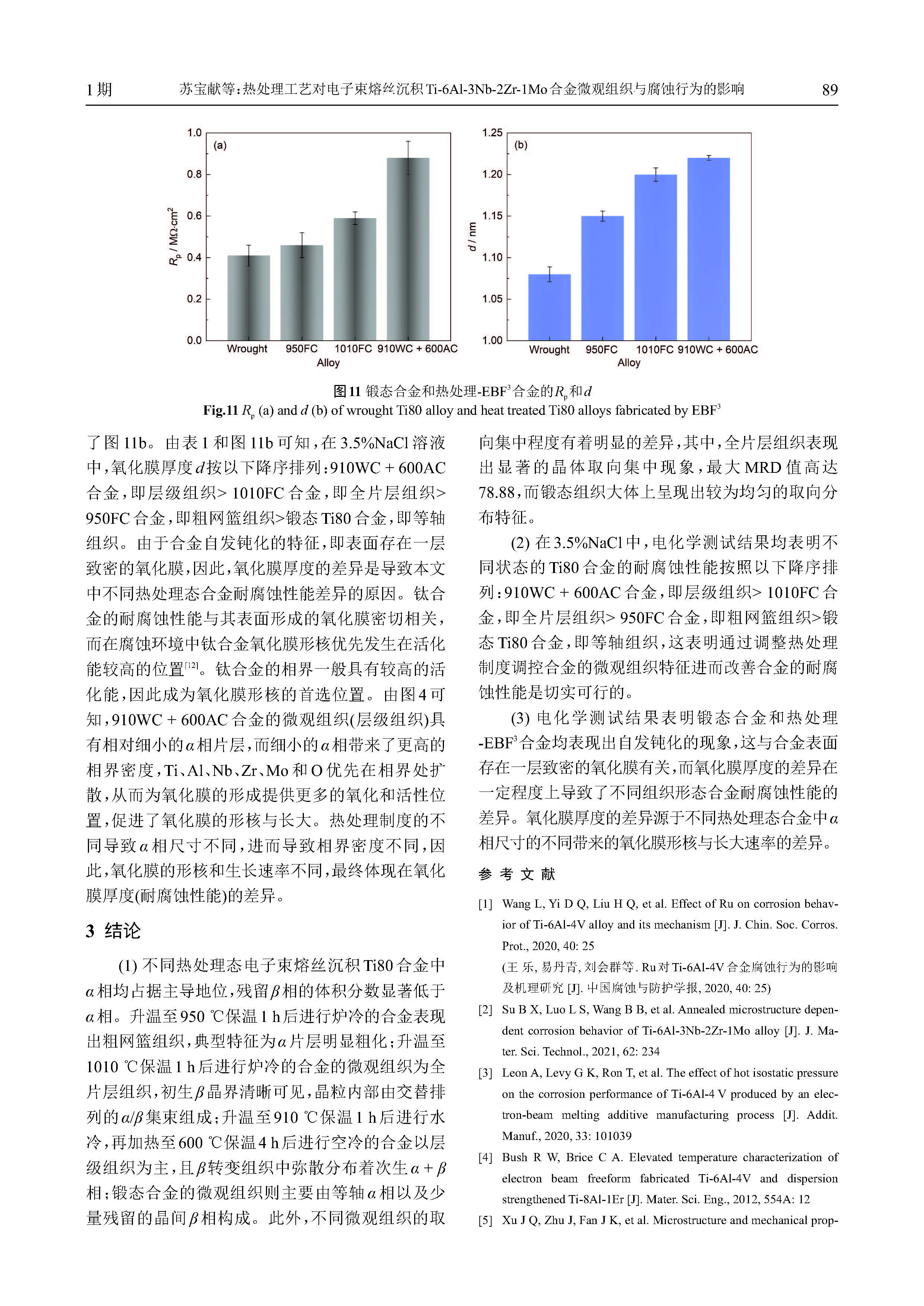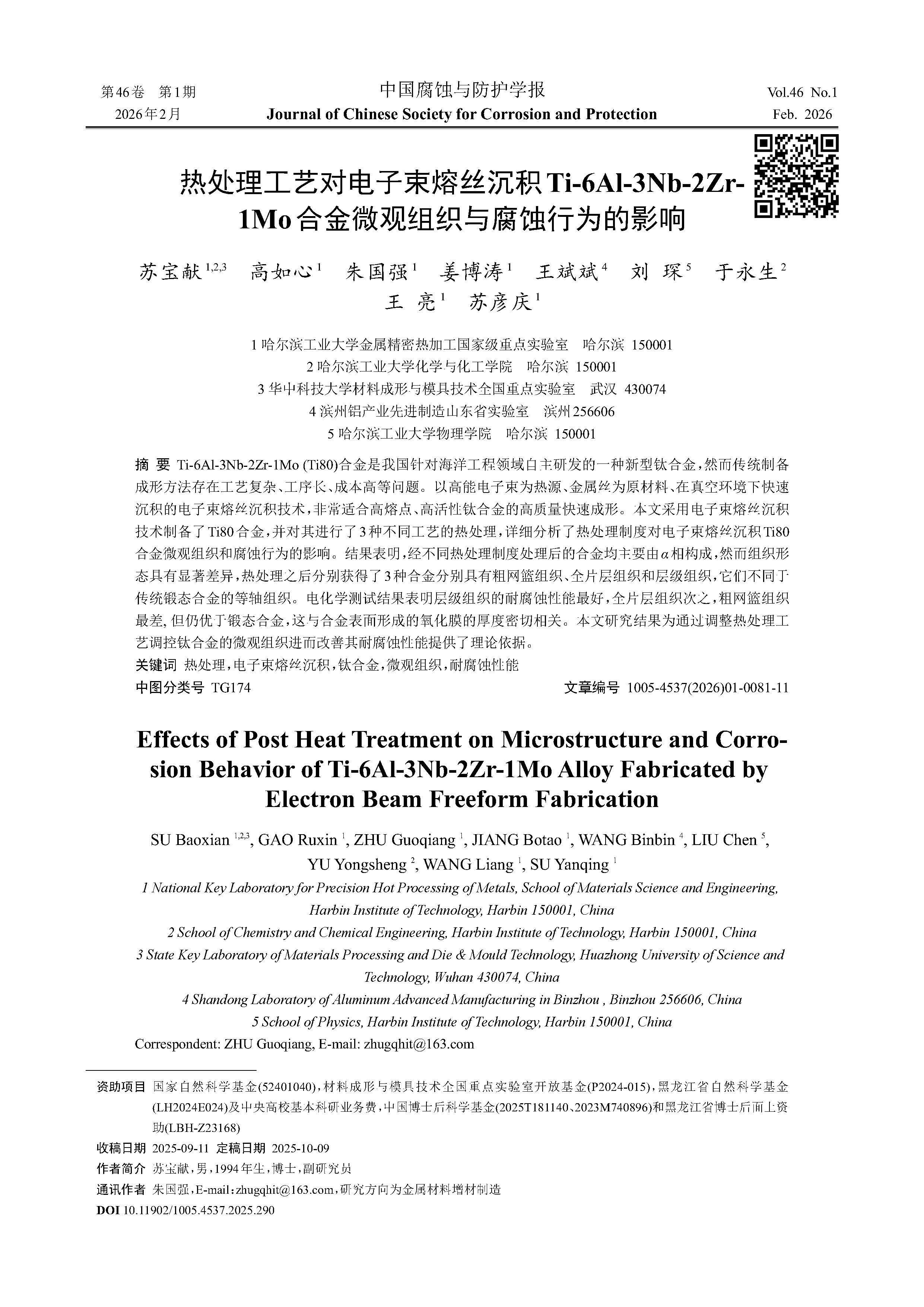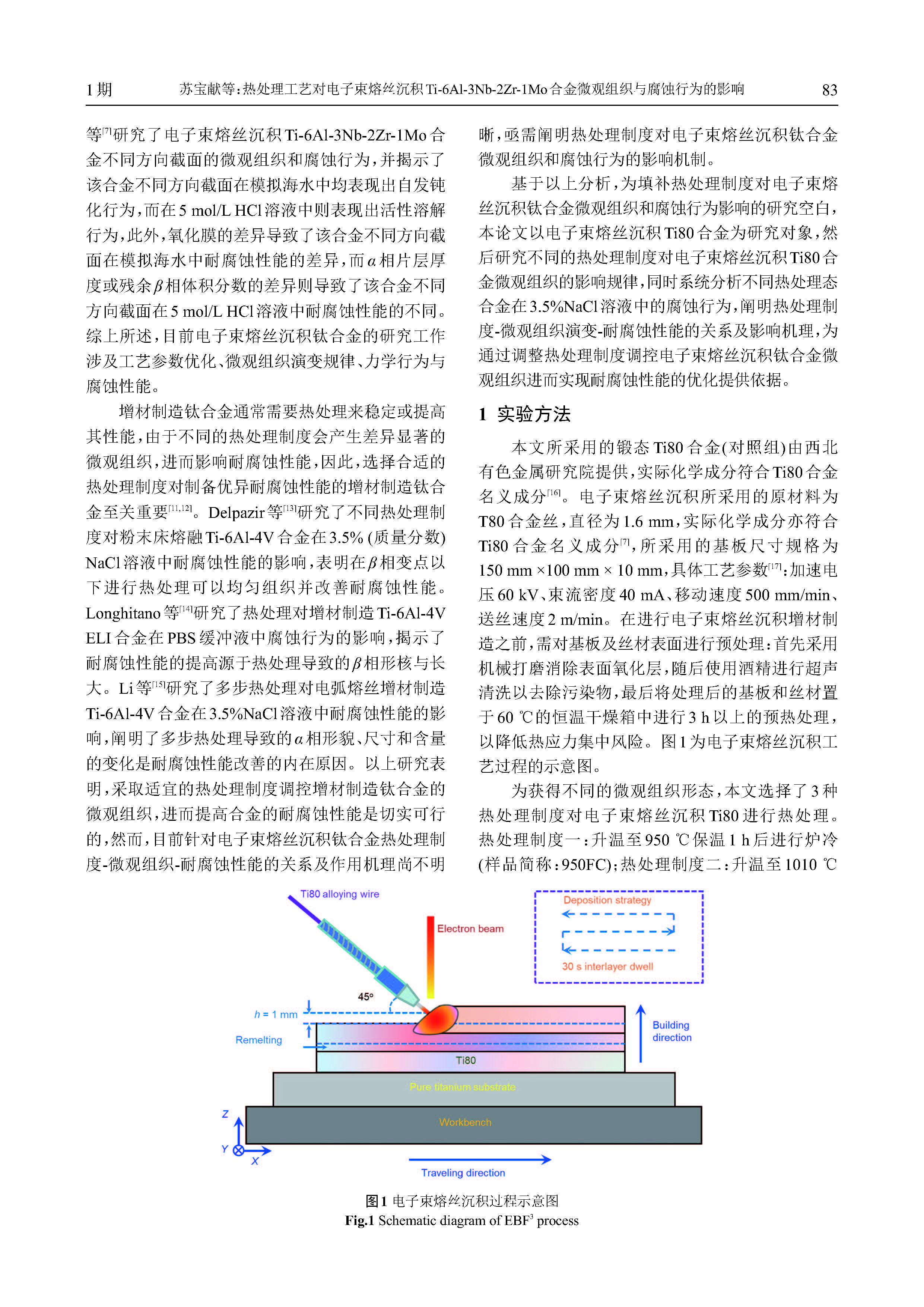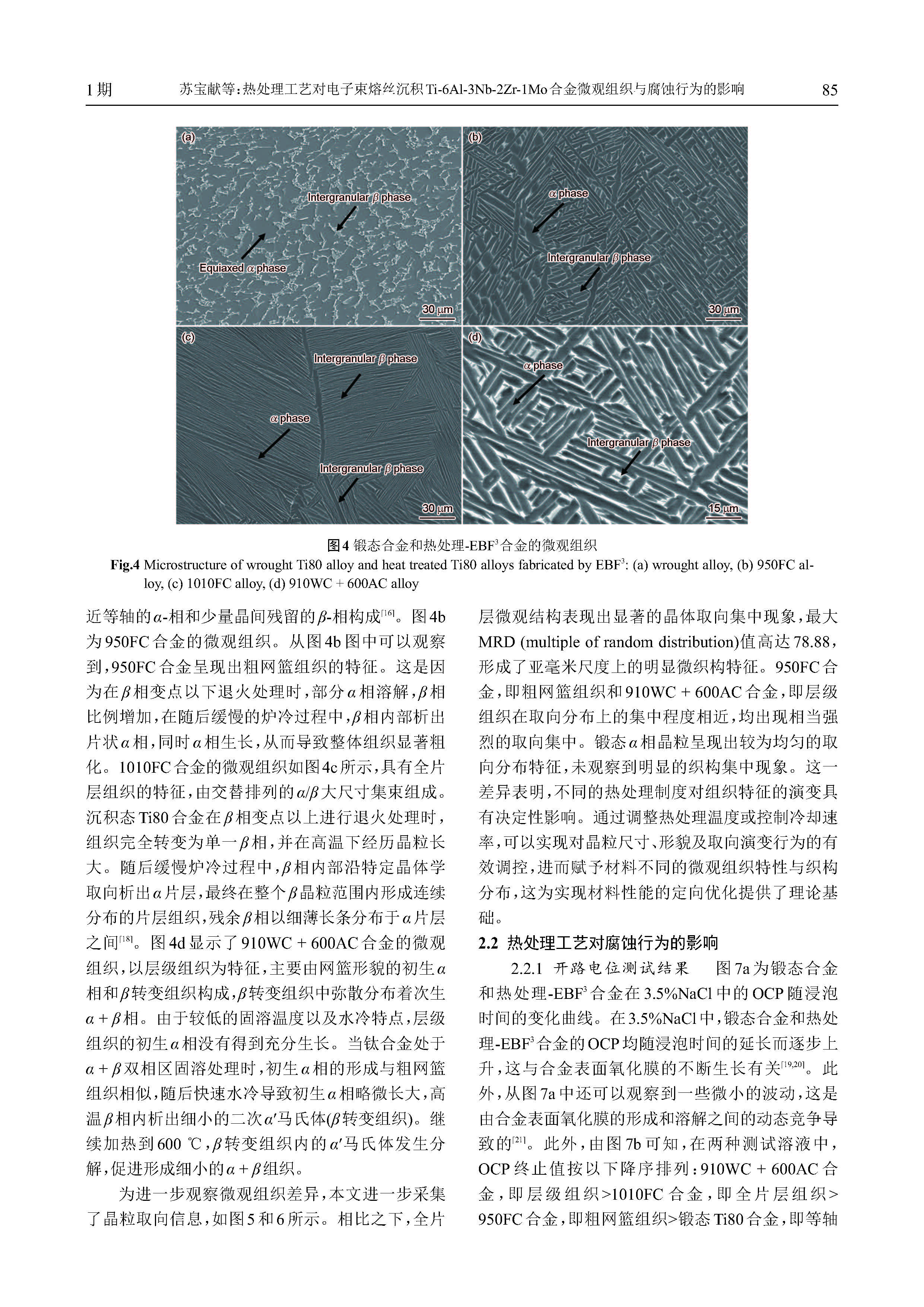 热处理工艺对电子束熔丝沉积Ti-6Al-3Nb-2Zr1Mo合金微观组织与腐蚀行为的影响
