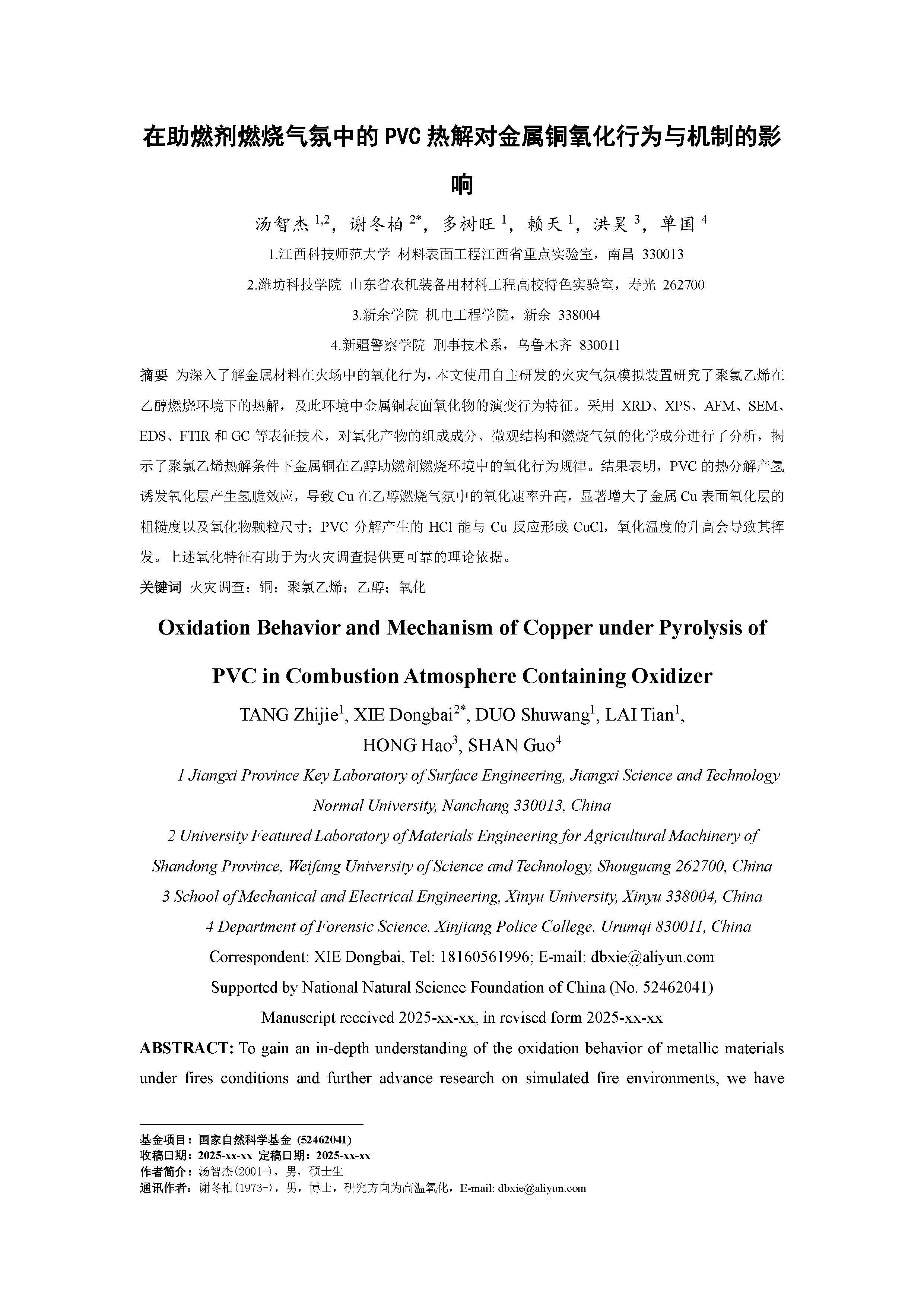 在助燃剂燃烧气氛中的 PVC 热解对金属铜氧化行为与机制的影响