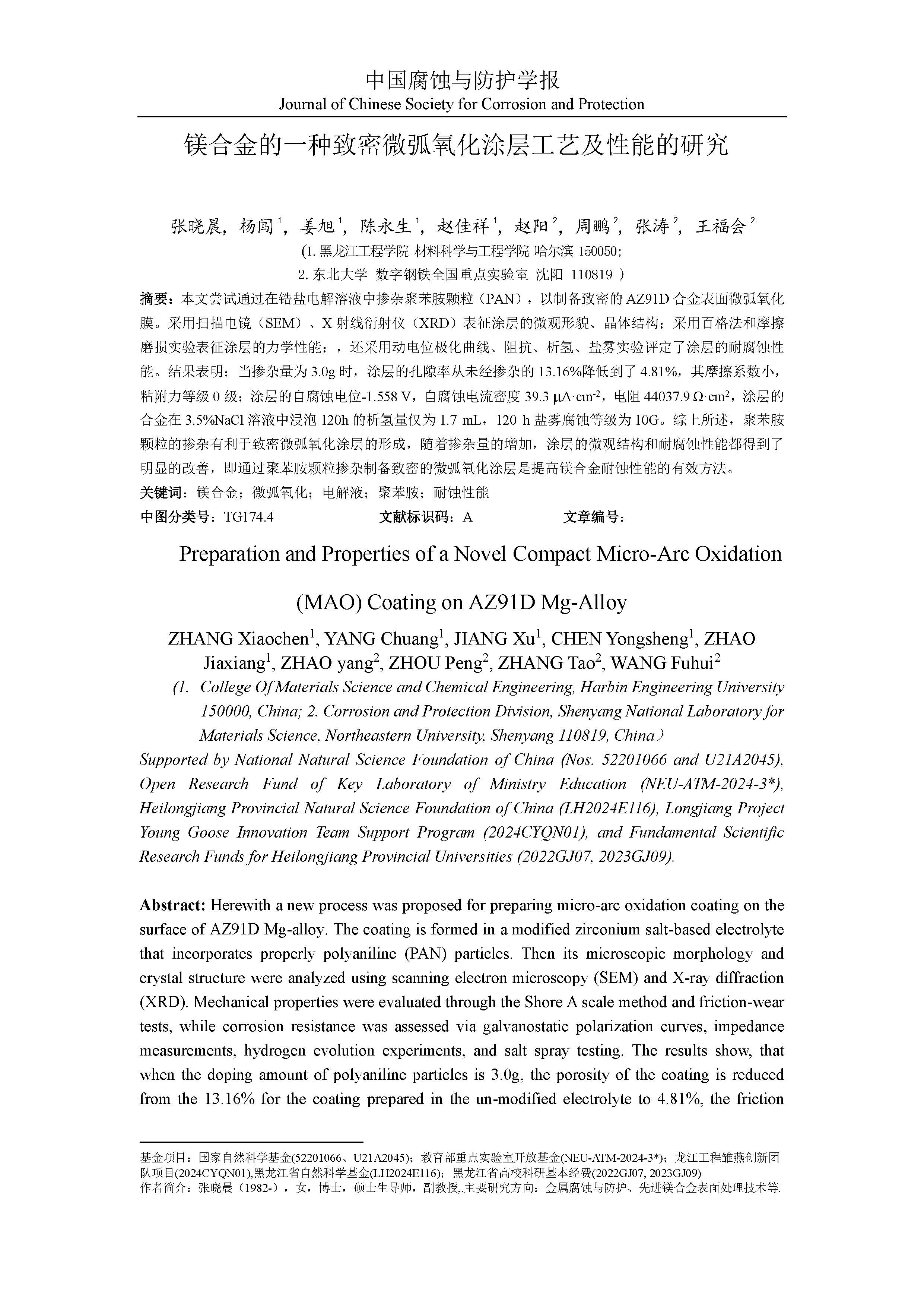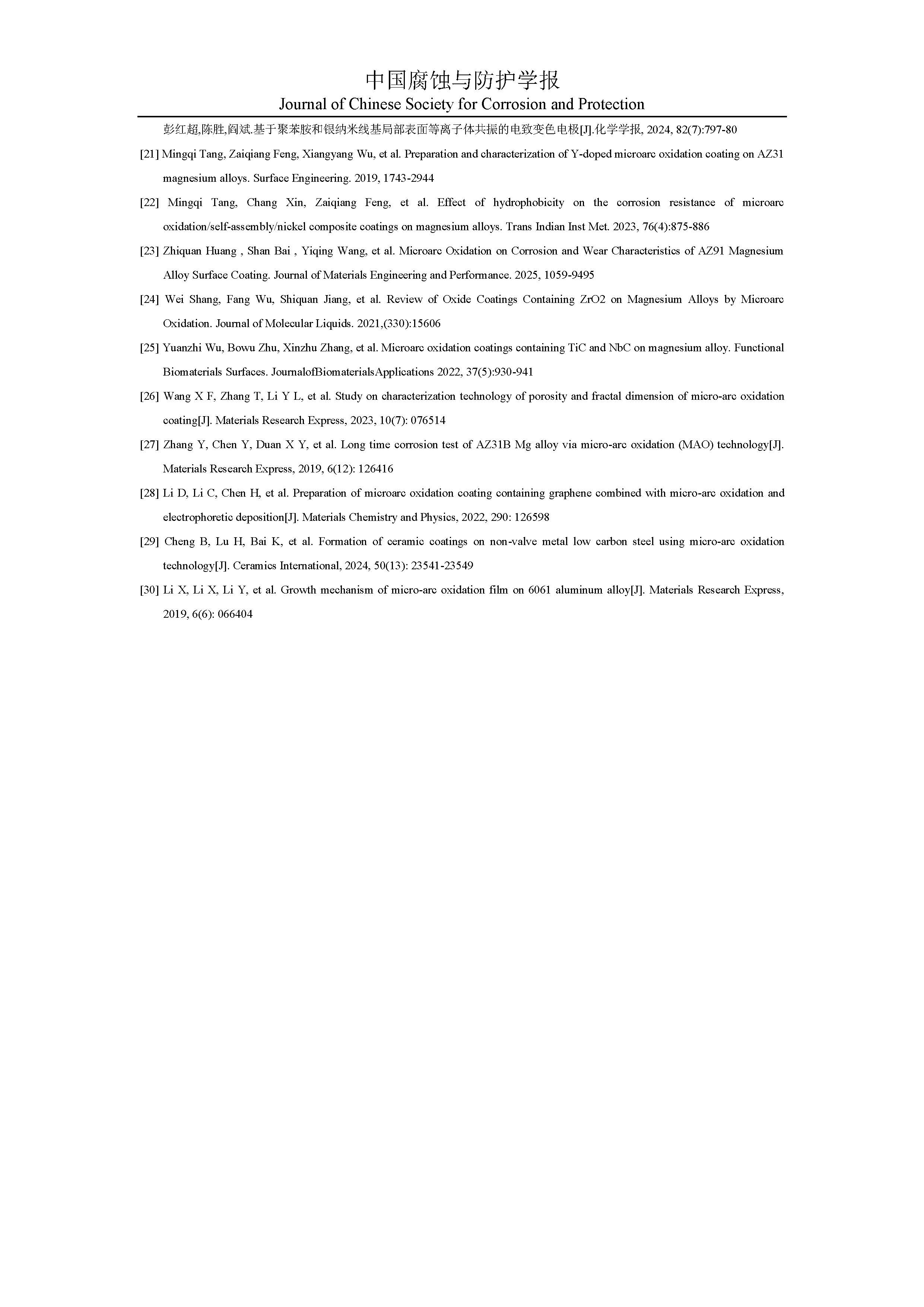 来源:中国腐蚀与防护学报