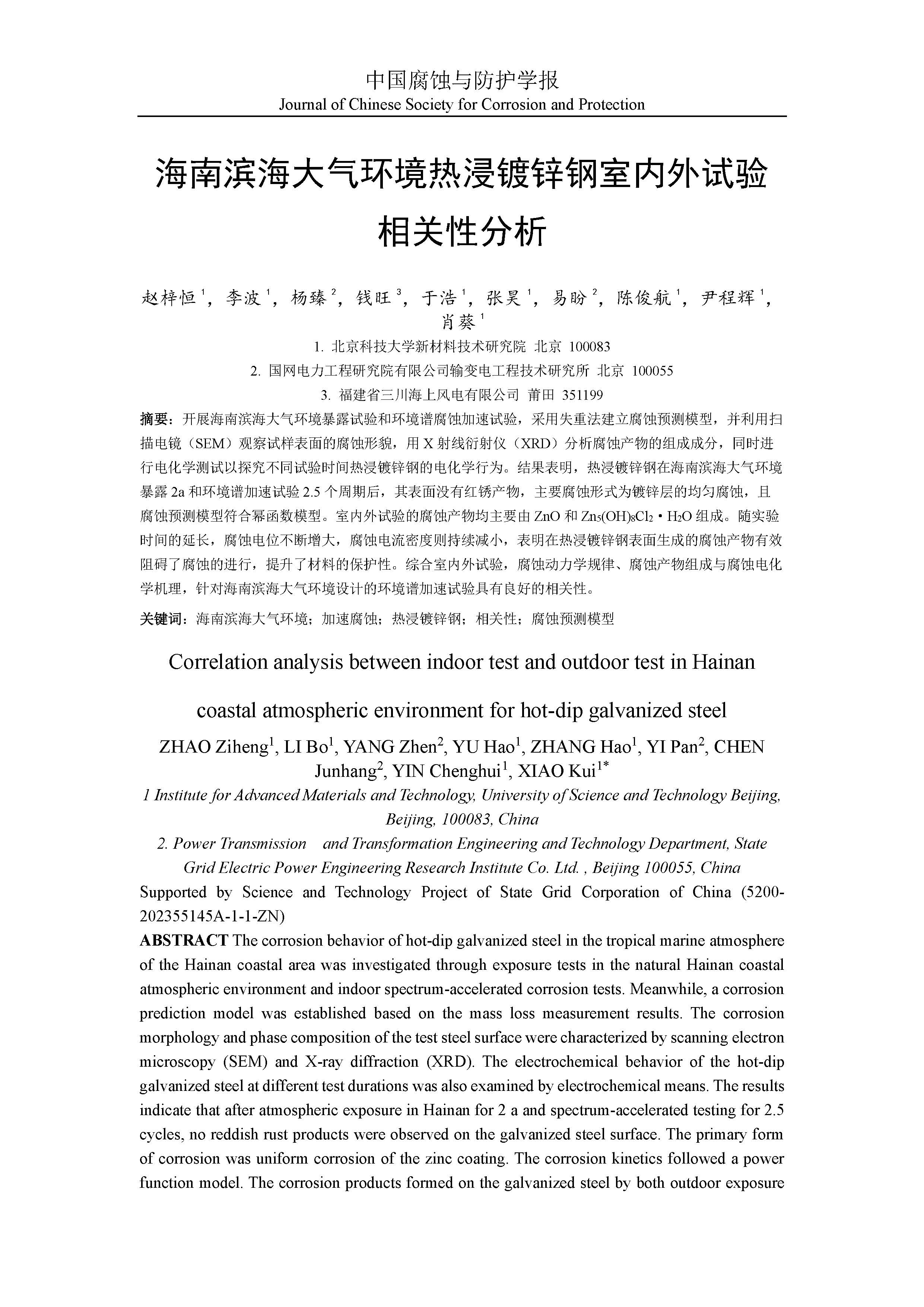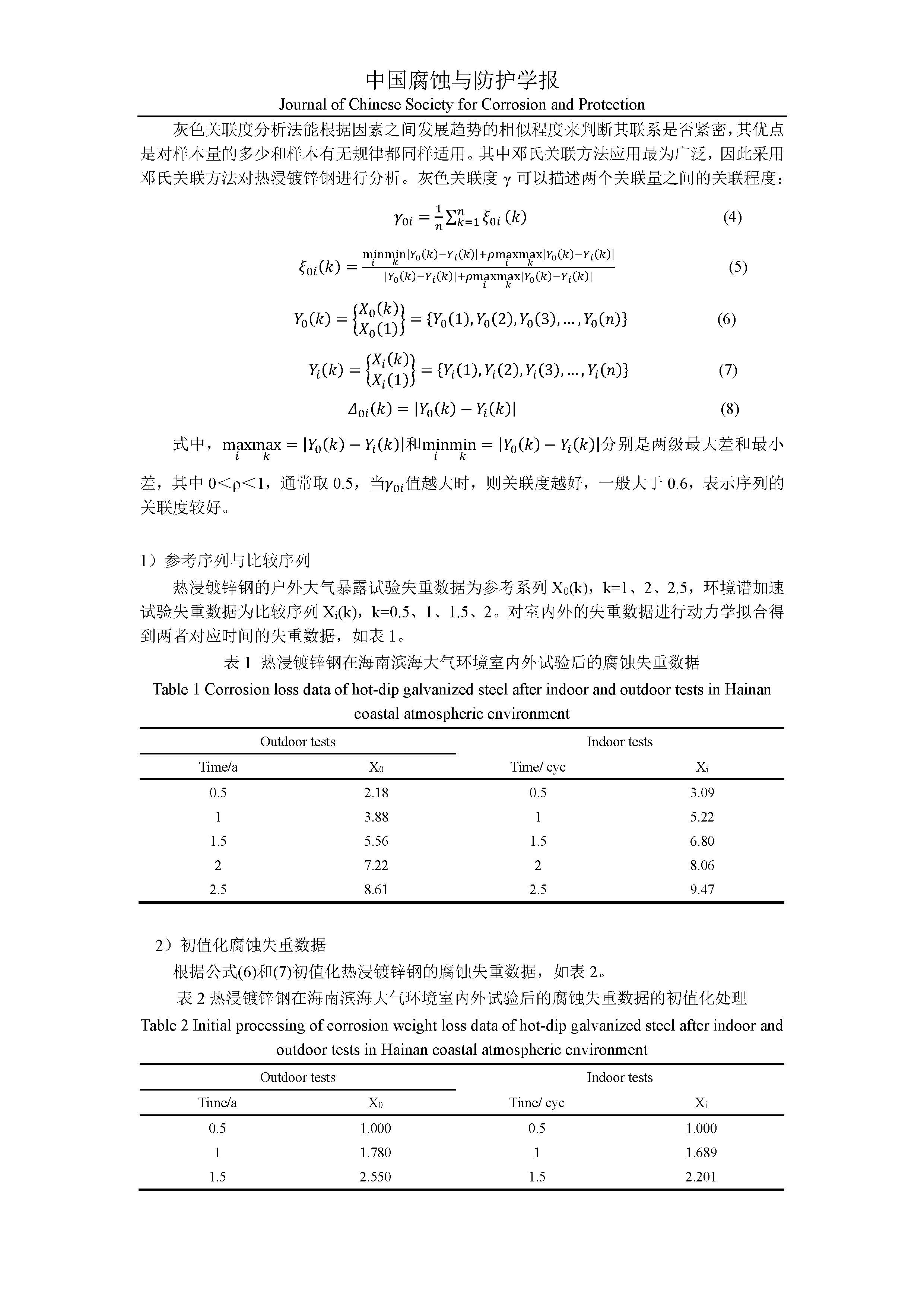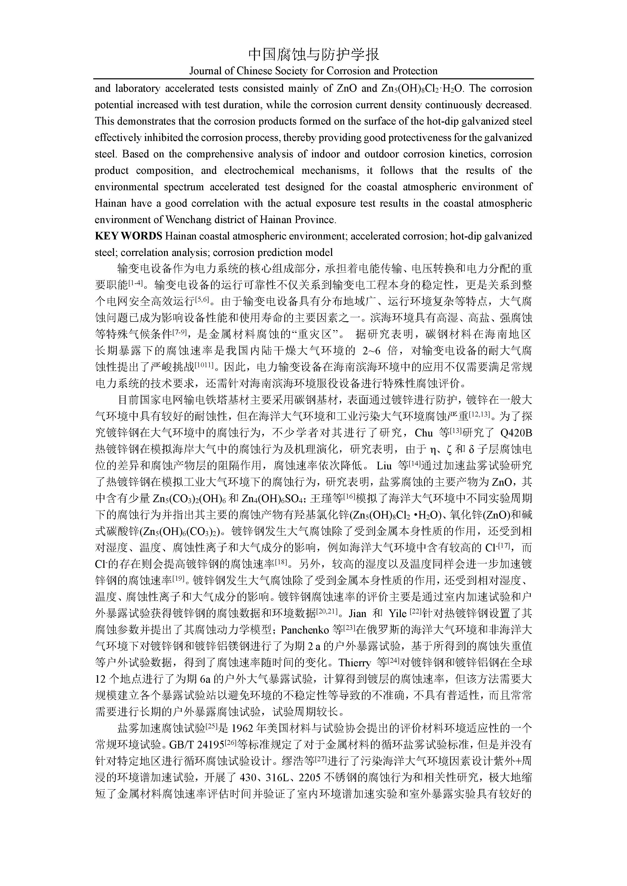 海南滨海大气环境热浸镀锌钢室内外试验相关性分析