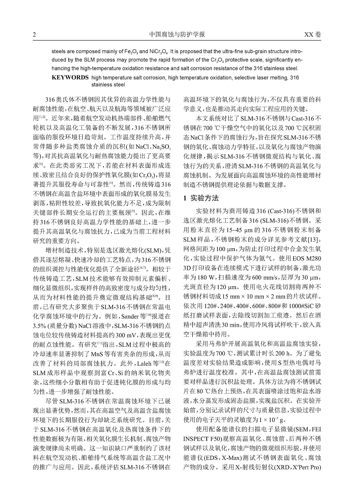 SLM-316L不锈钢的高温氧化与腐蚀行为研究