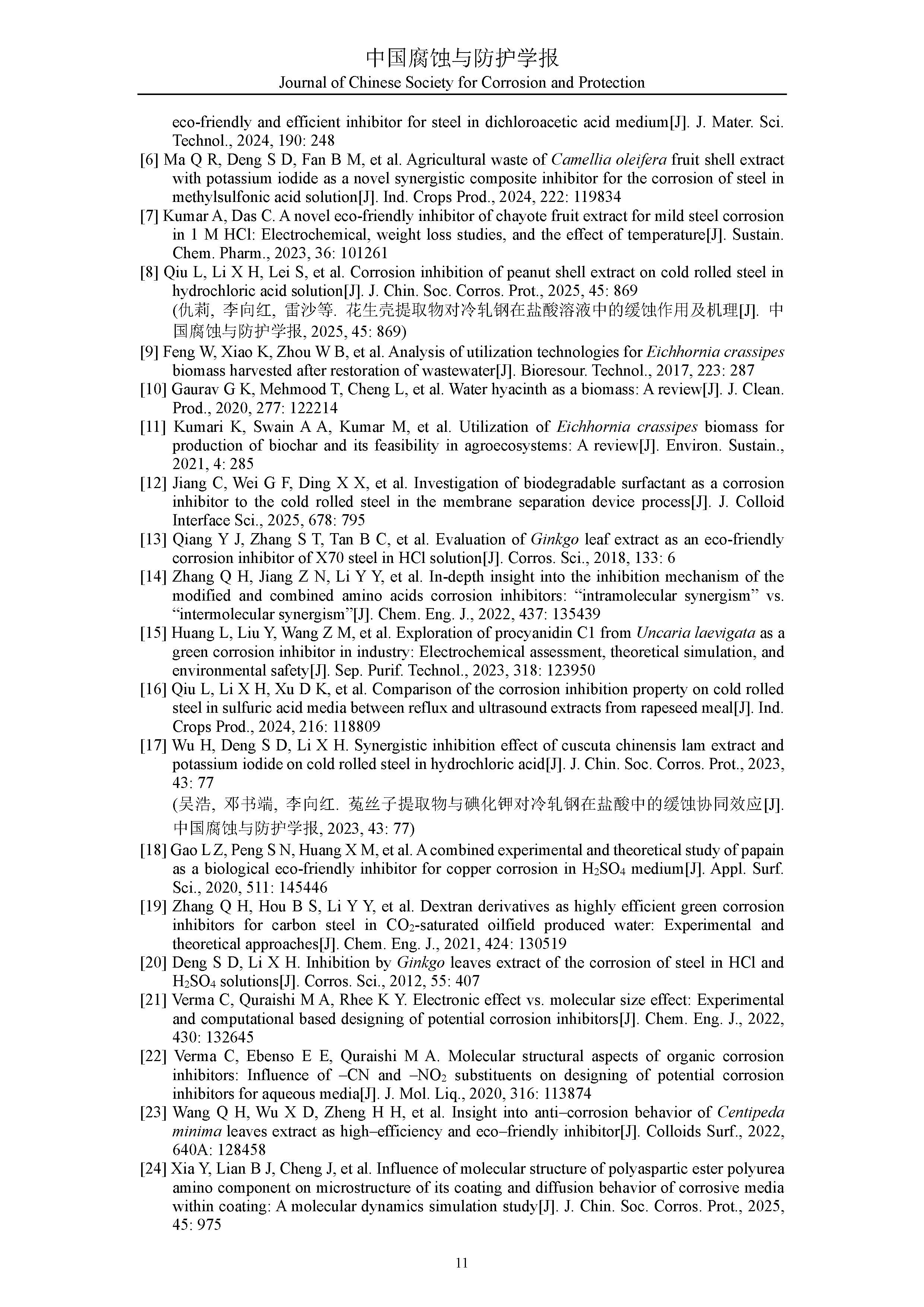 凤眼莲提取物对钢在Cl2CCOOH的抑制特性评估