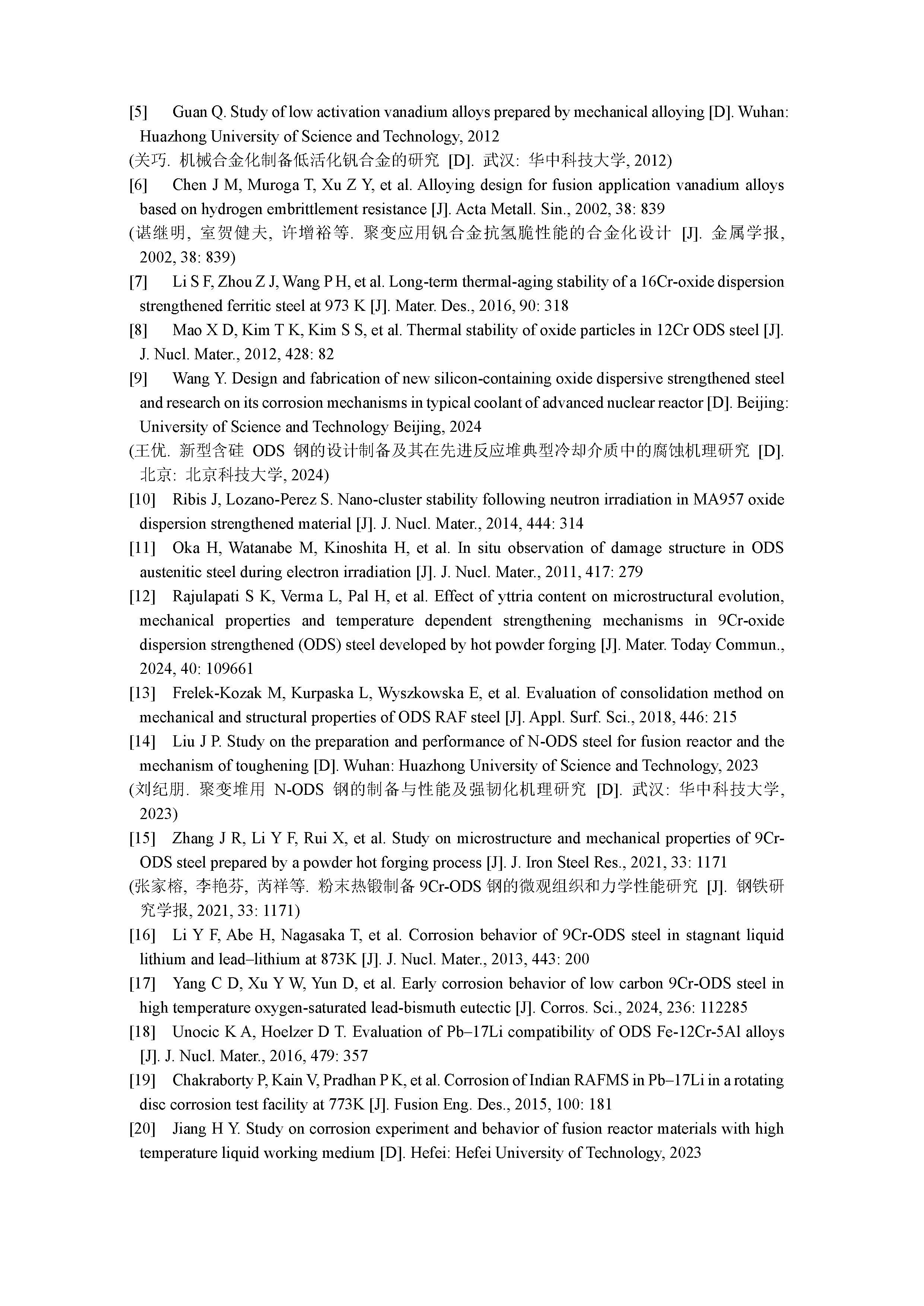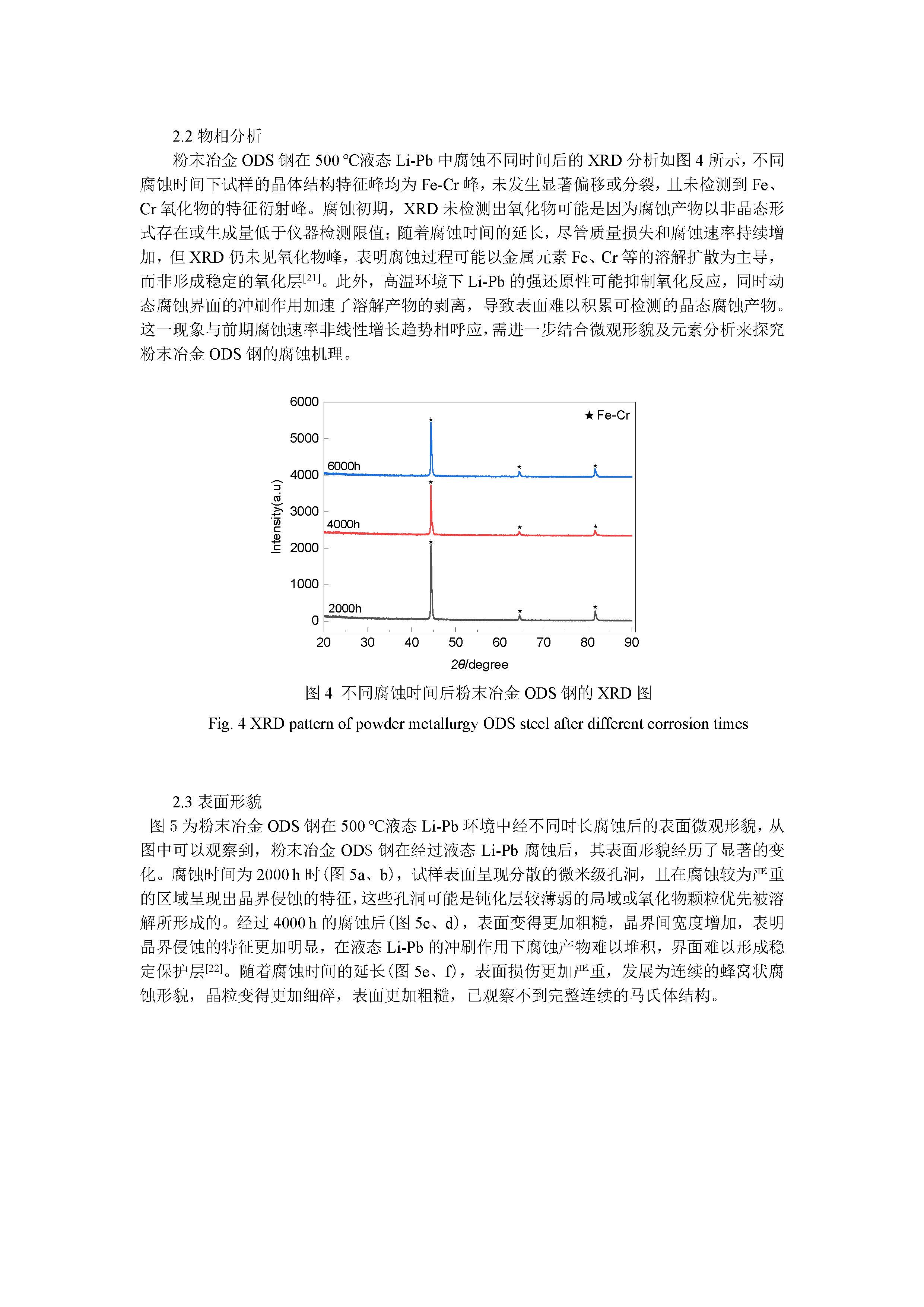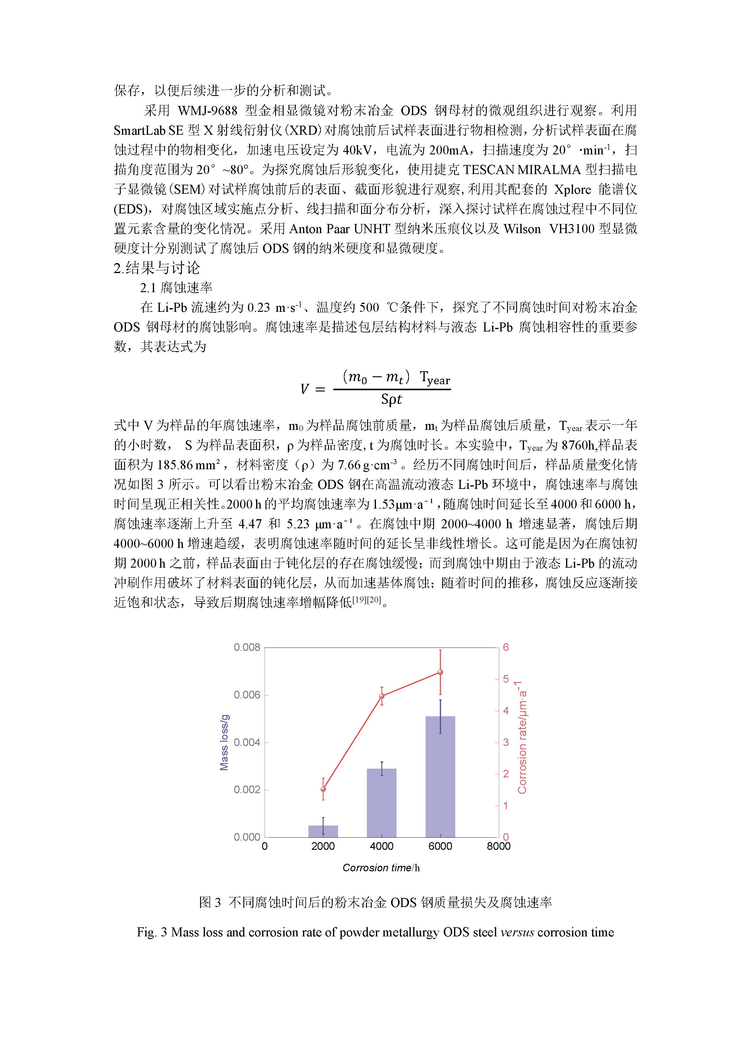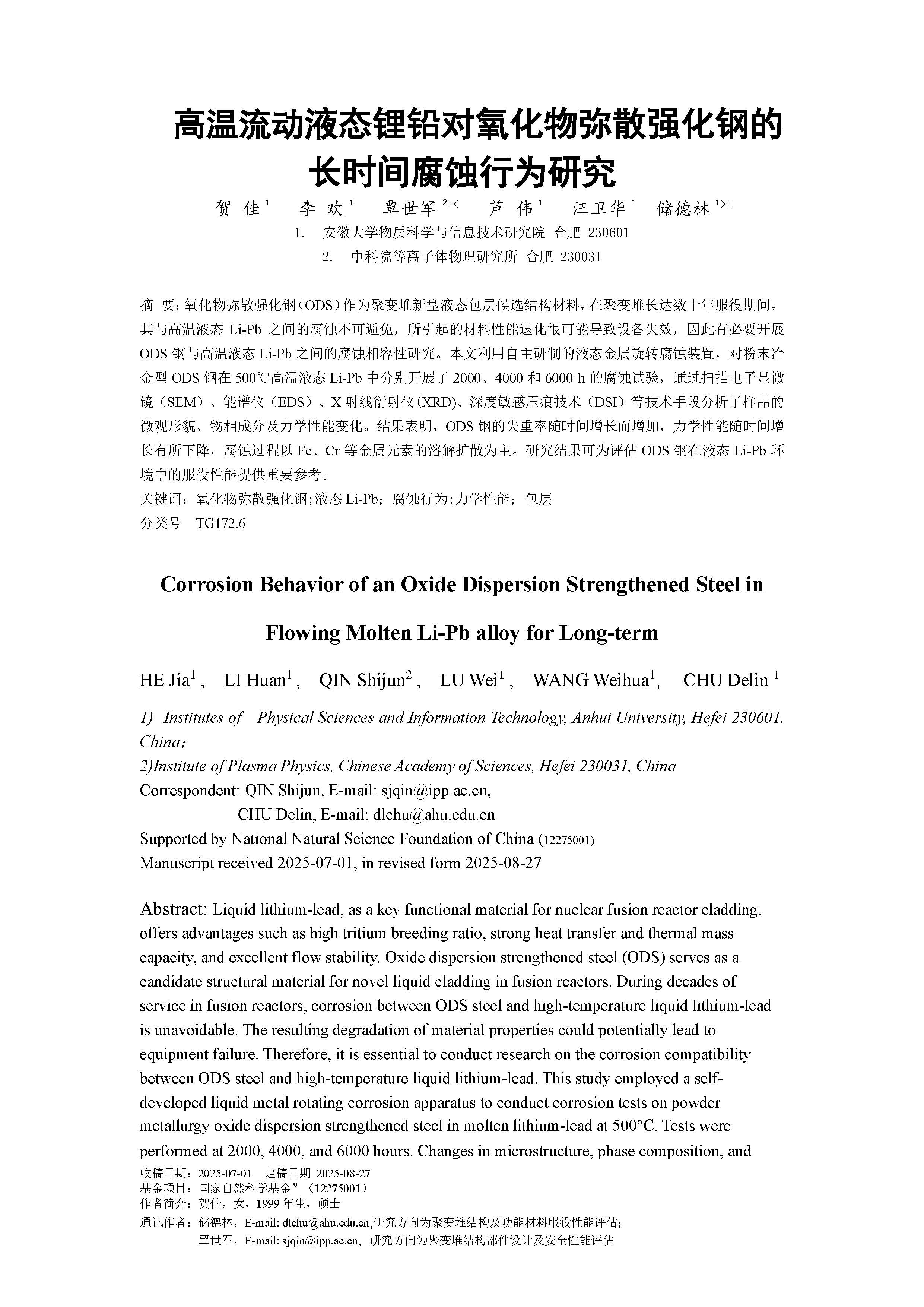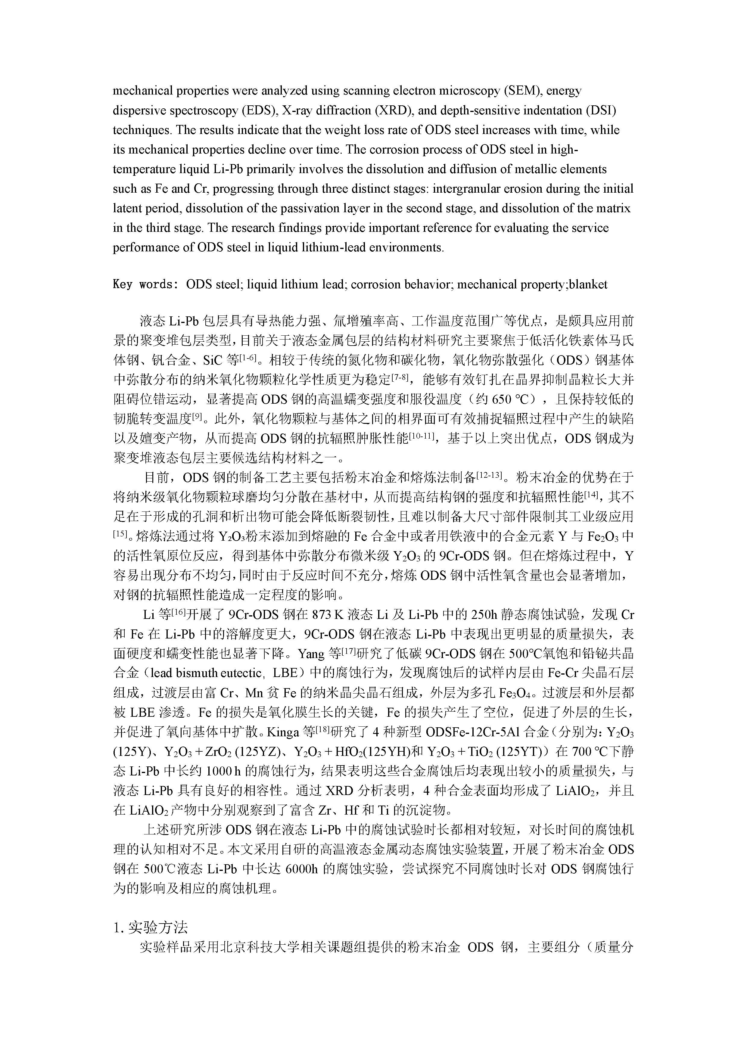 高温流动液态锂铅对氧化物弥散强化钢的长时间腐蚀行为研究