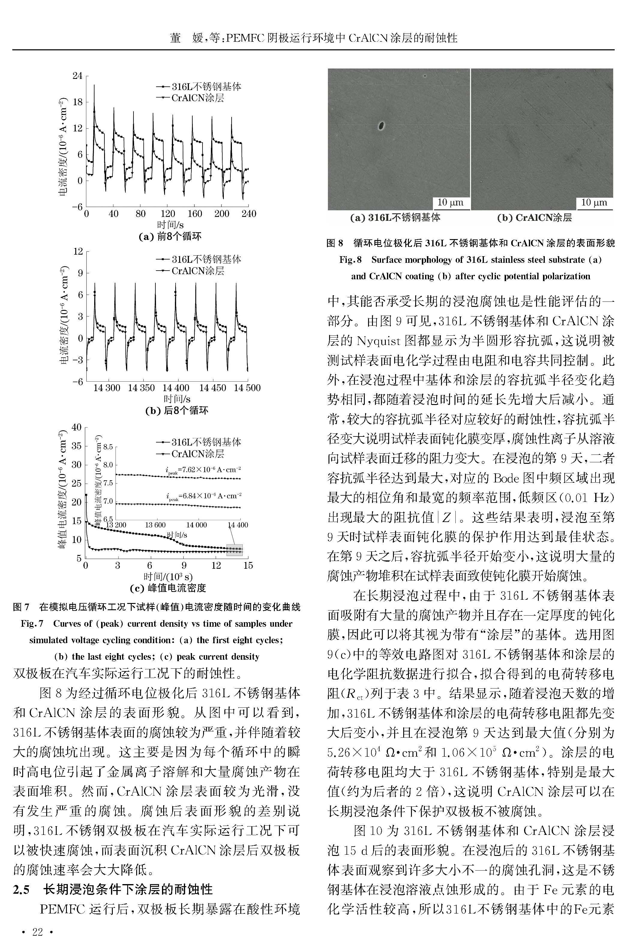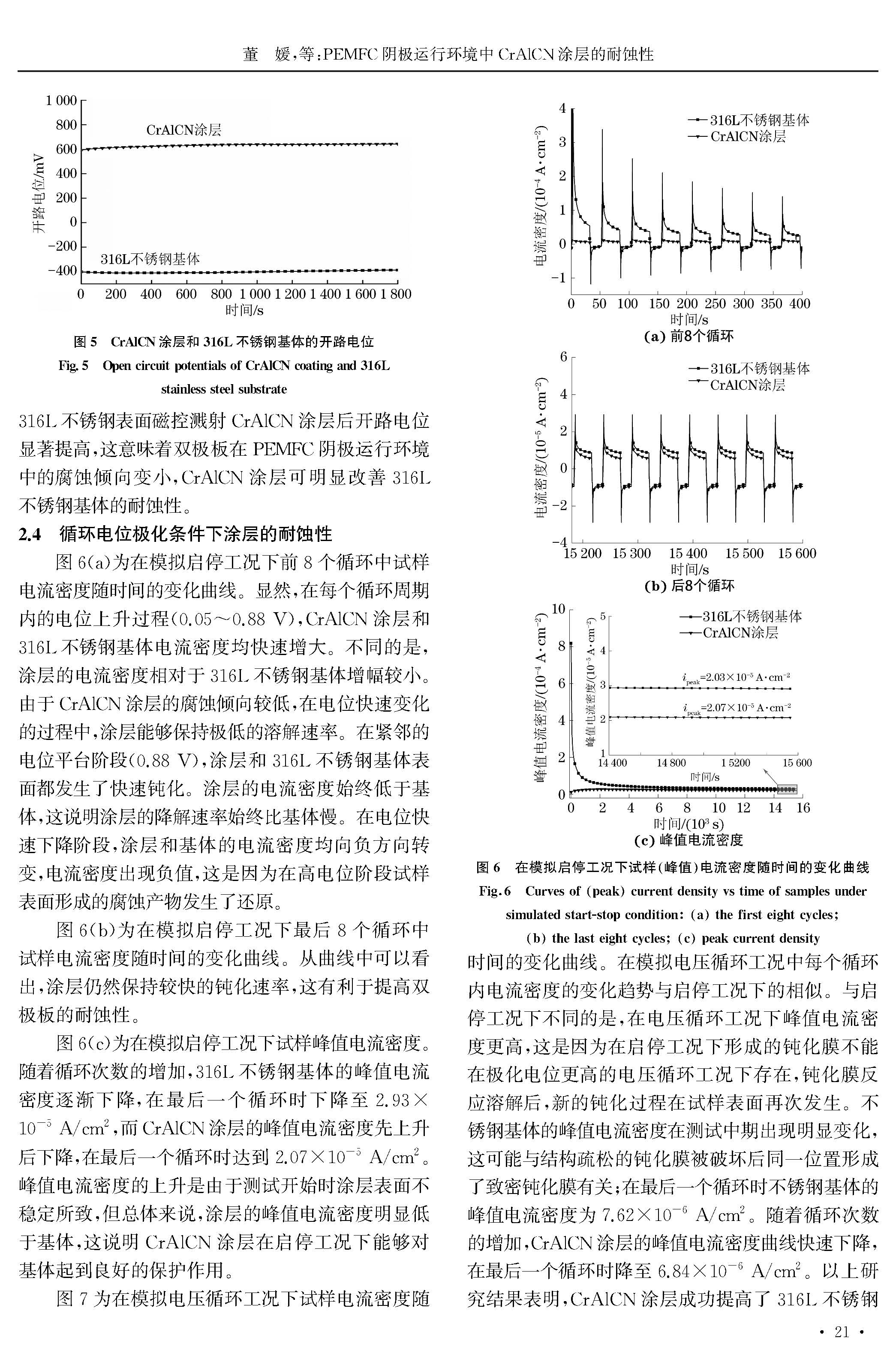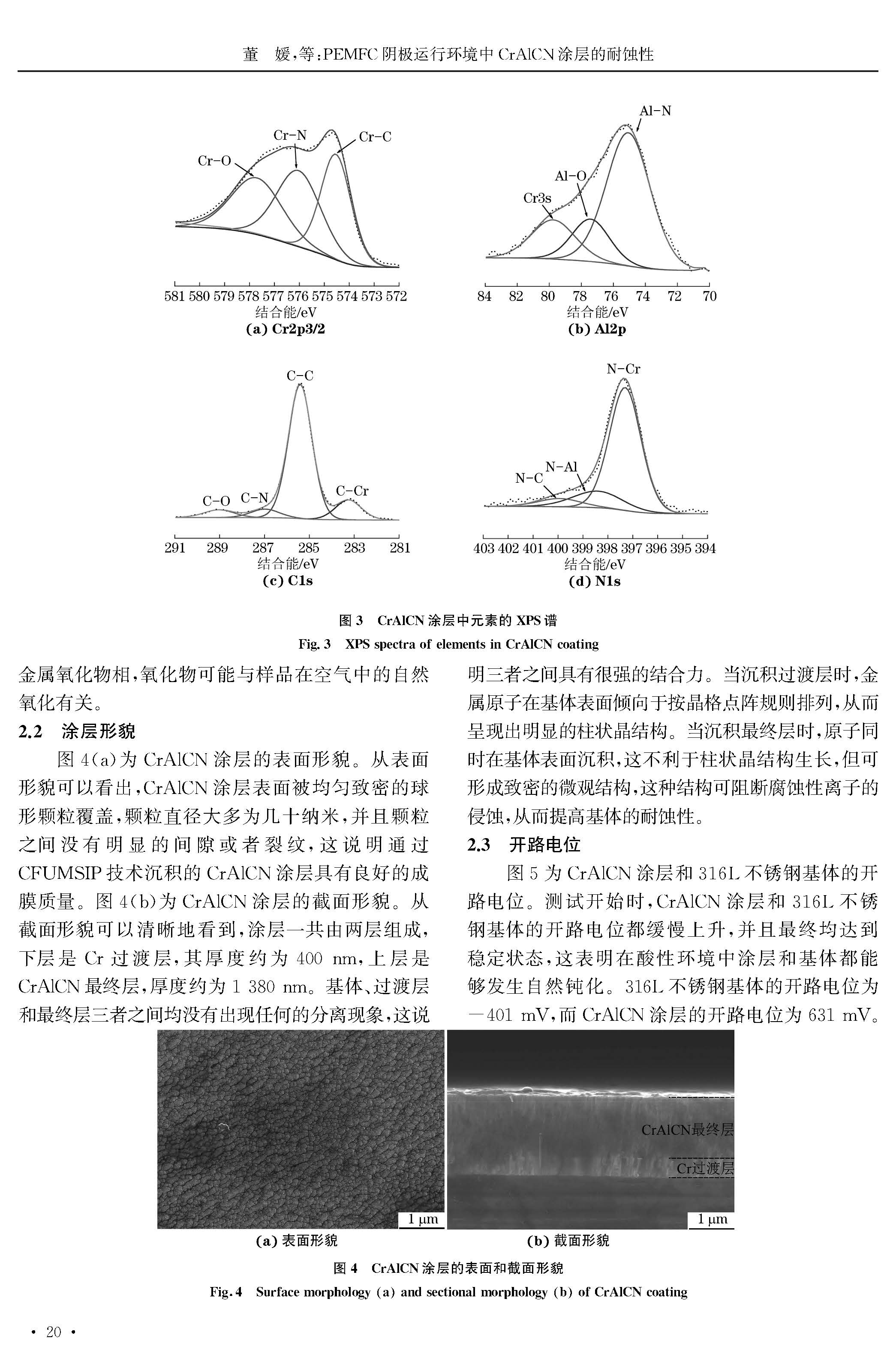PEMFC阴极运行环境中CrAlCN涂层的耐蚀性