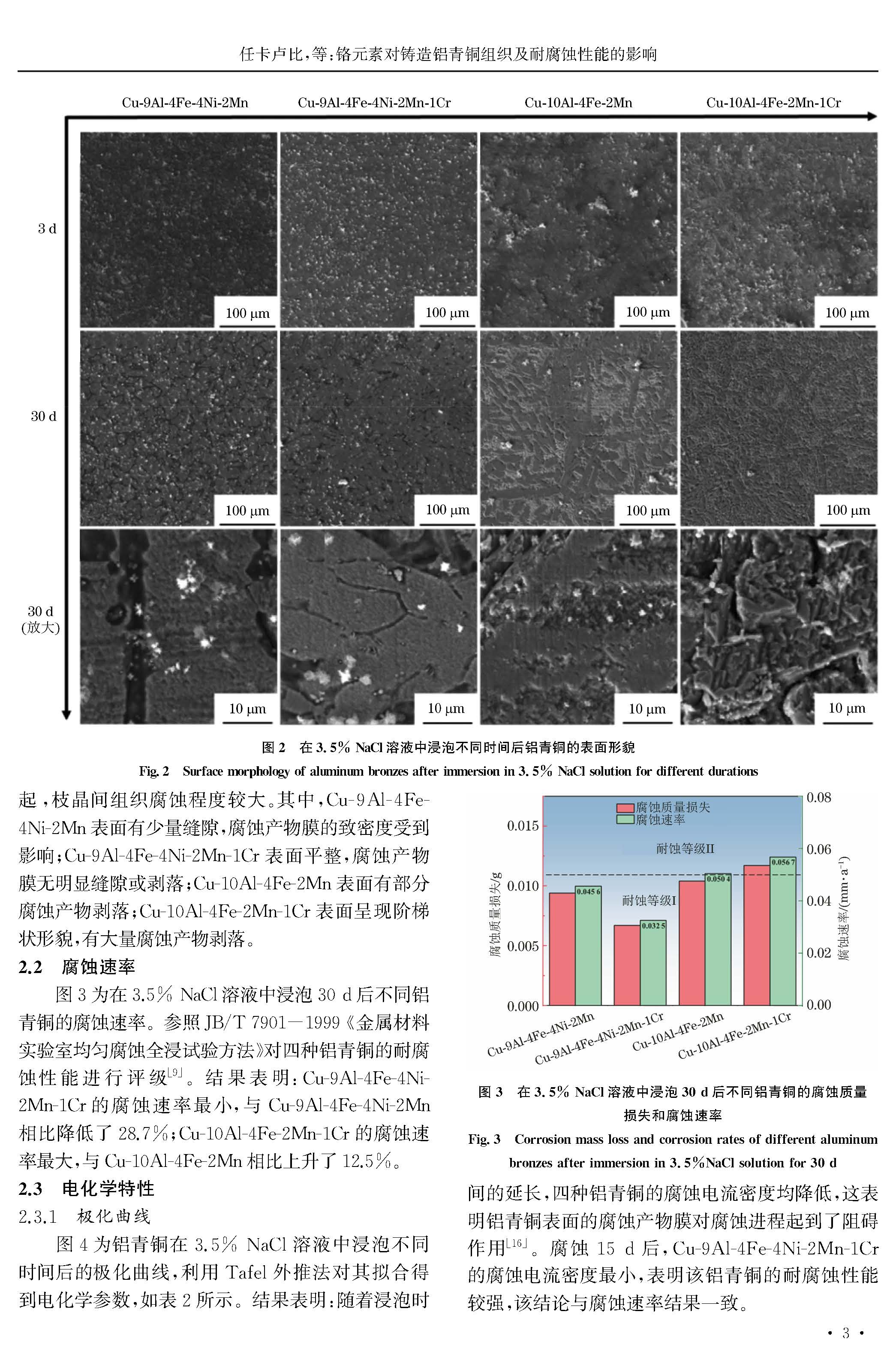 铬元素对铸造铝青铜组织及耐腐蚀性能的影响