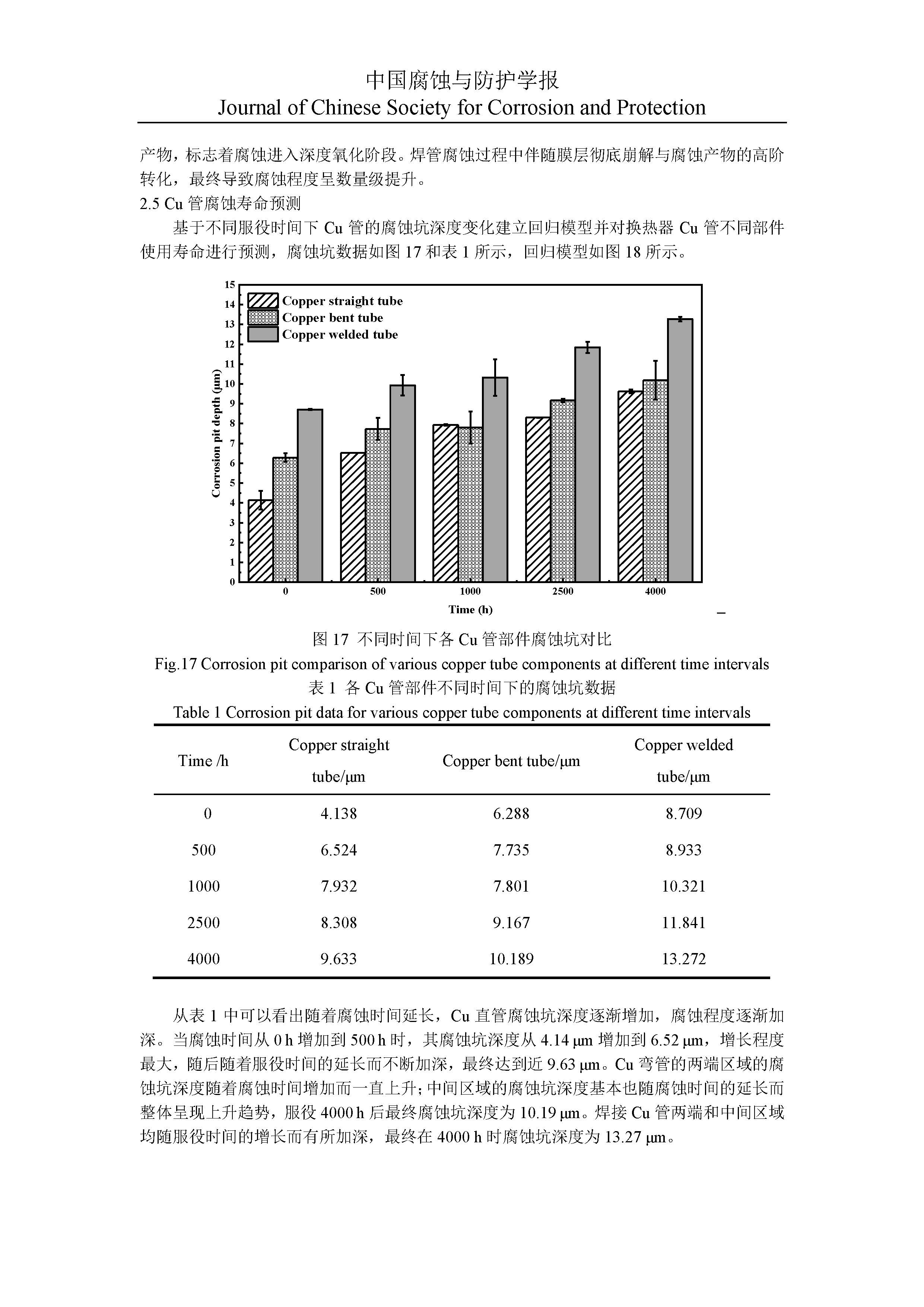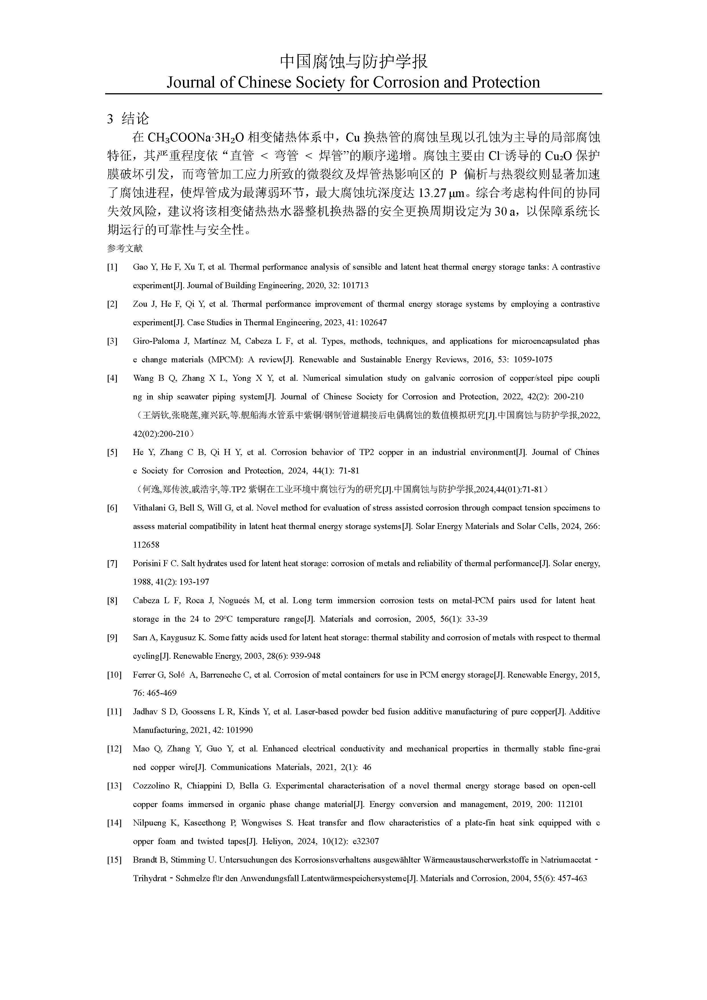 三水醋酸钠相变储热体系中铜换热管的局部腐蚀情况与寿命预测