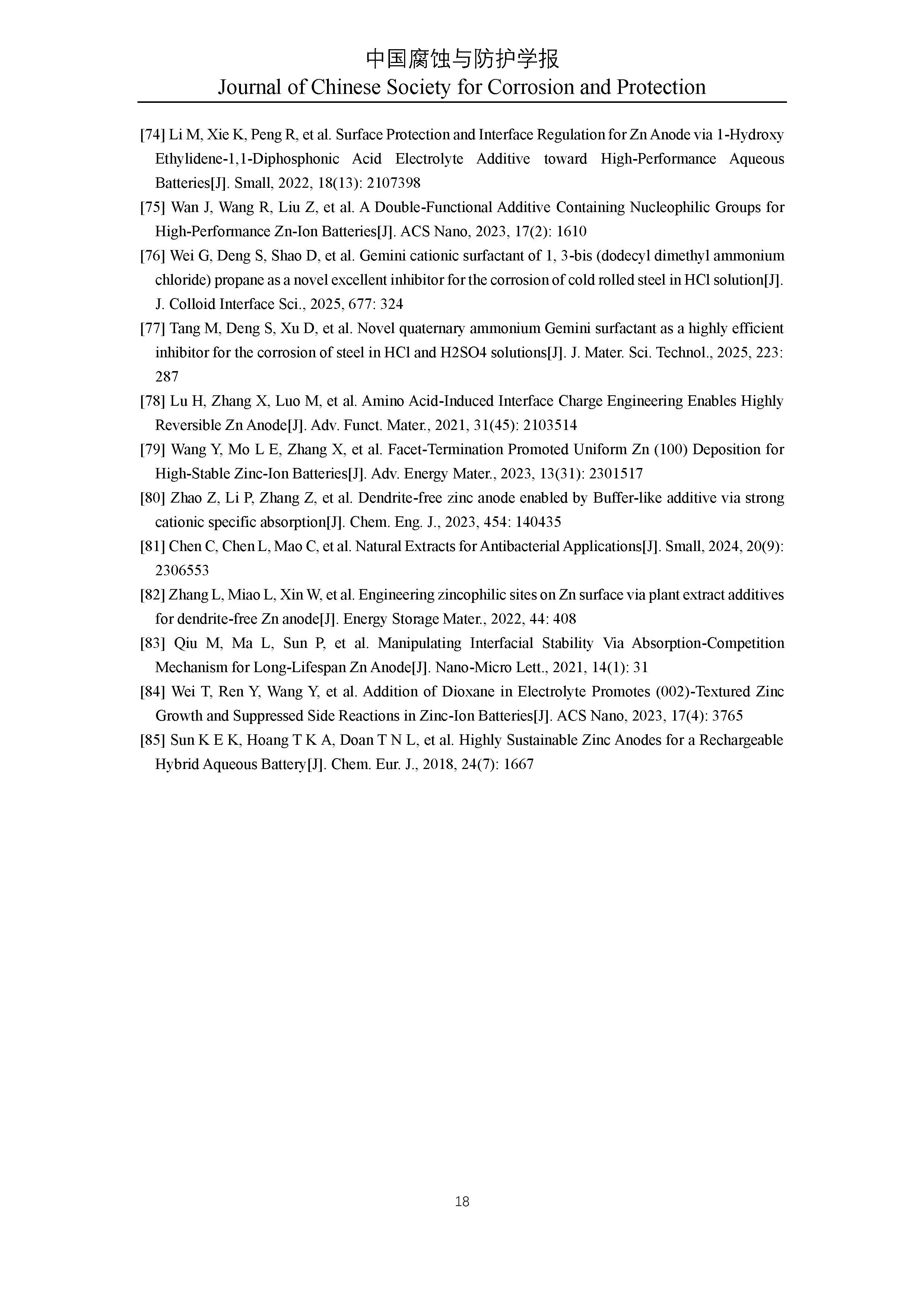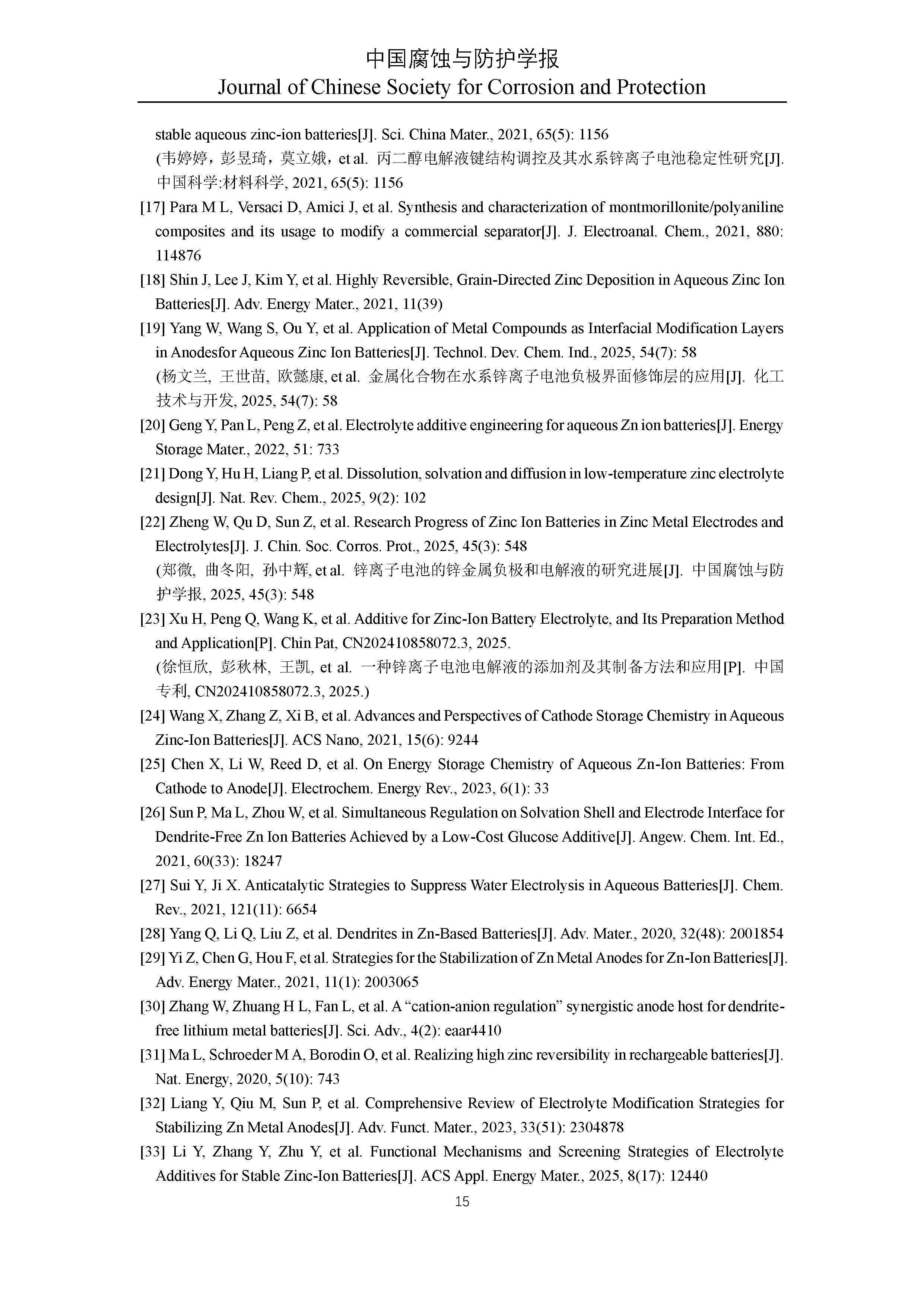 水系锌离子电池功能性缓蚀剂研究进展