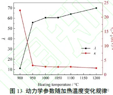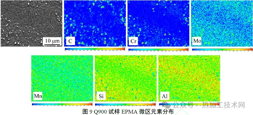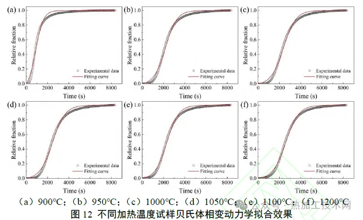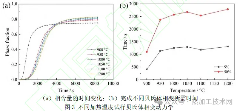 04|结语 1) 随着加热温度升高,贝氏体相变动力学减慢,主要原因是本试验钢中存在微米级和亚微米级富铬、钼碳化物,虽然本试验加热温度均高于其完全回溶温度,但大尺寸第二相的回溶在动力学上受到显著抑制,加热温度较低时,难以完全回溶。而加热温度较高时,析出颗粒回溶进入基体,增大了贝氏体相变激活能,从而减慢了相变动力学。 2)存在一个临界温度 (约为950℃),低于该温度时,贝氏体相变动力学随加热温度升高而急剧减慢。例如,温度由900℃增加至950℃相变,完成5%相变所需时间延长至2倍以上。然而,高于该临界温度时,相变动力学变化趋势明显变缓。 3)加热温度对原始奥氏体晶粒尺寸和室温组织产生显著影响。加热温度较低时,由于合金元素偏析和第二相的带状分布,原始奥氏体中出现了带状分布的细晶区和粗晶区。细晶奥氏体区中形成的贝氏体长度较短,厚度较大。当加热温度较高时,原始奥氏体晶粒和室温贝氏体晶粒尺寸分布较为均匀。