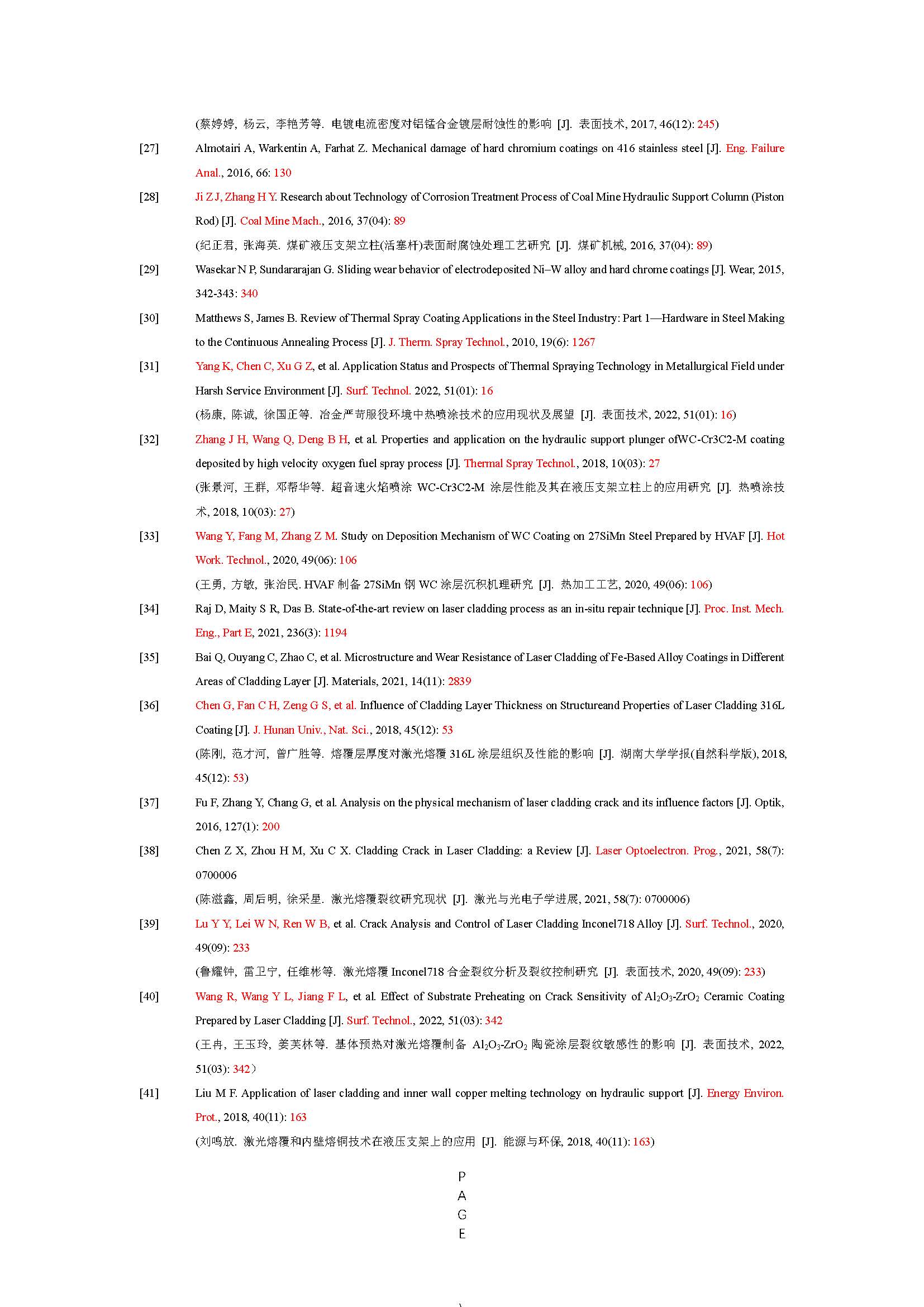 激光熔覆液压支架立柱防腐耐磨涂层研究进展