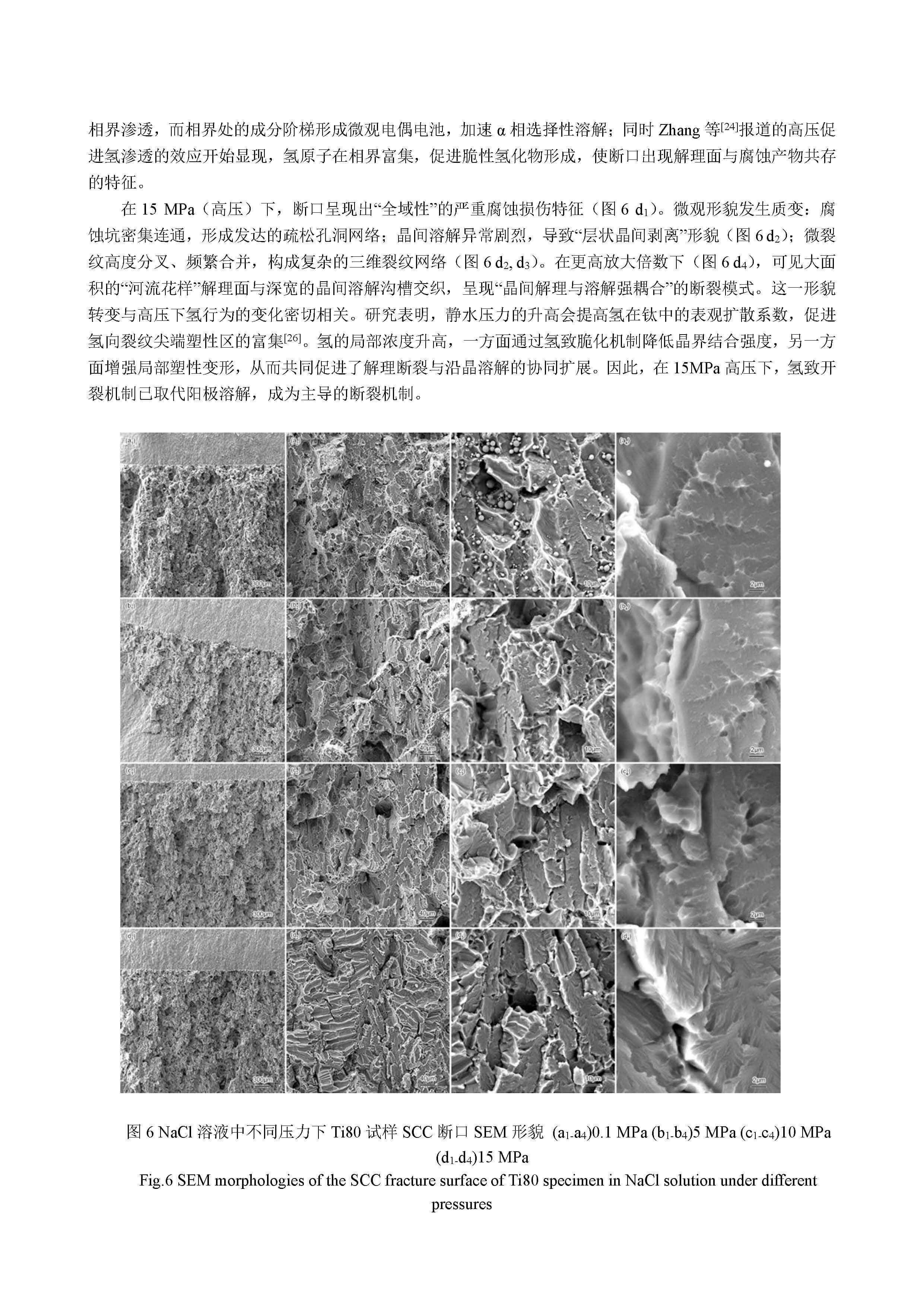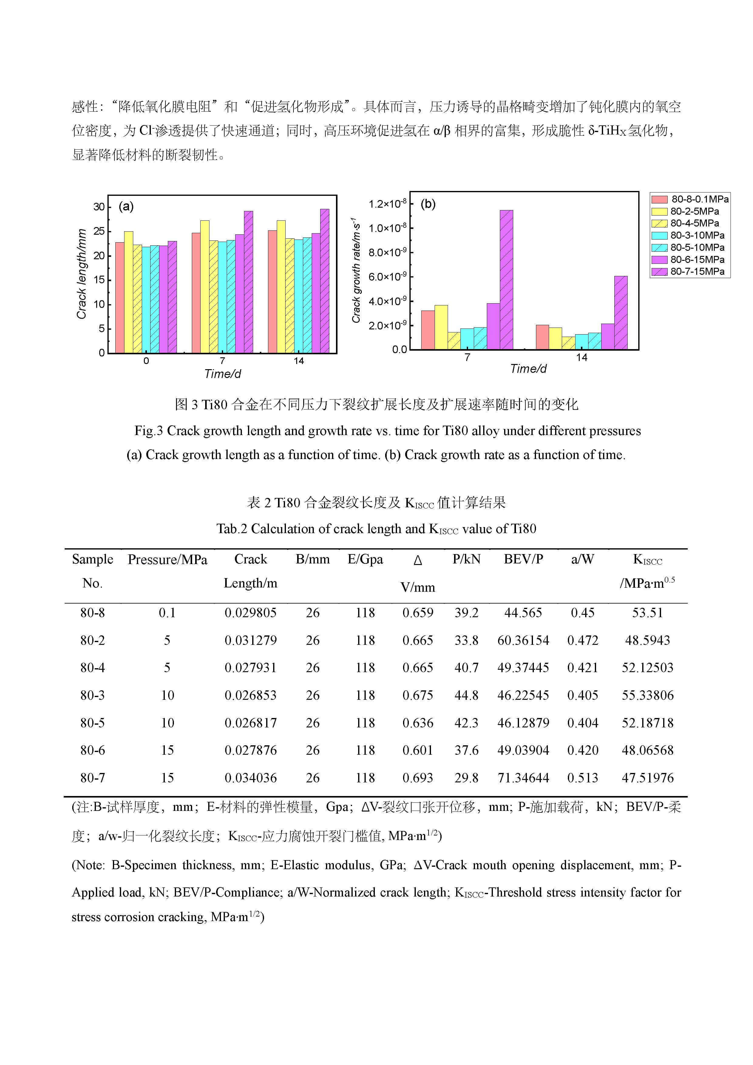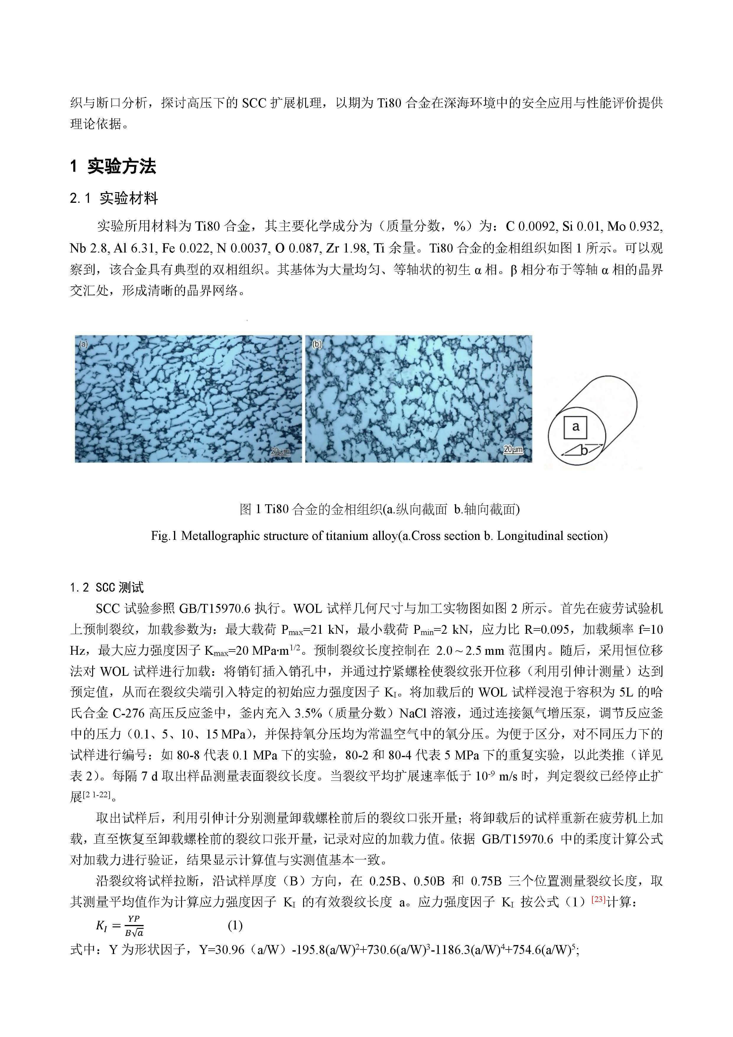 在 3.5%NaCl 溶液中压力变化对 Ti80 合金应力腐蚀行为的影响