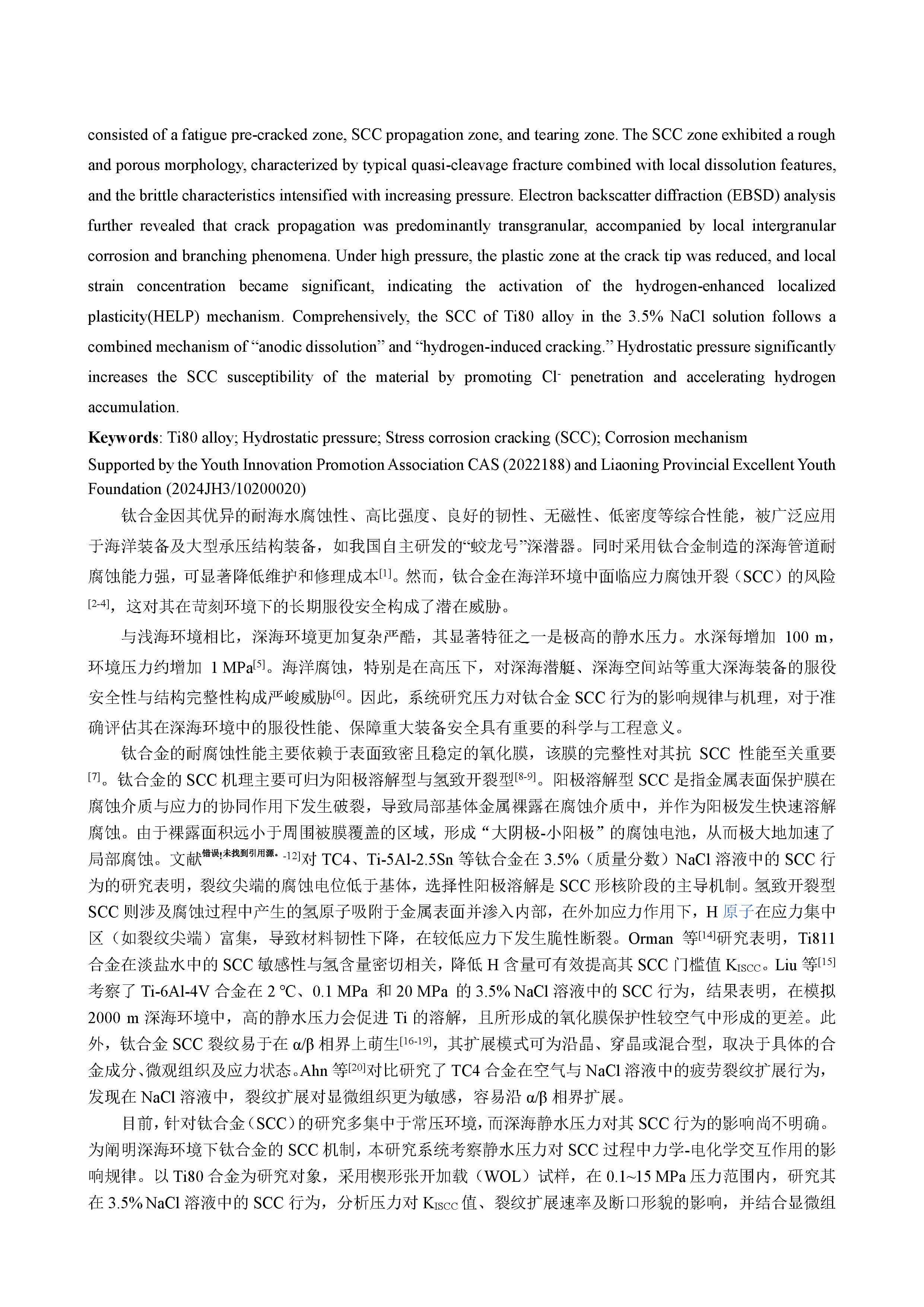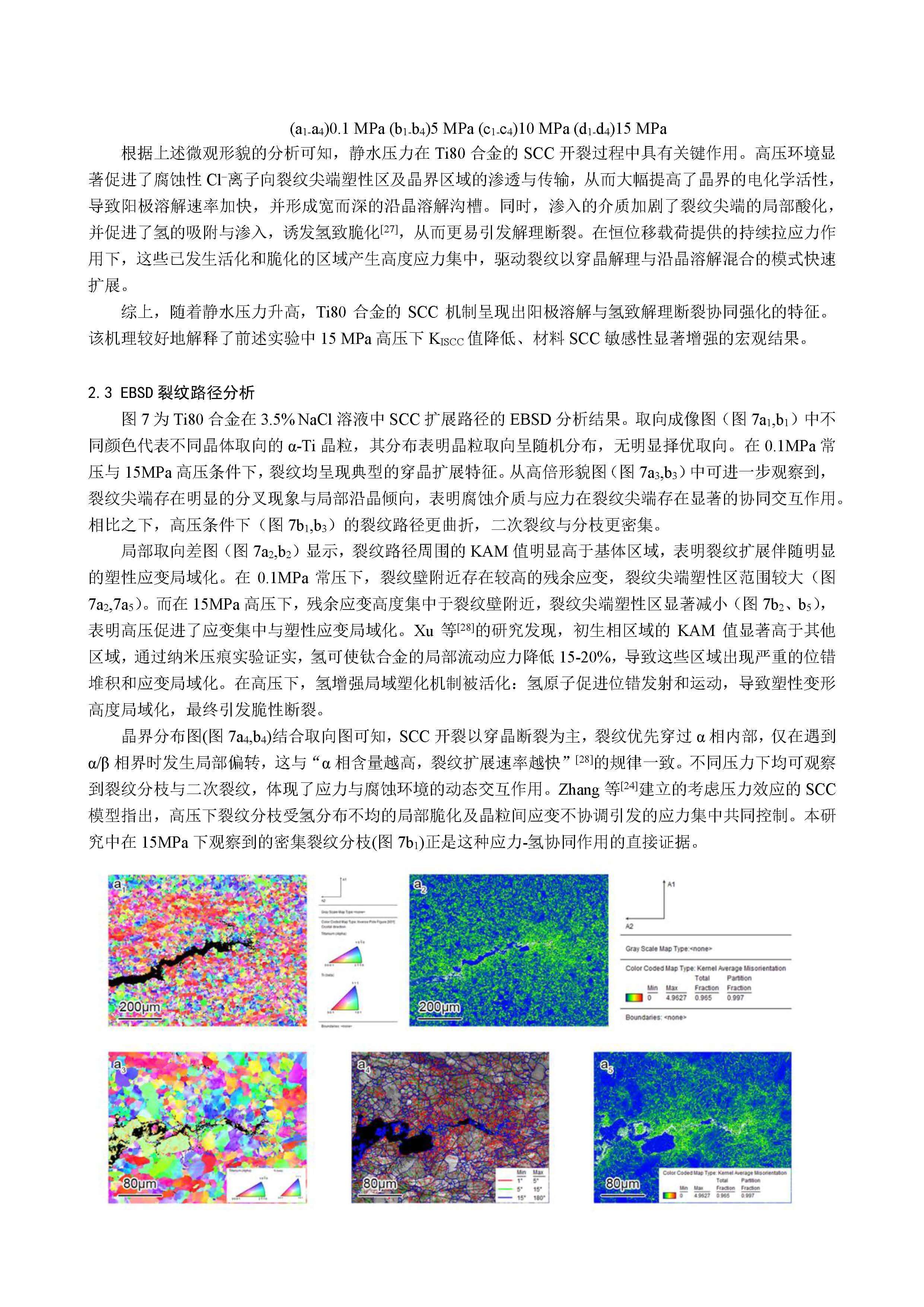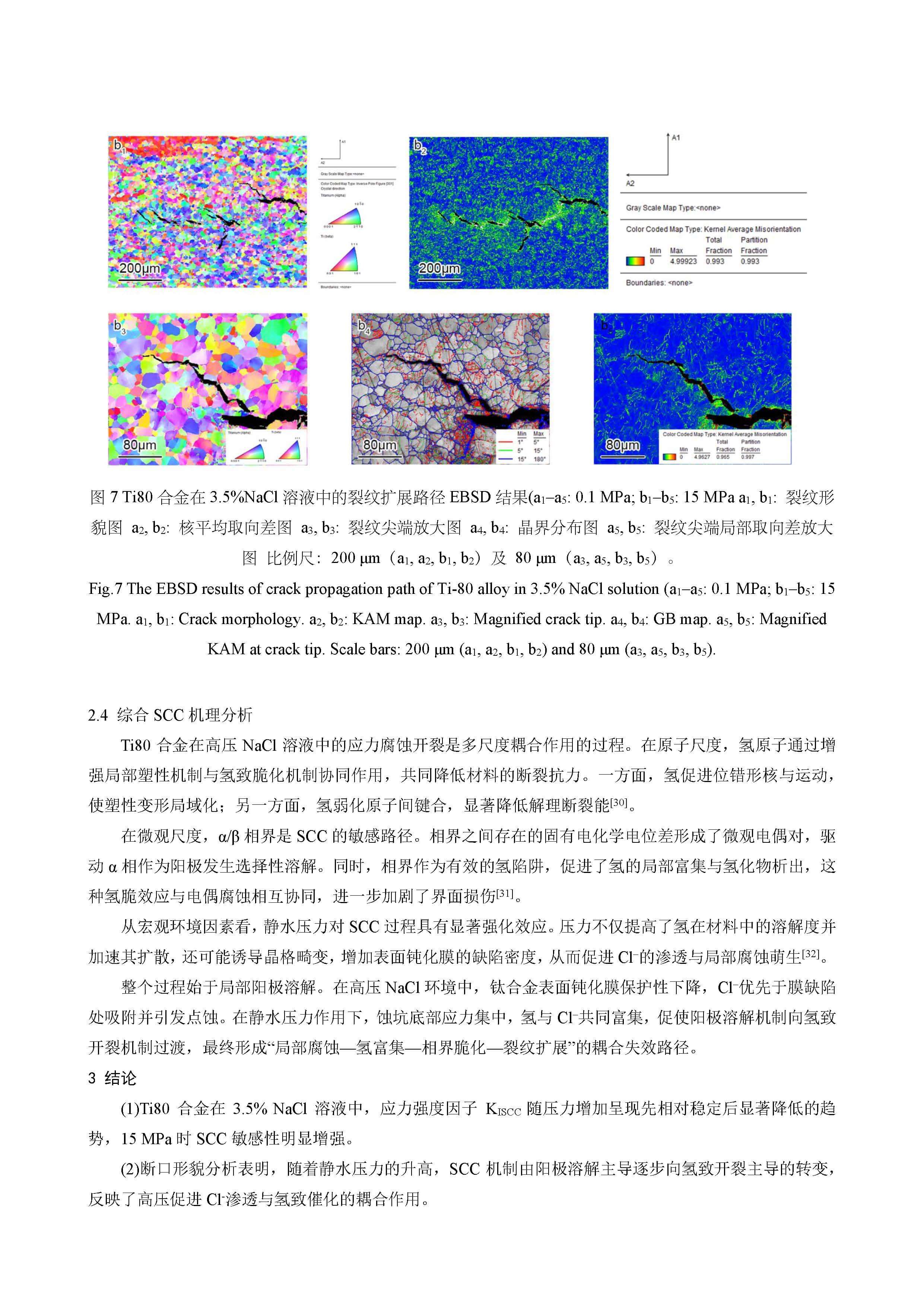 在 3.5%NaCl 溶液中压力变化对 Ti80 合金应力腐蚀行为的影响