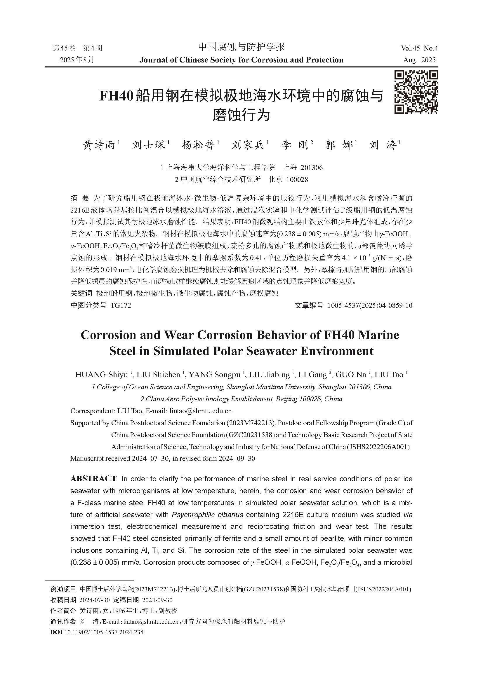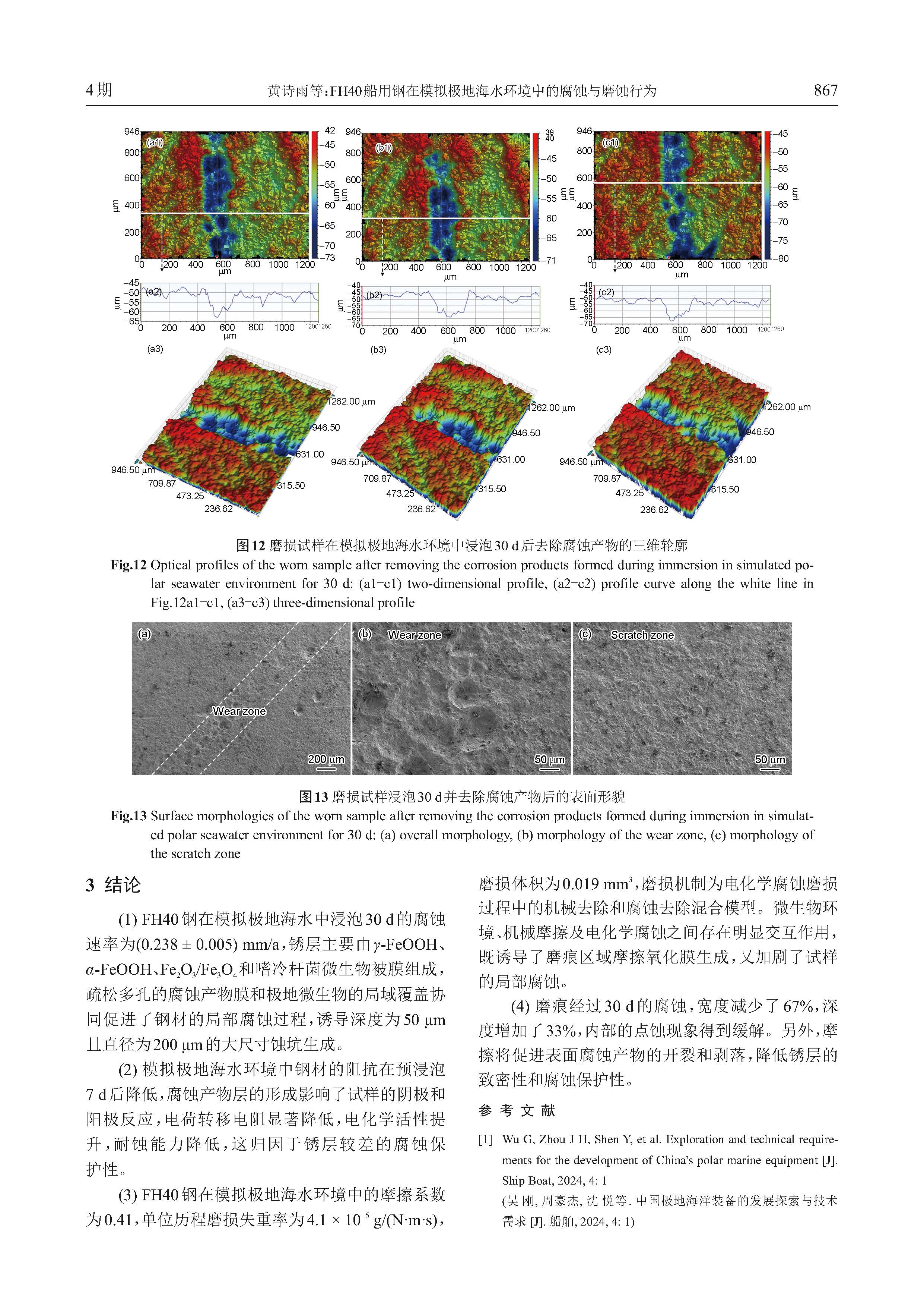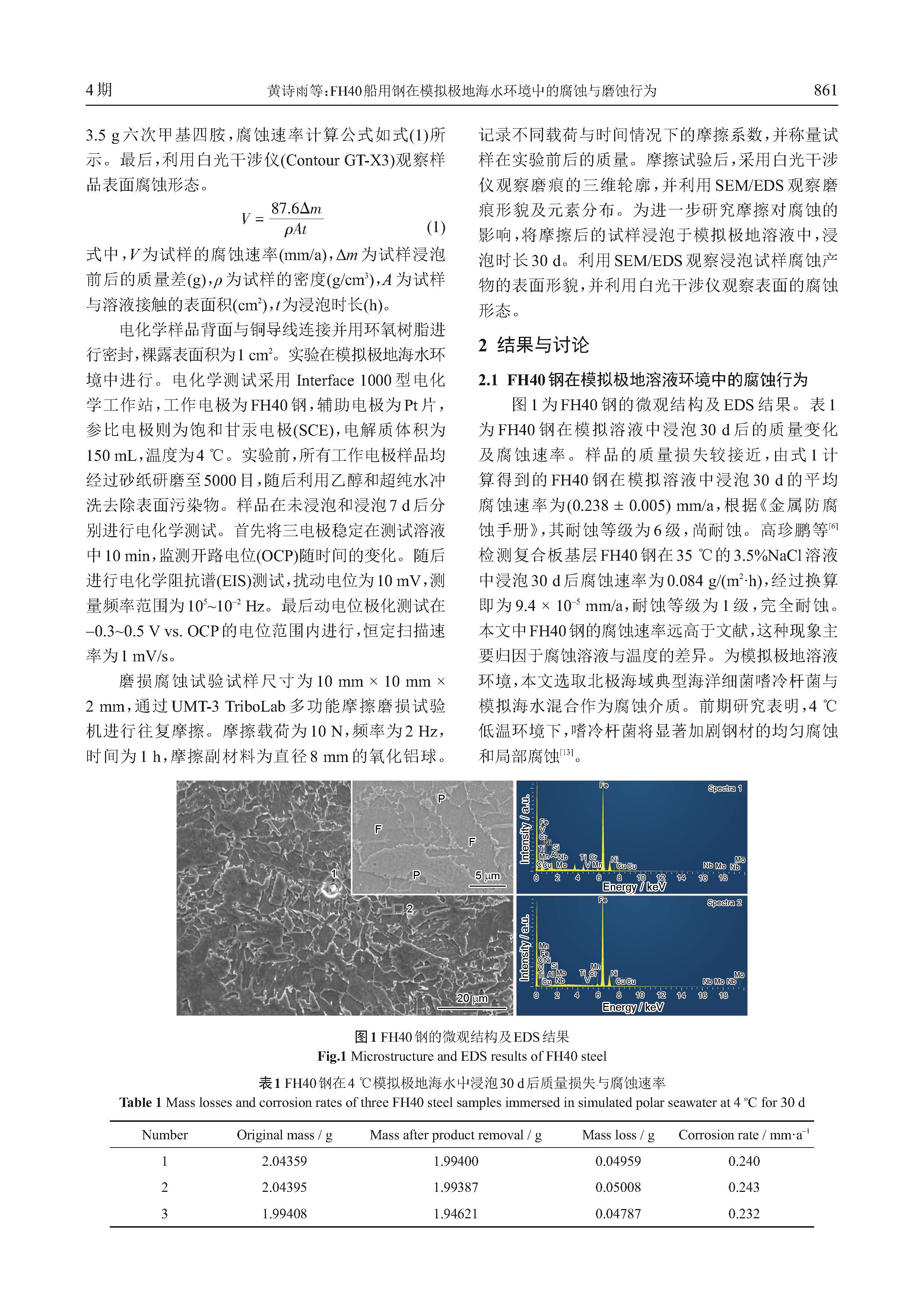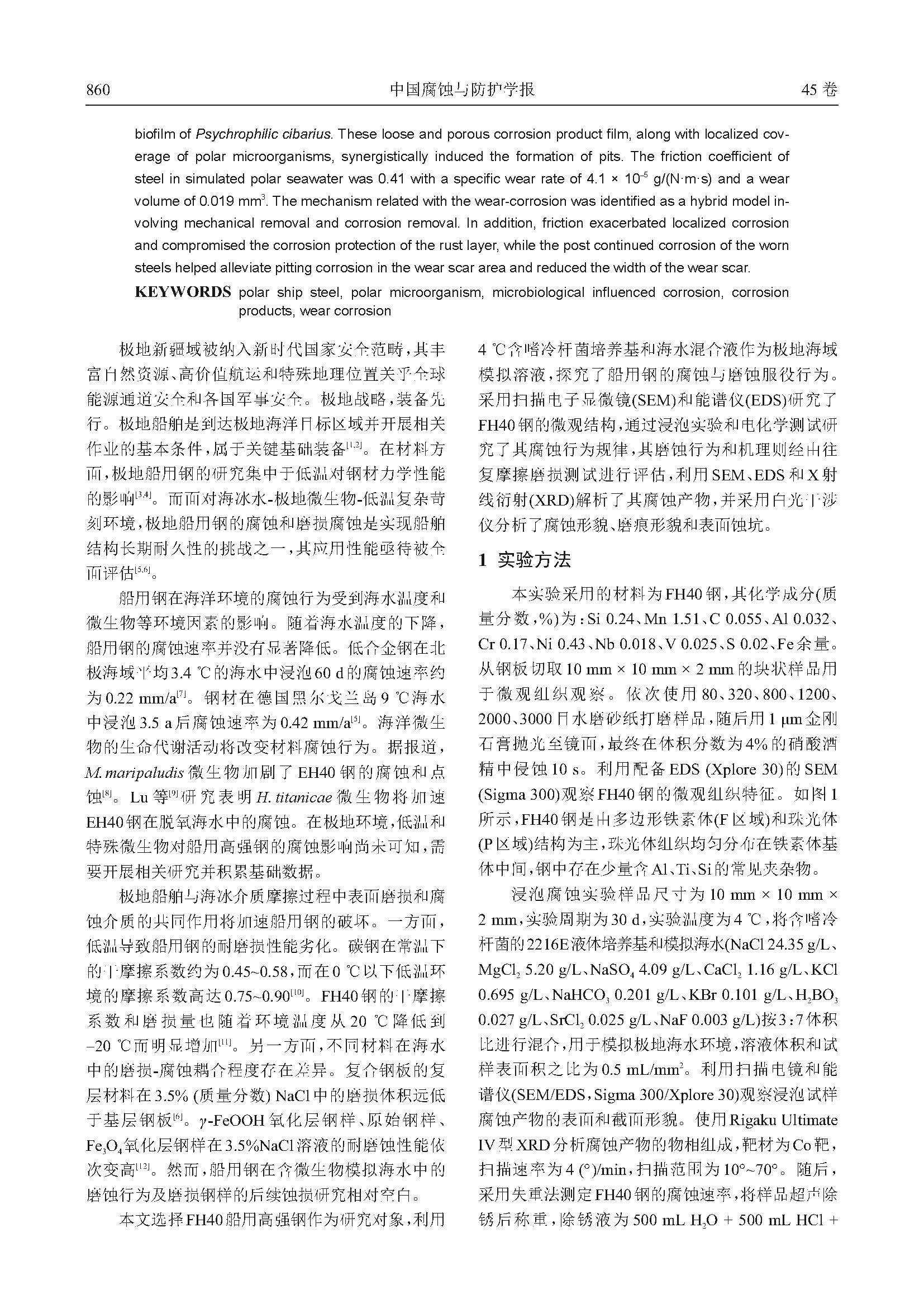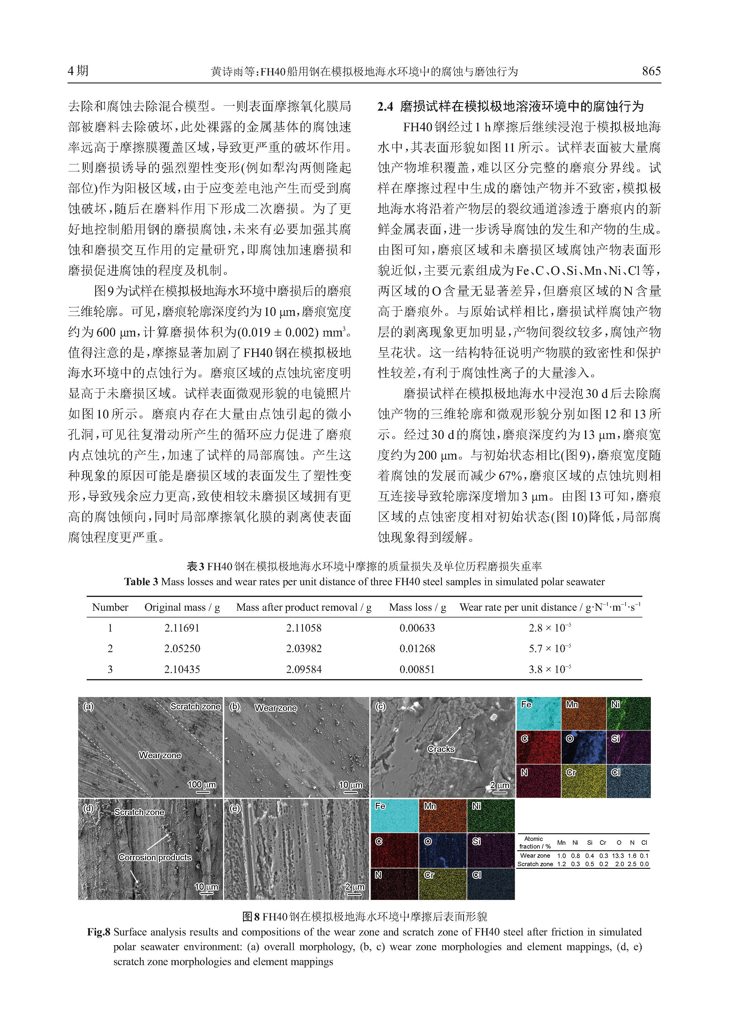 FH40船用钢在模拟极地海水环境中的腐蚀与磨蚀行为