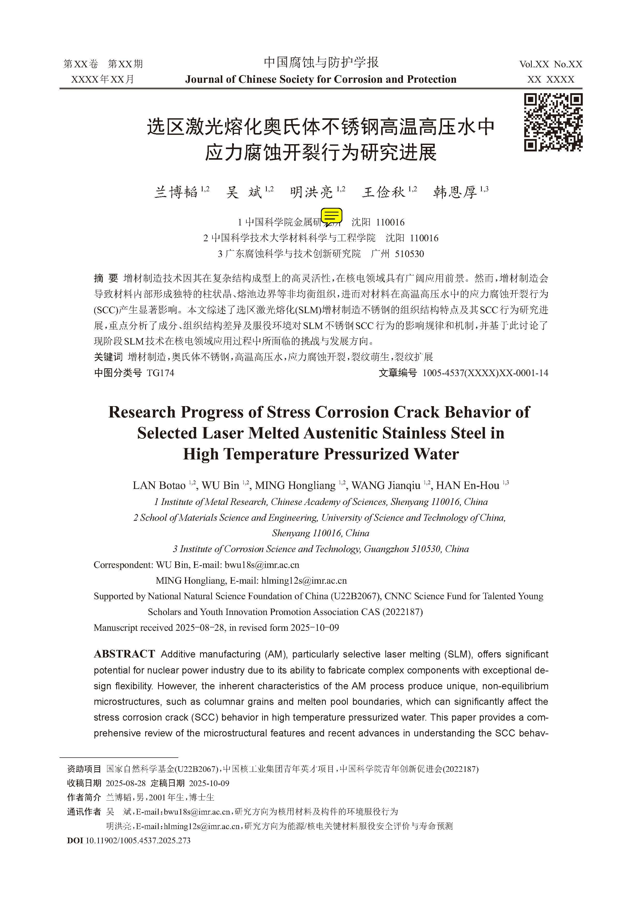 来源:中国腐蚀与防护学报