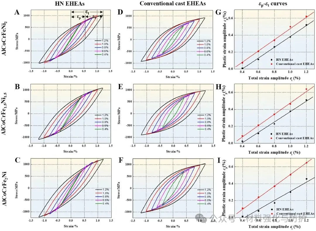 铸态和HN共晶高熵合金的半寿命滞后曲线
