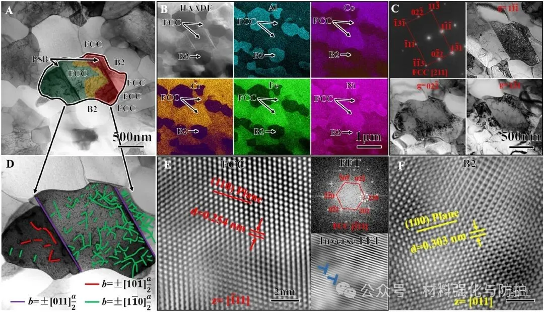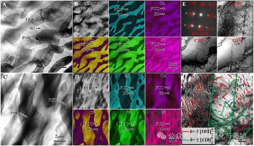 多尺度异质纳米结构AlCoCrFe1.5Ni1.5合金疲劳测试后的TEM图像