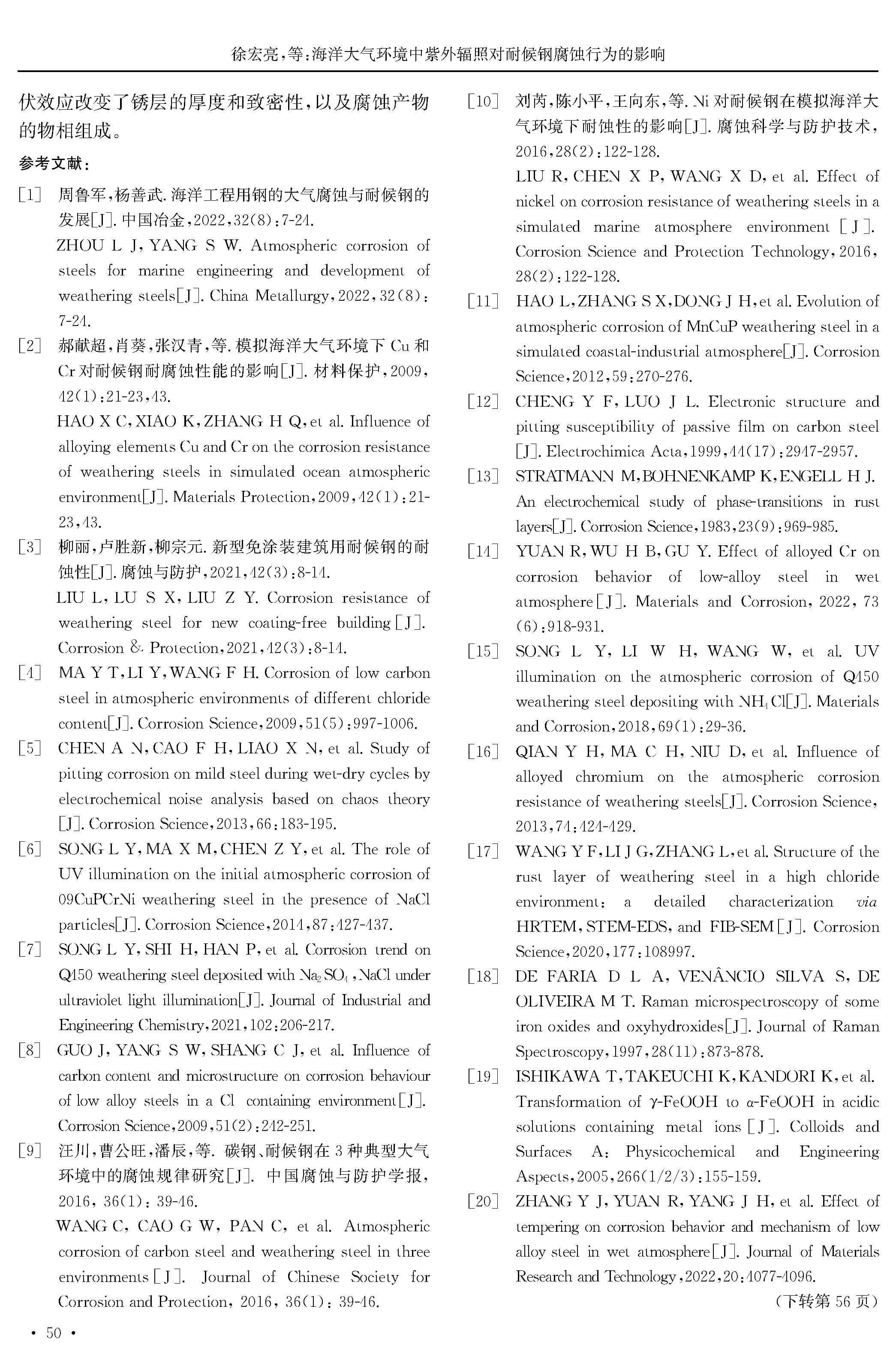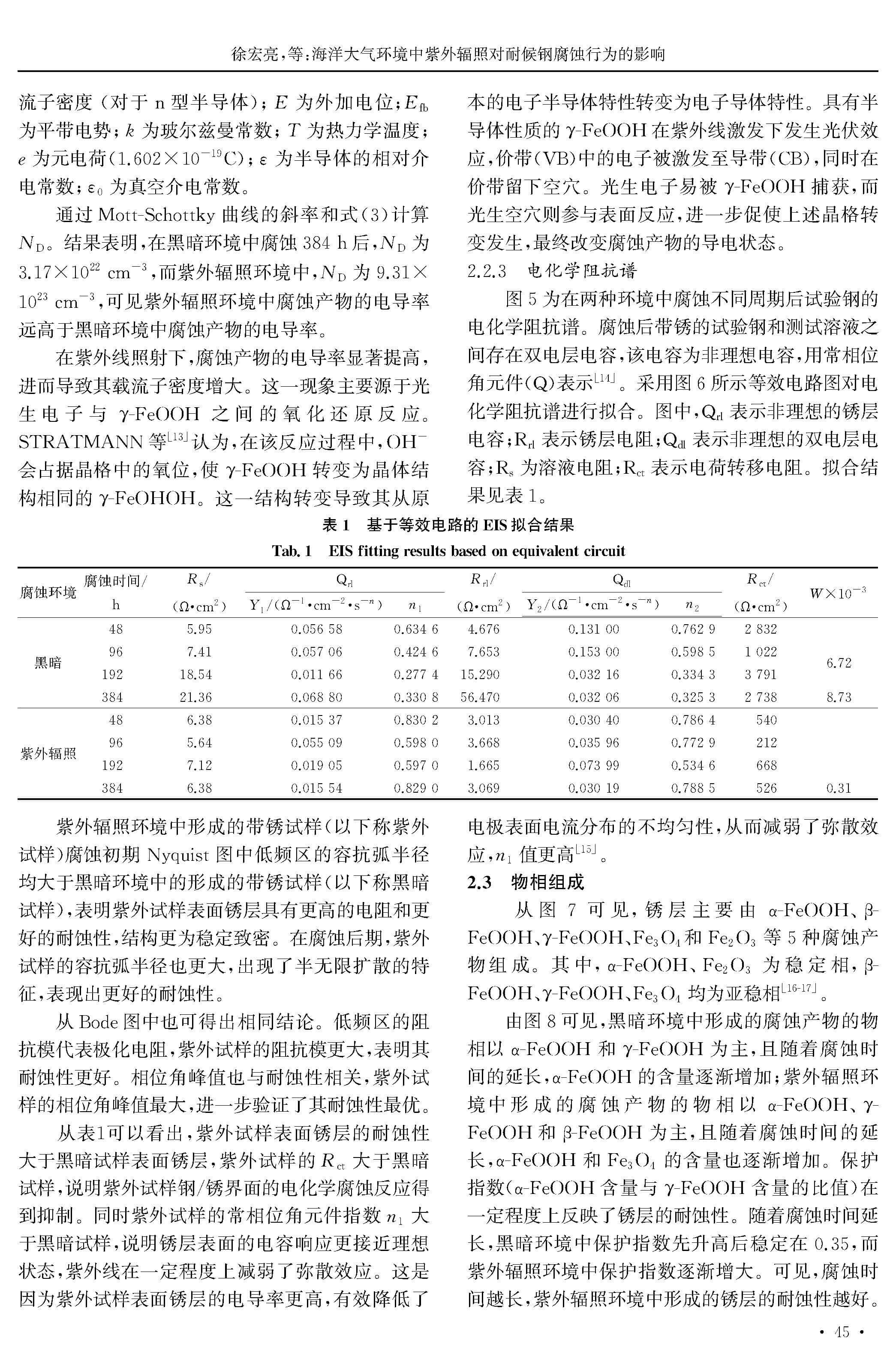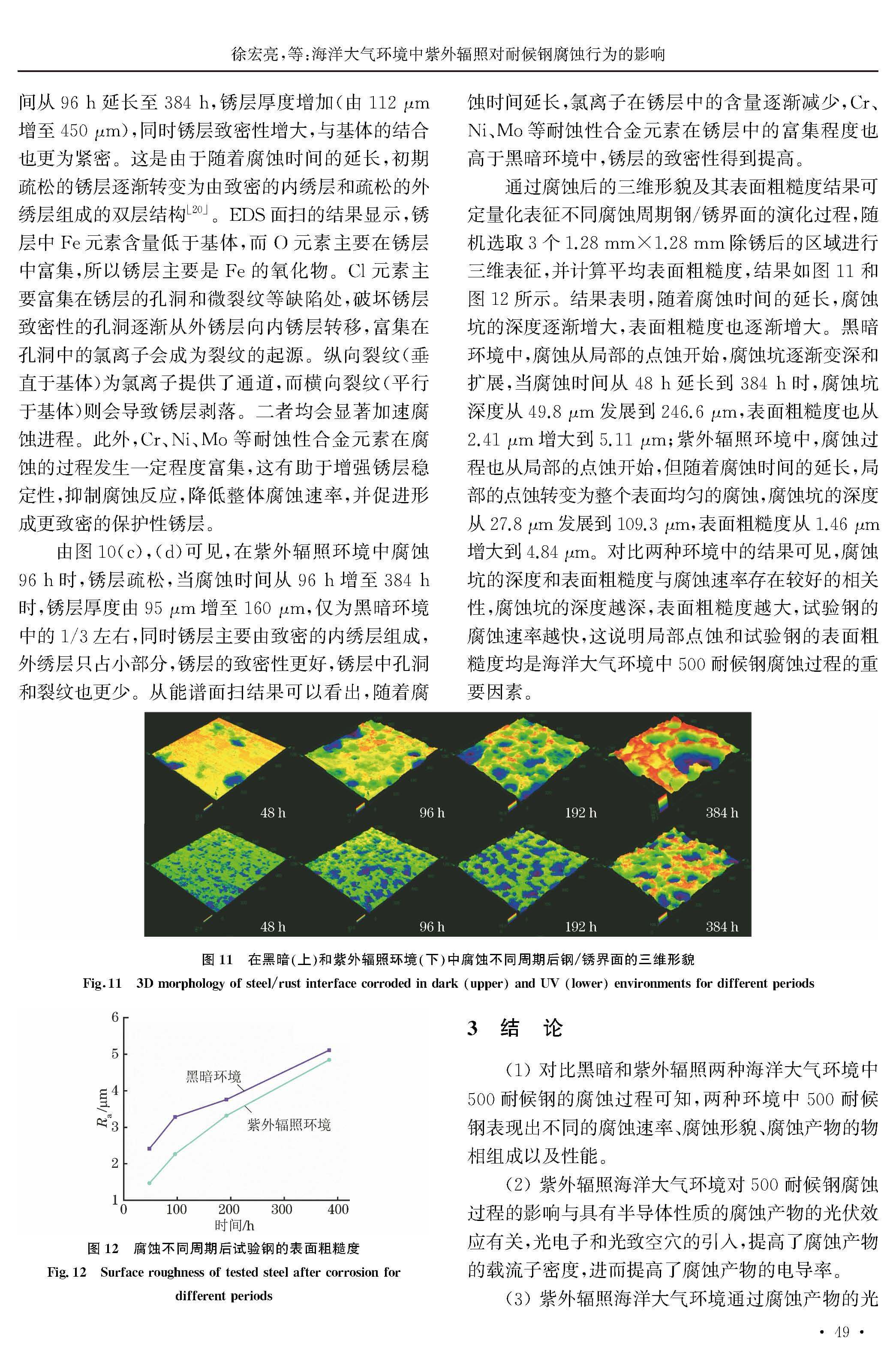 海洋大气环境中紫外辐照对耐候钢腐蚀行为的影响