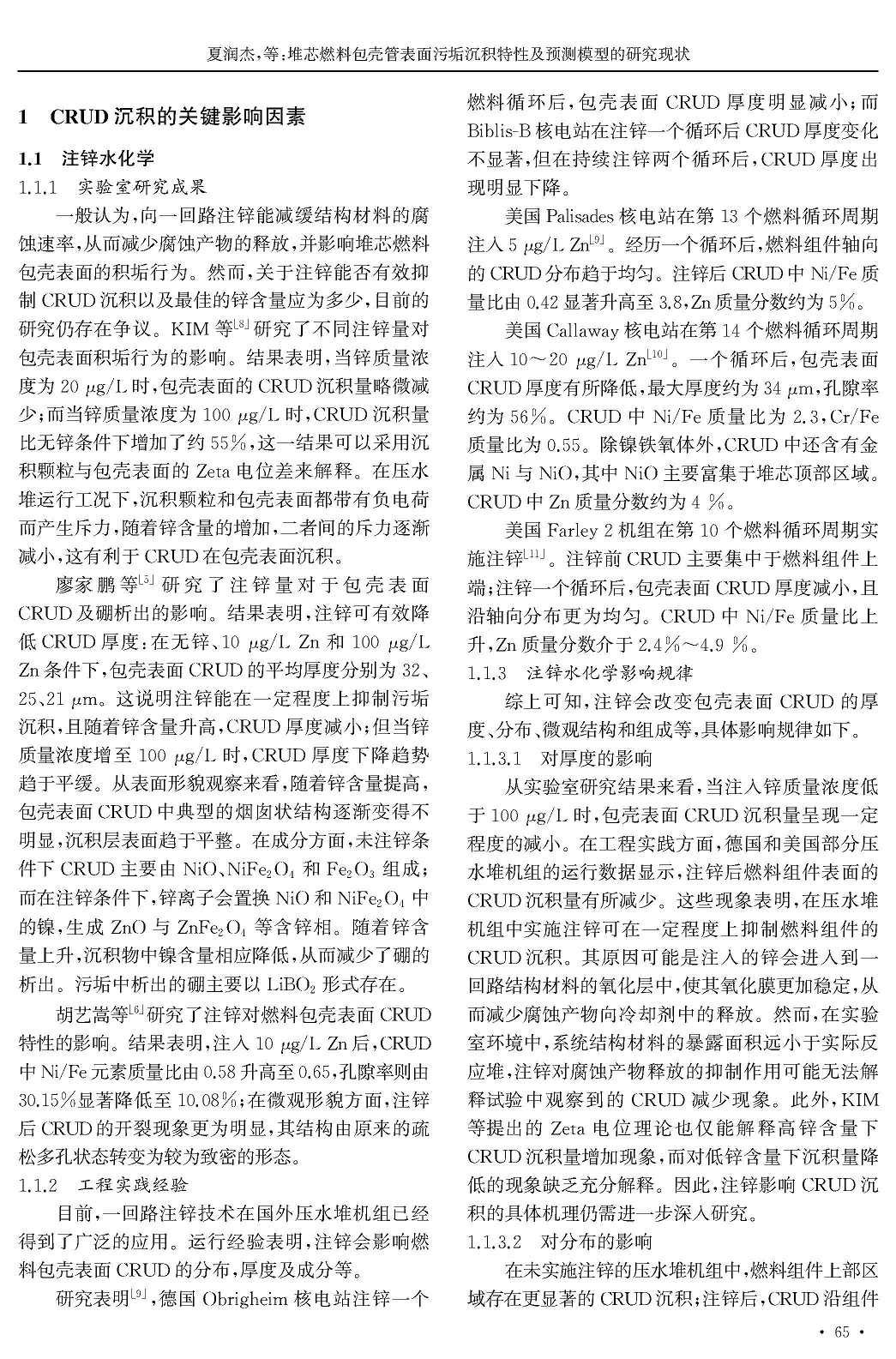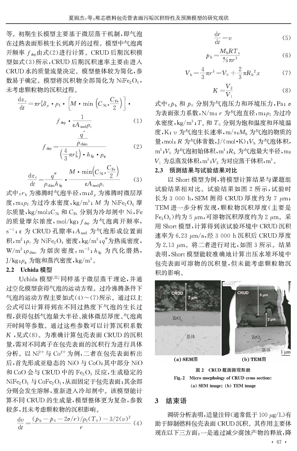 堆芯燃料包壳管表面污垢沉积特性及预测模型的研究现状