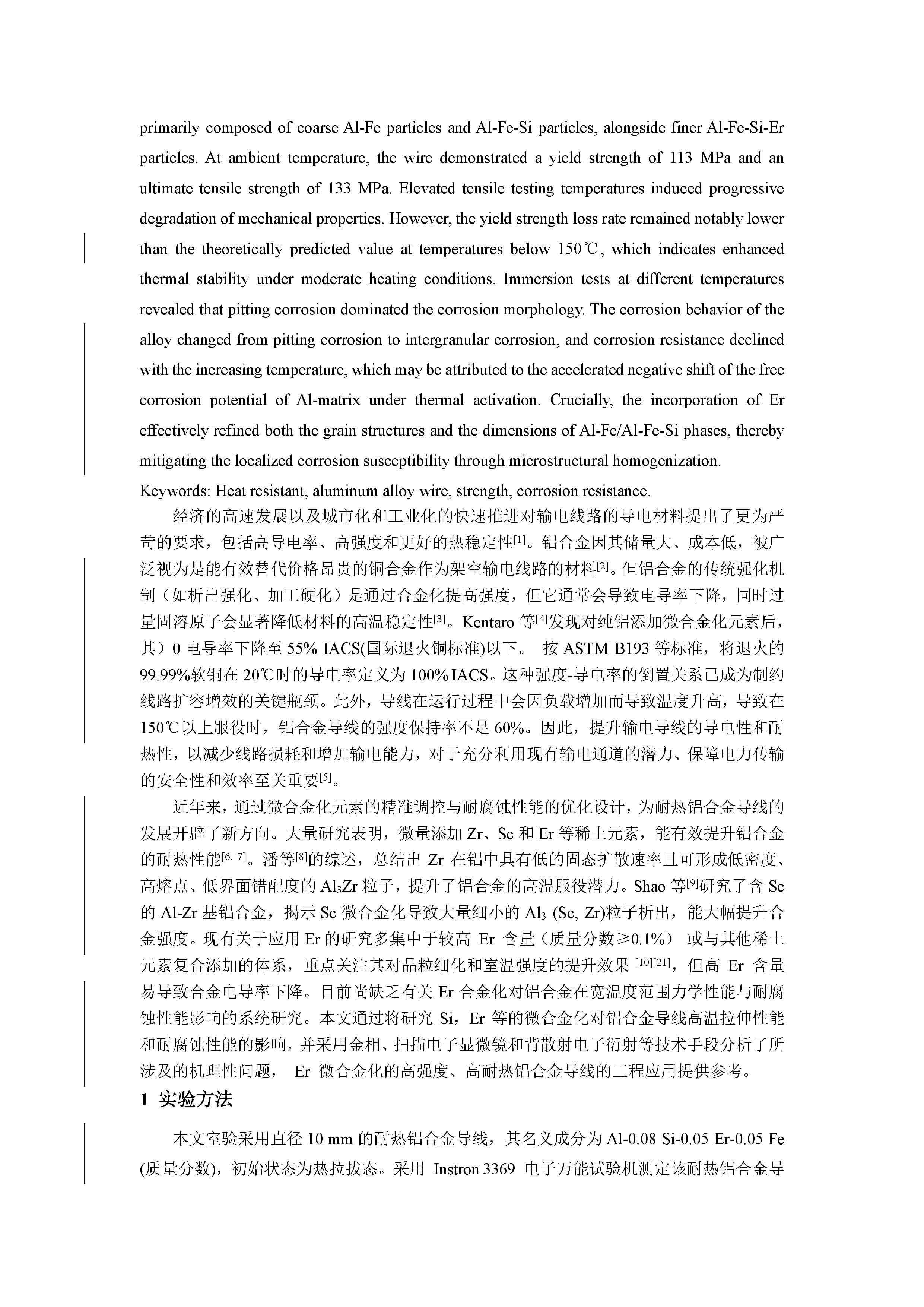 含微量 Er 铝合金导线力学性能与腐蚀行为研究