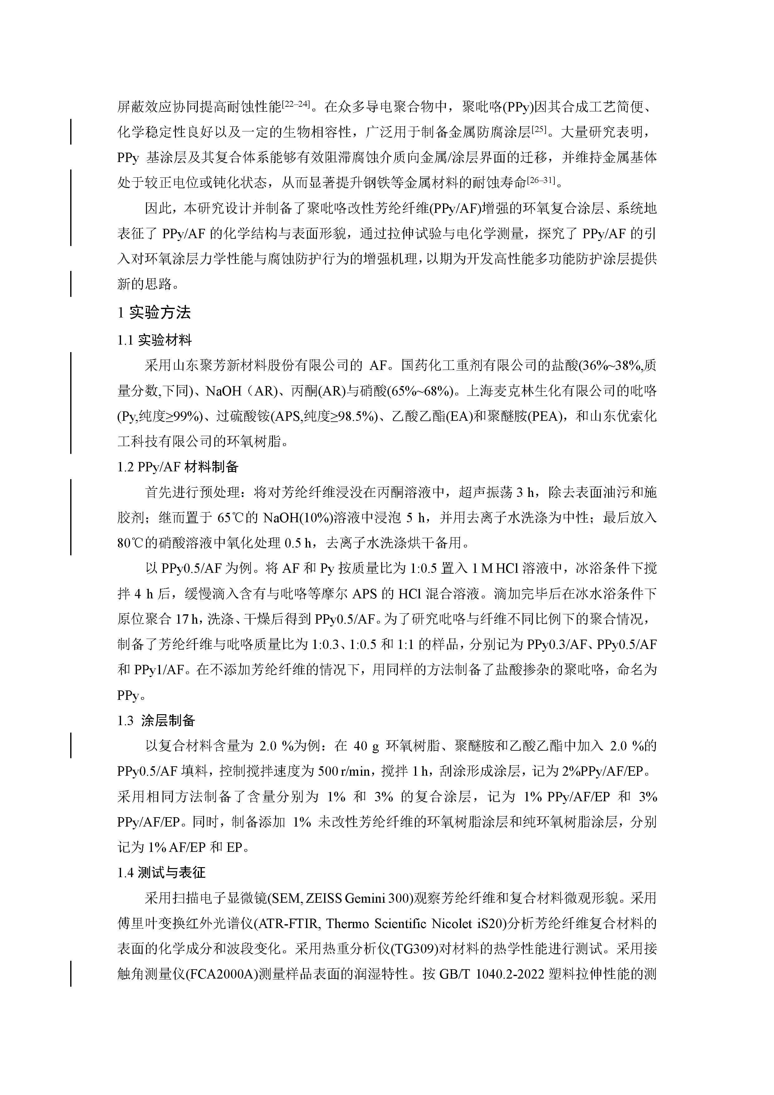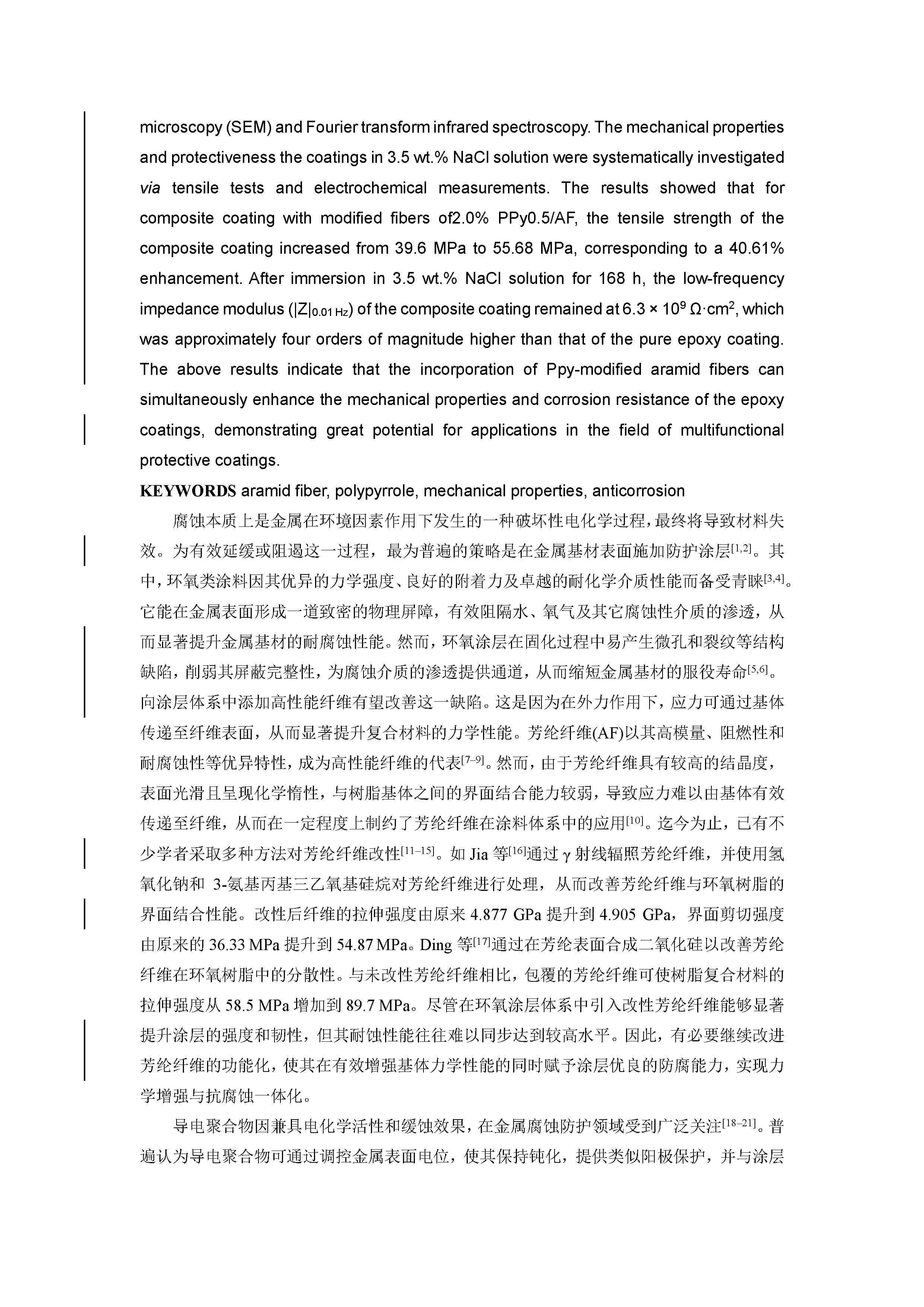 力学与防腐性能协同增强的聚吡咯改性芳纶纤维/环氧复合涂料