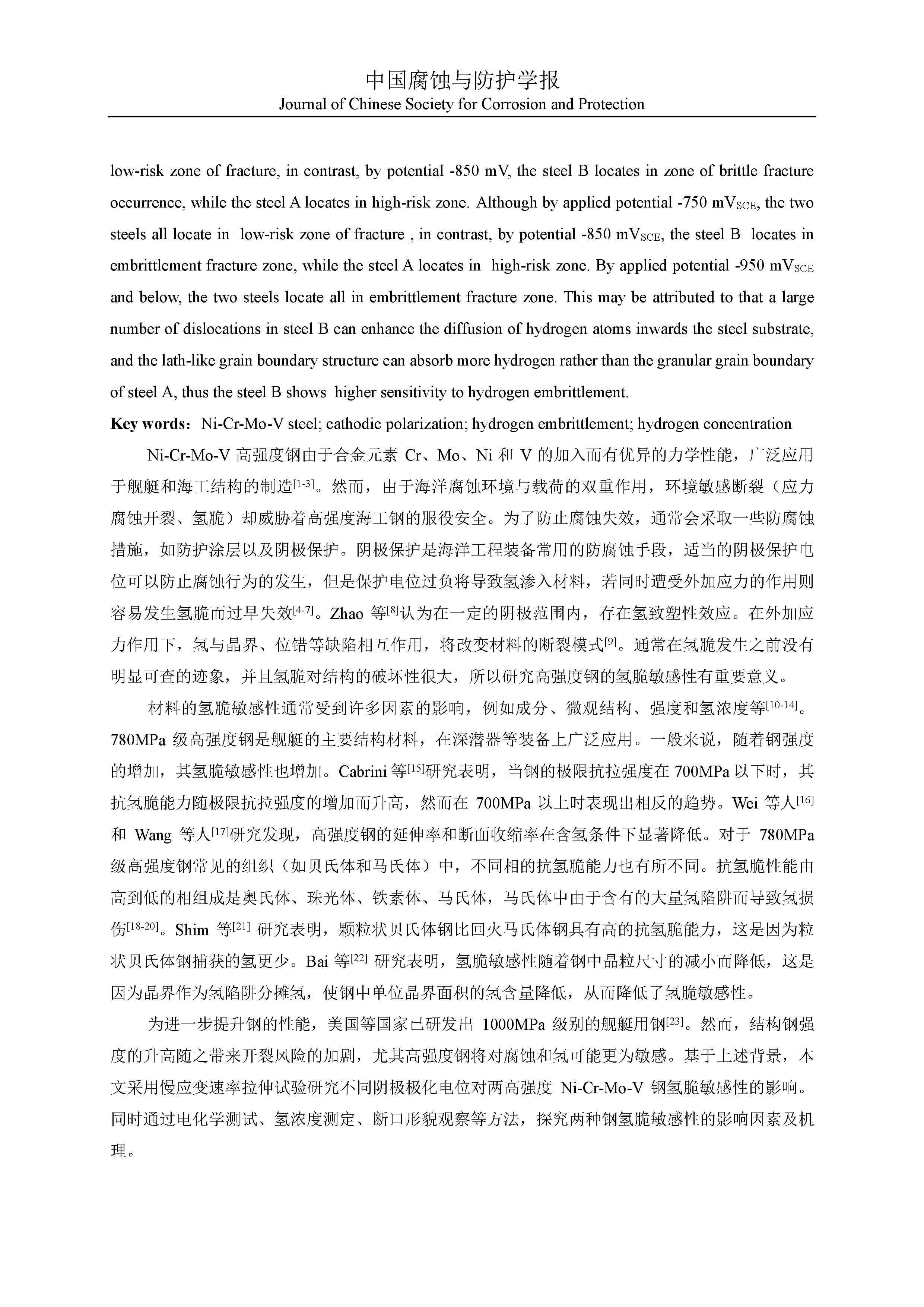 阴极极化对两种高强度 Ni-Cr-Mo-V 钢氢脆行为的影响