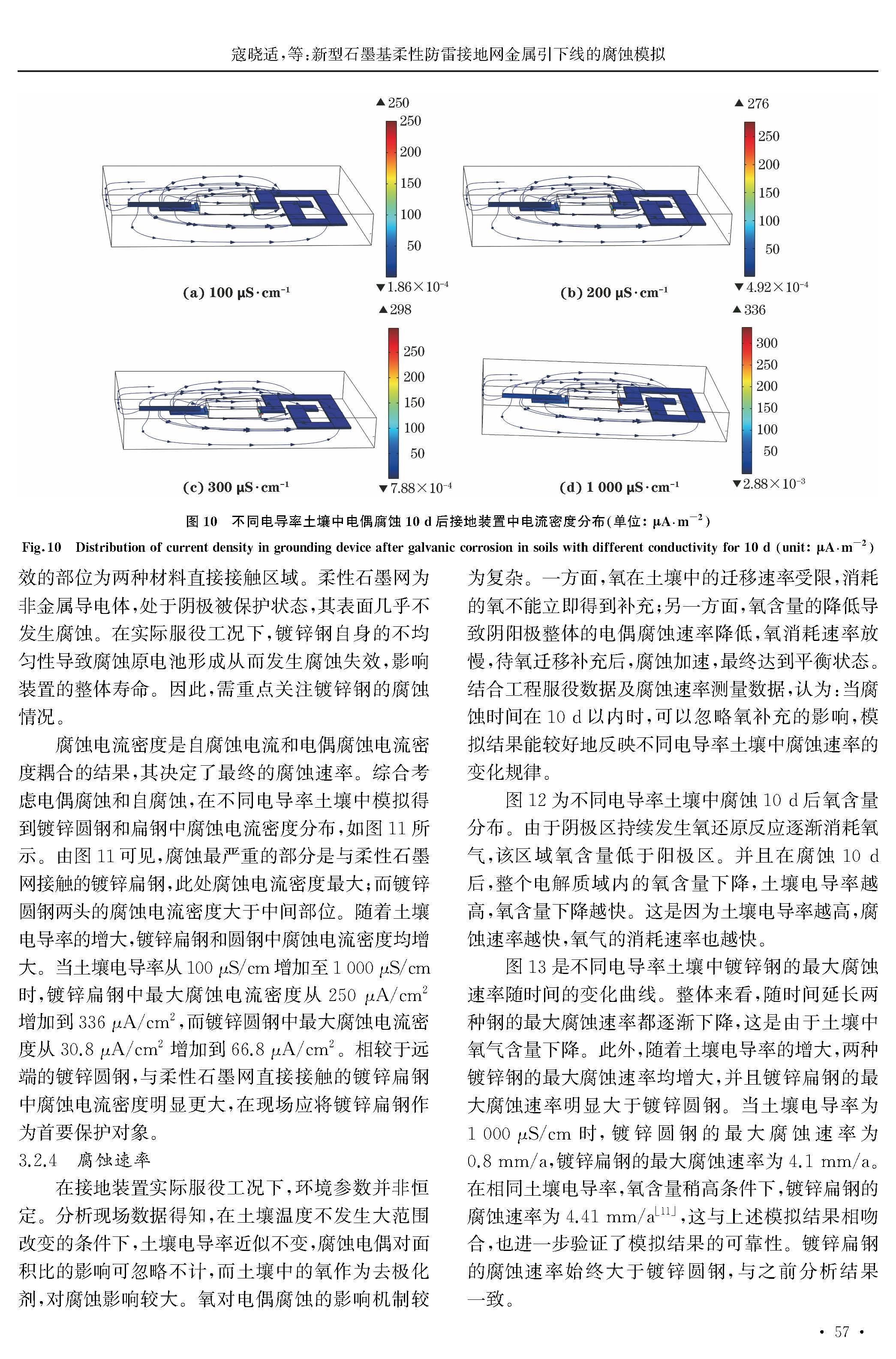 新型石墨基柔性防雷接地网金属引下线的腐蚀模拟