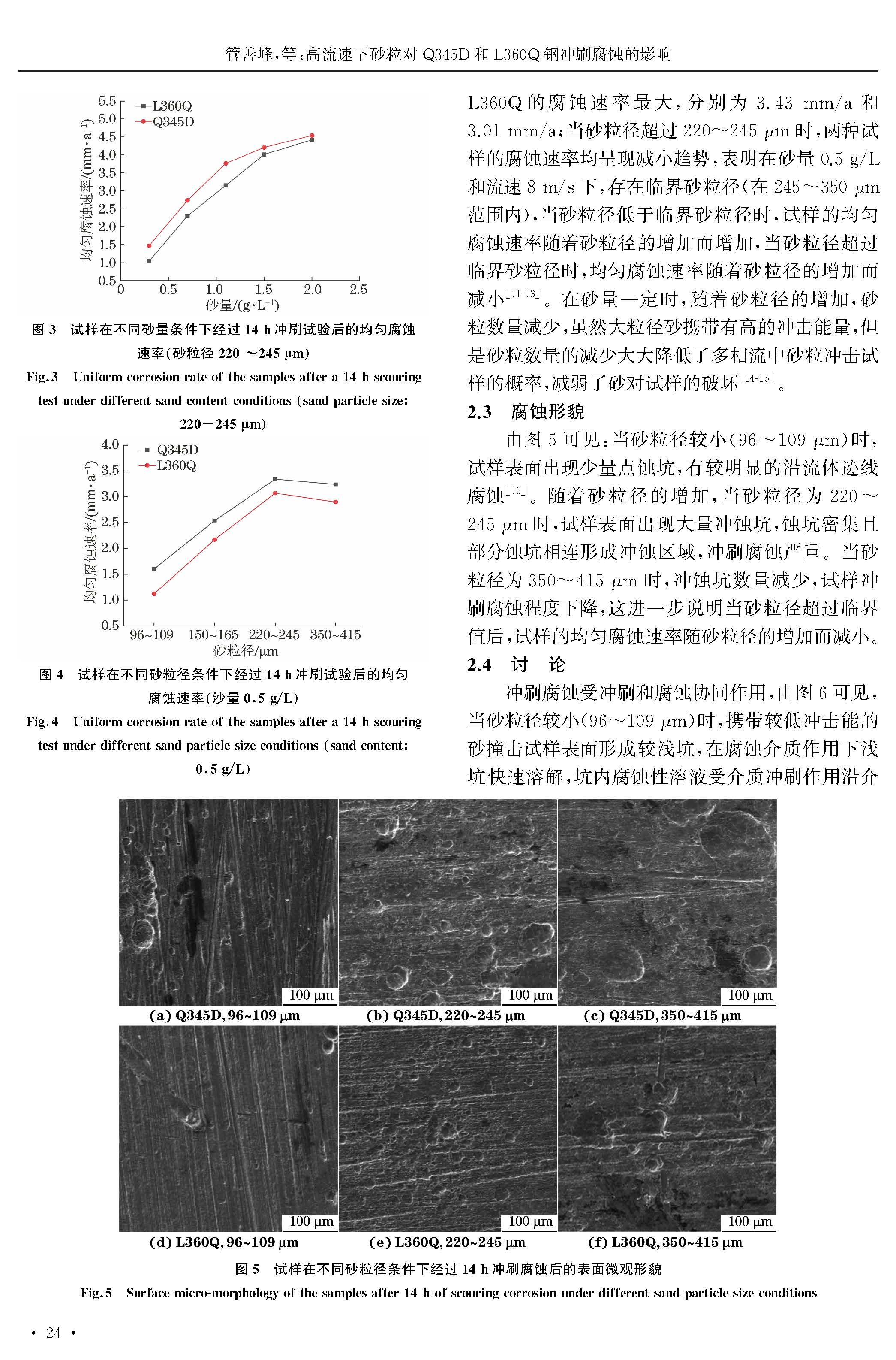 高流速下砂粒对Q345D和L360Q钢冲刷腐蚀的影响