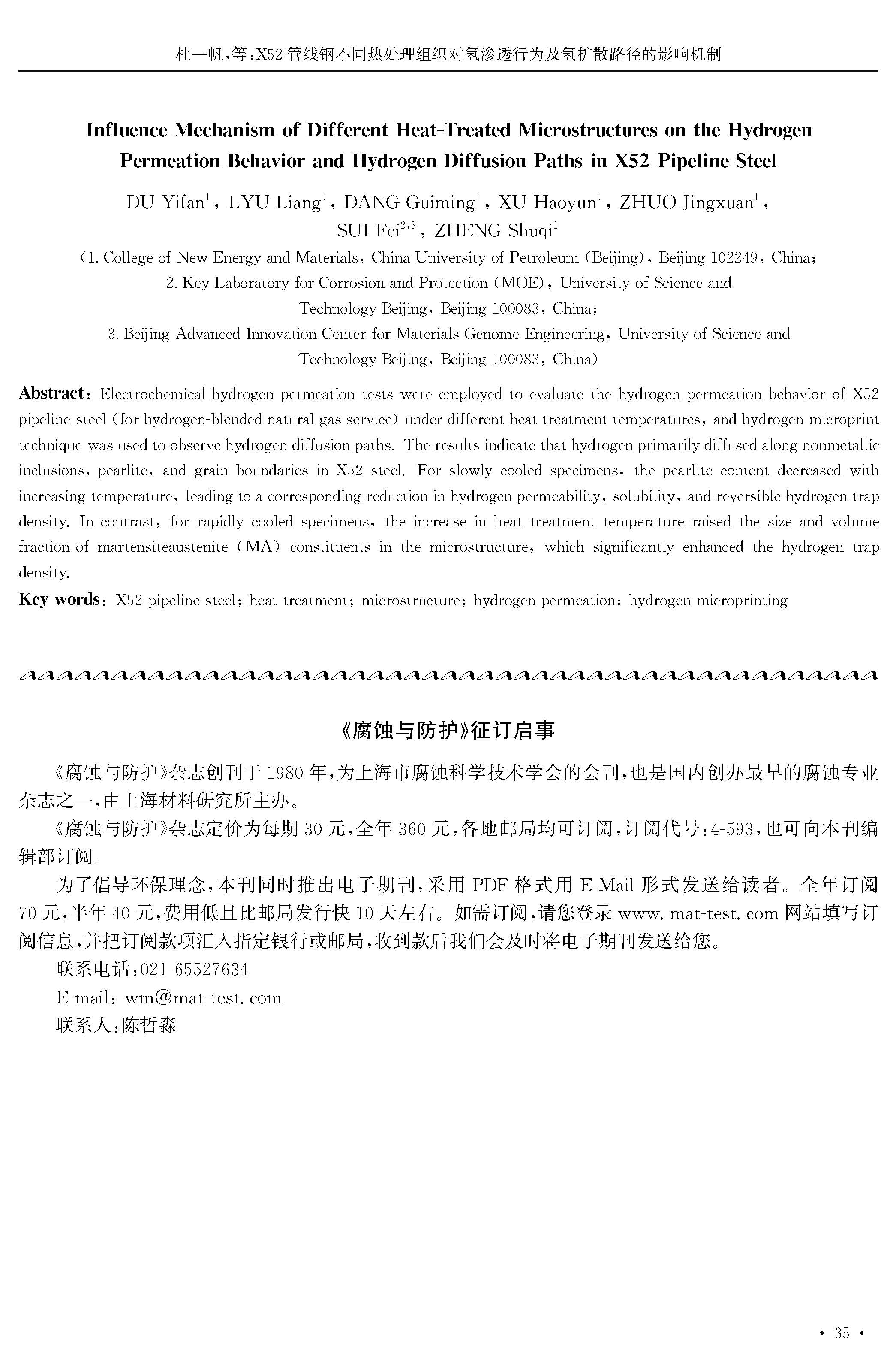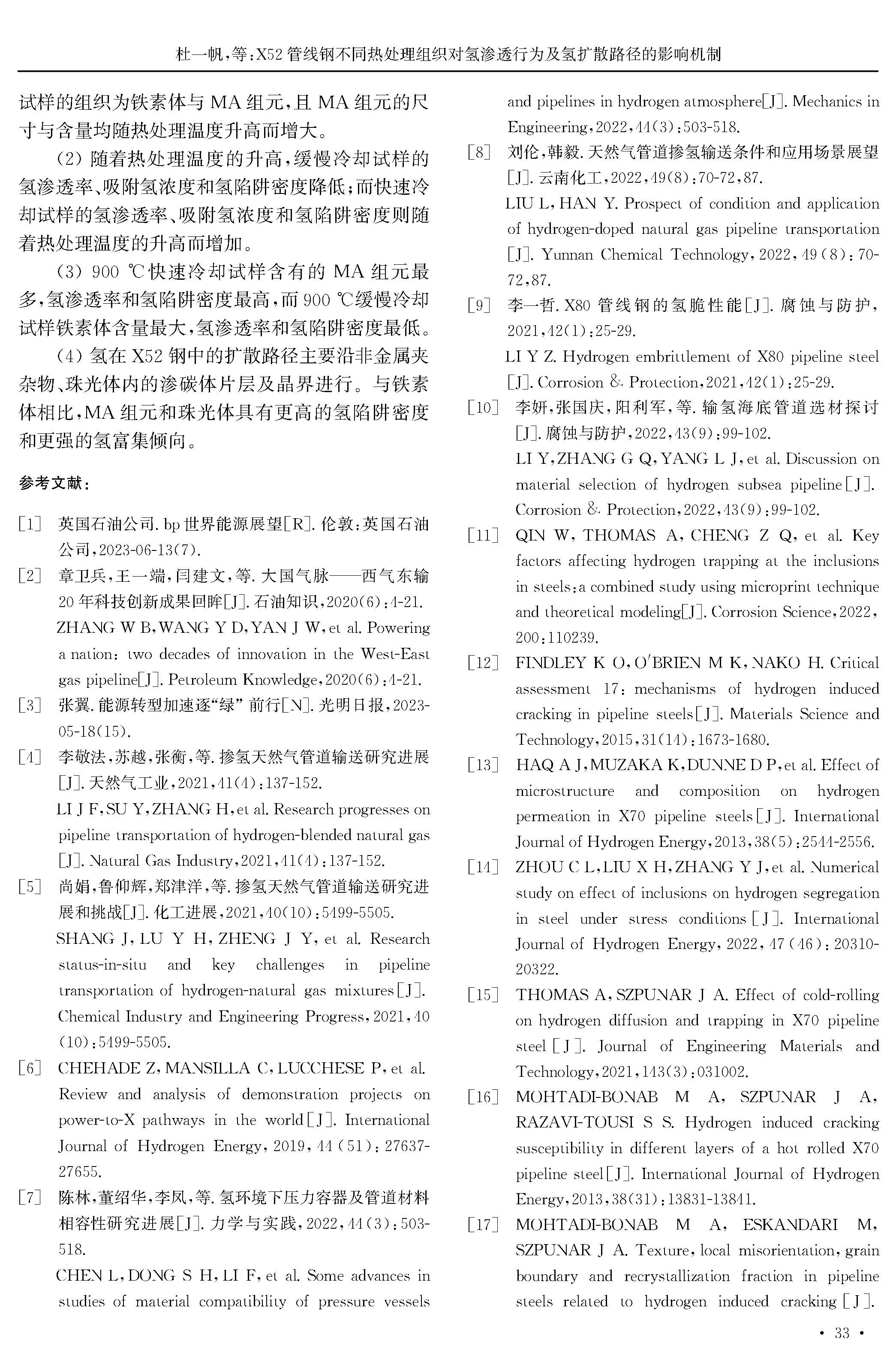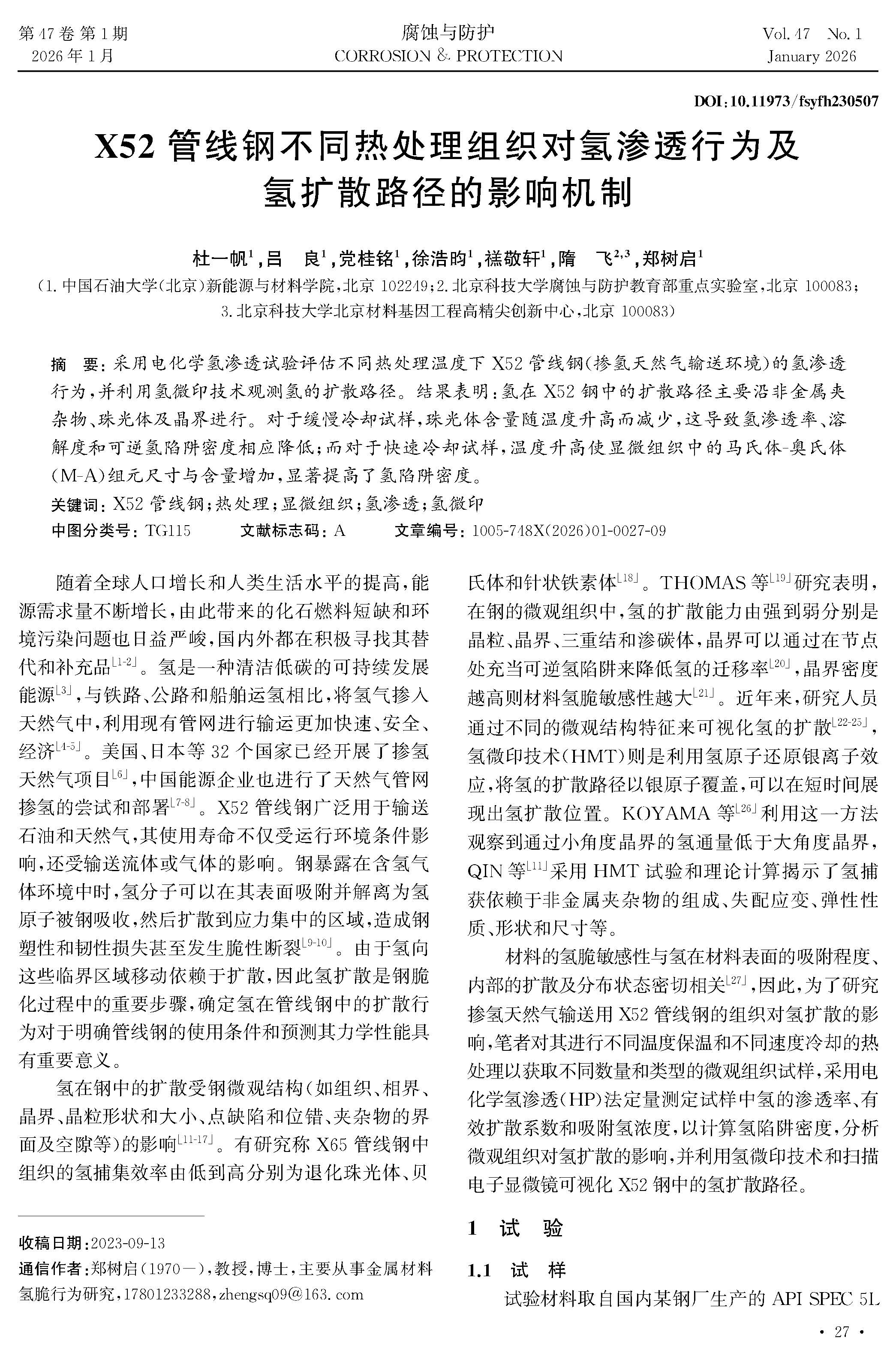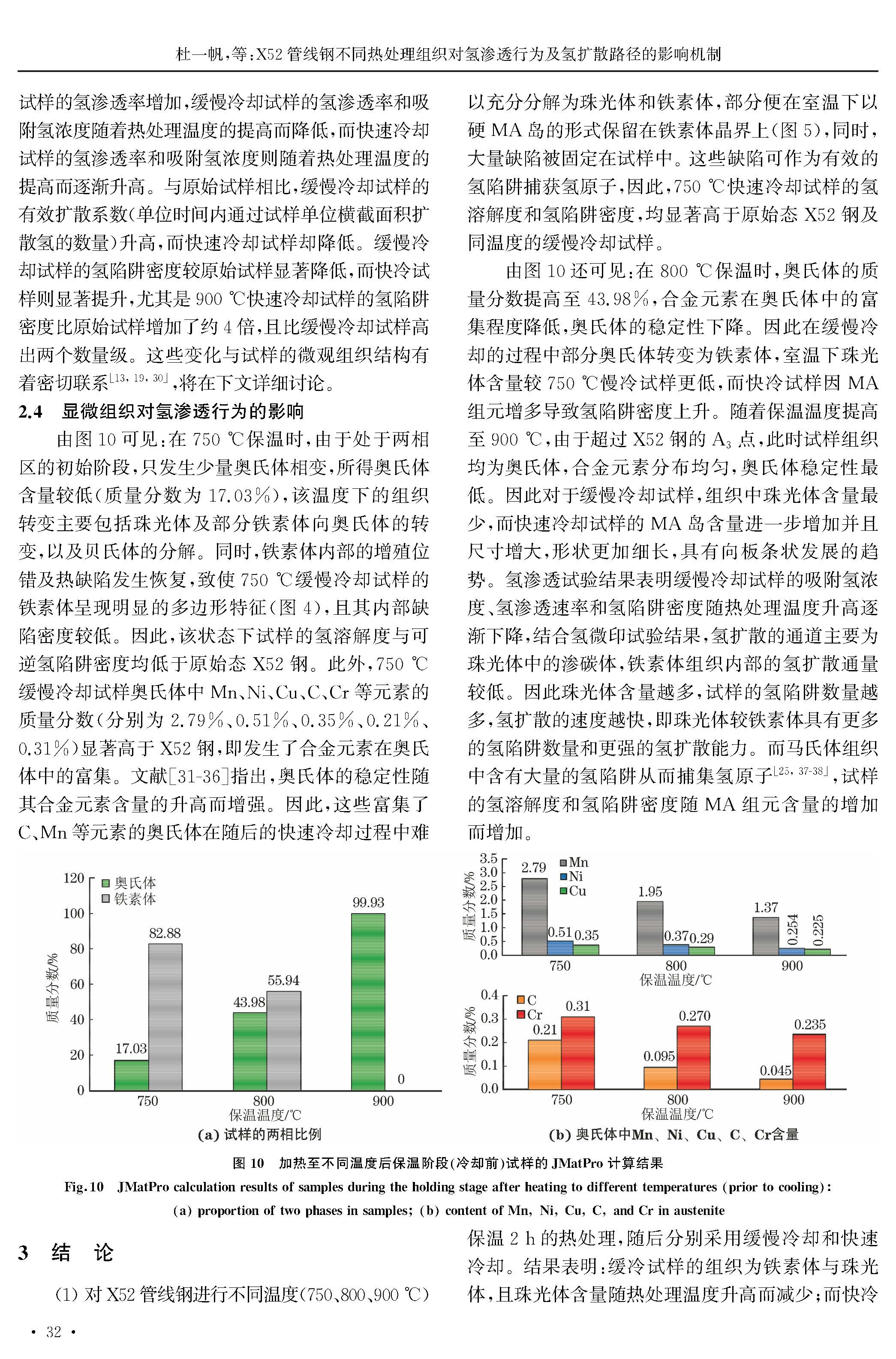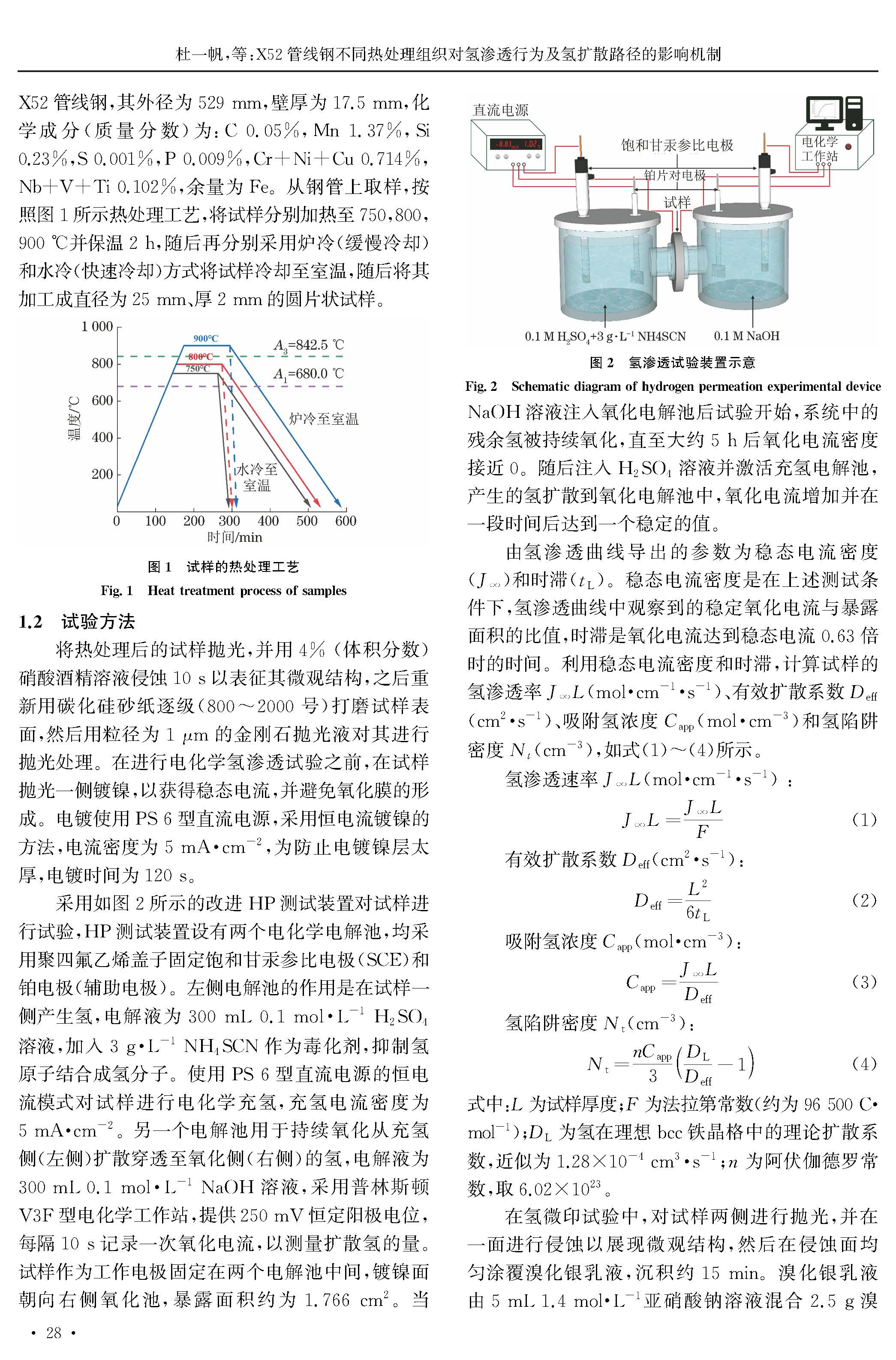 X52管线钢不同热处理组织对氢渗透行为及氢扩散路径的影响机制