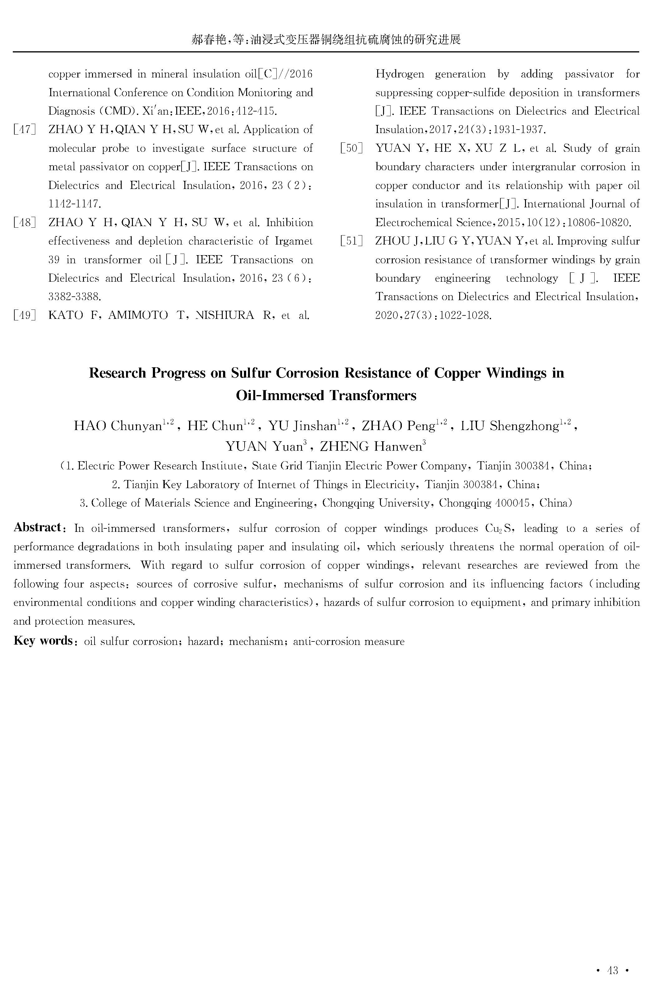 油浸式变压器铜绕组抗硫腐蚀的研究进展