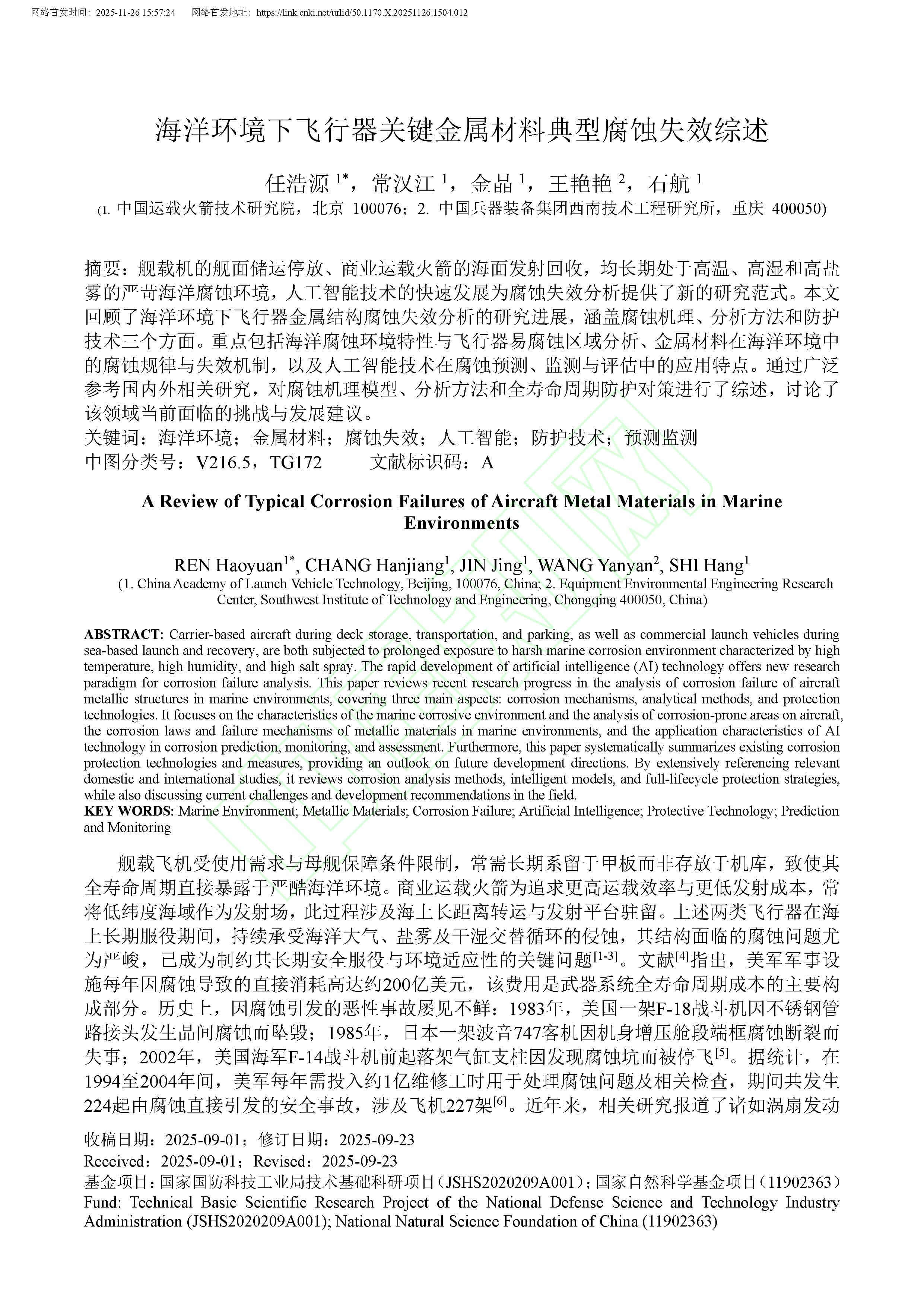 海洋环境下飞行器关键金属材料典型腐蚀失效综述