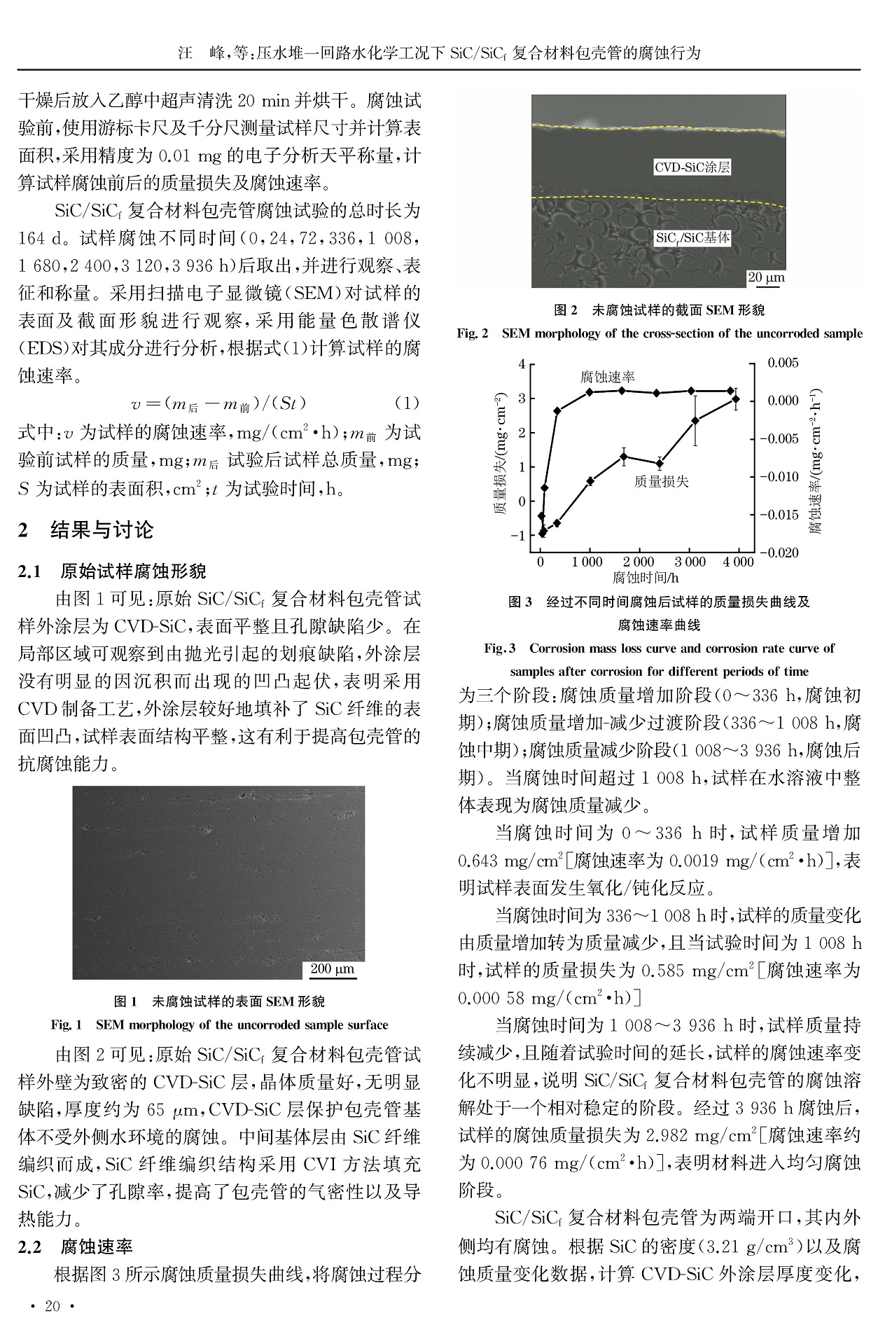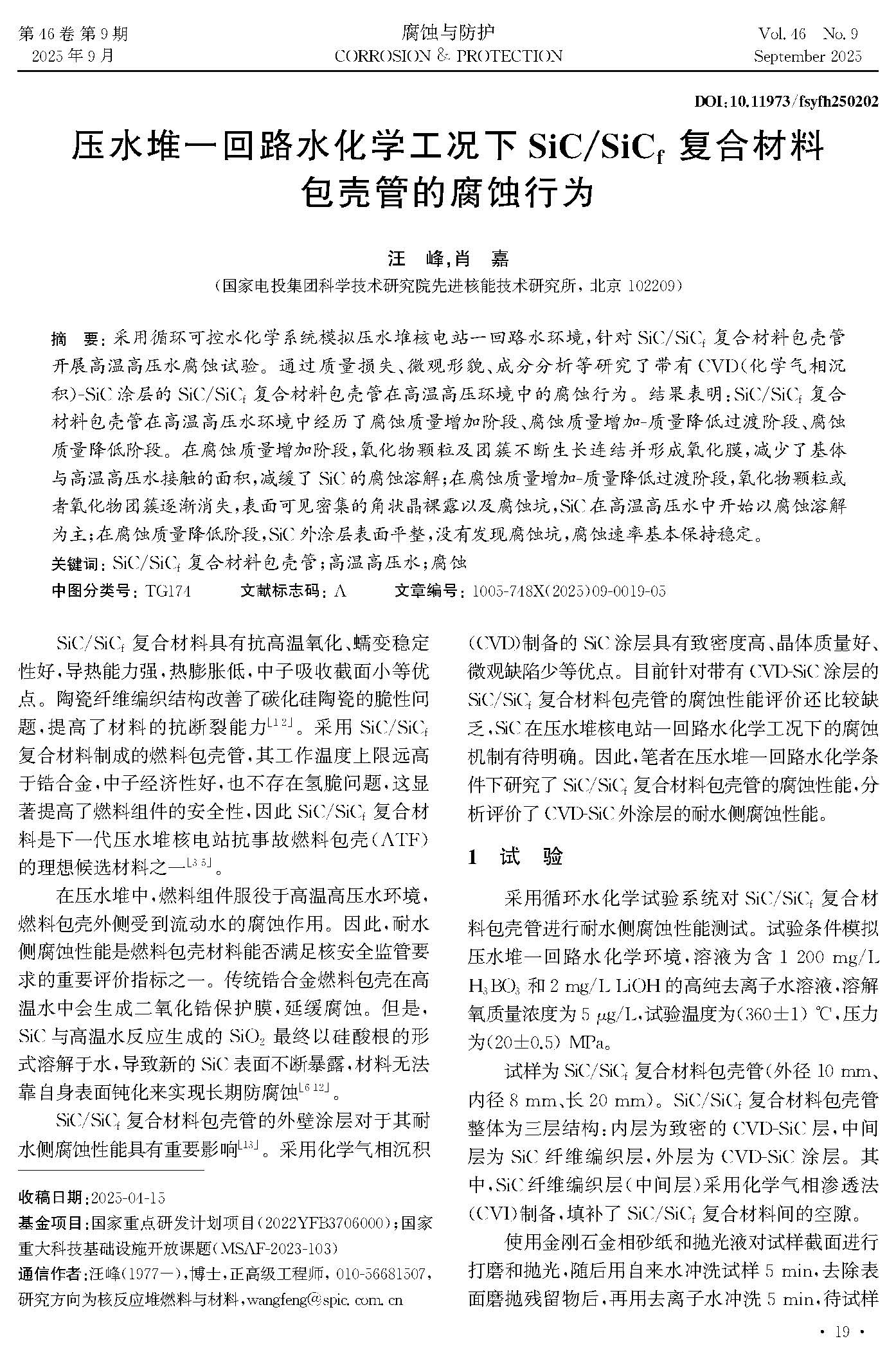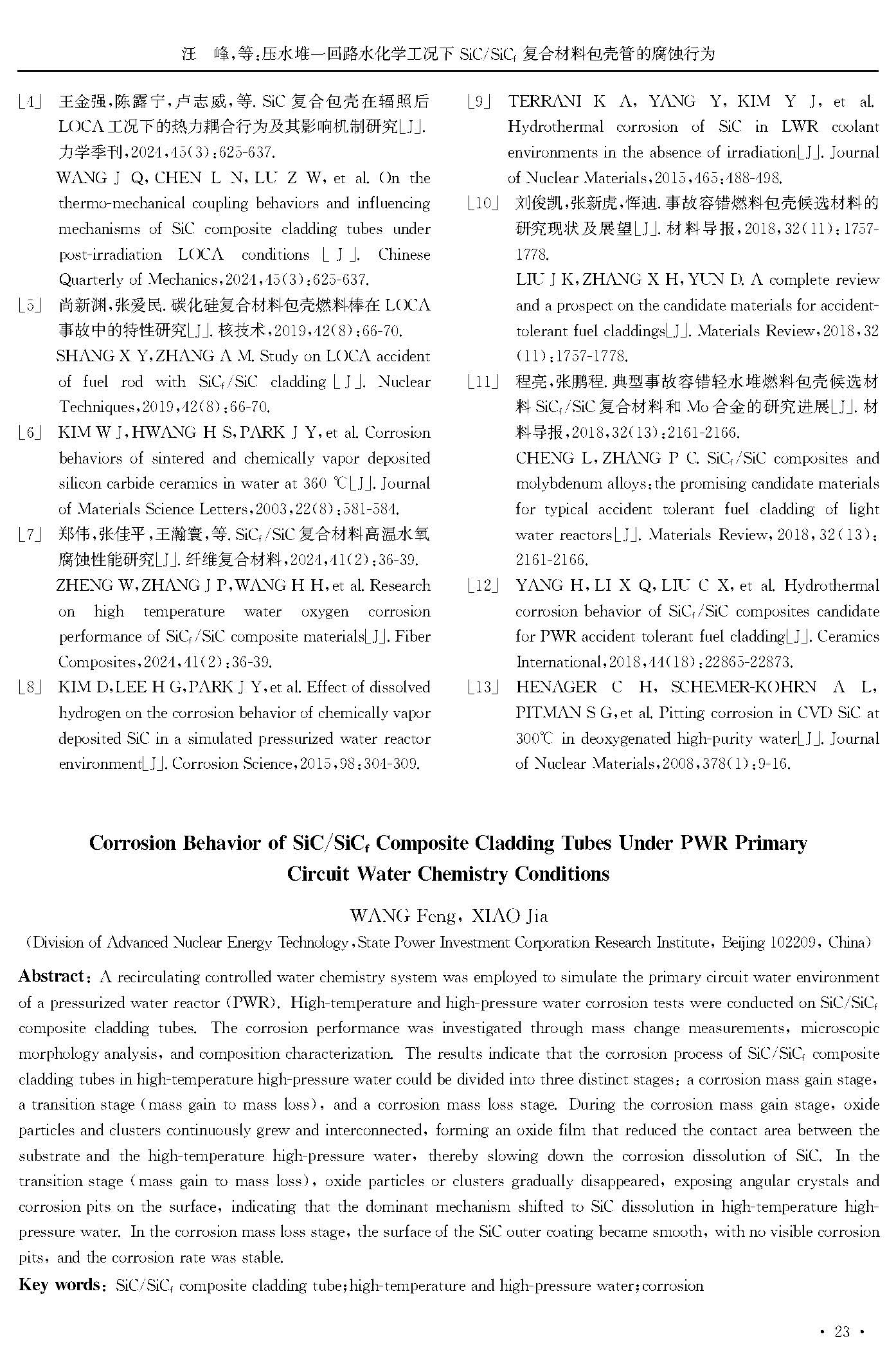 压水堆一回路水化学工况下 SiC/SiCf复合材料包壳管的腐蚀行为