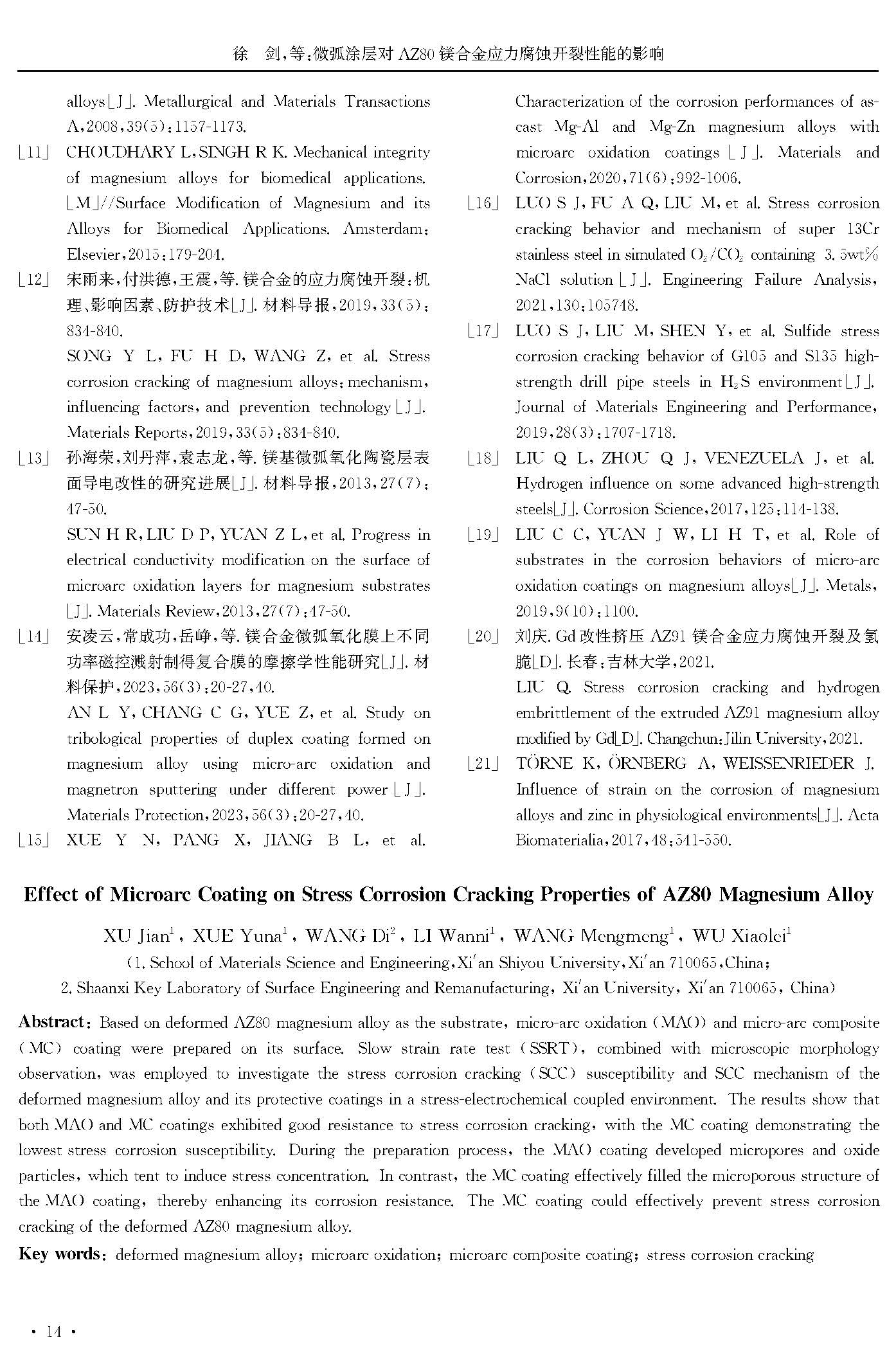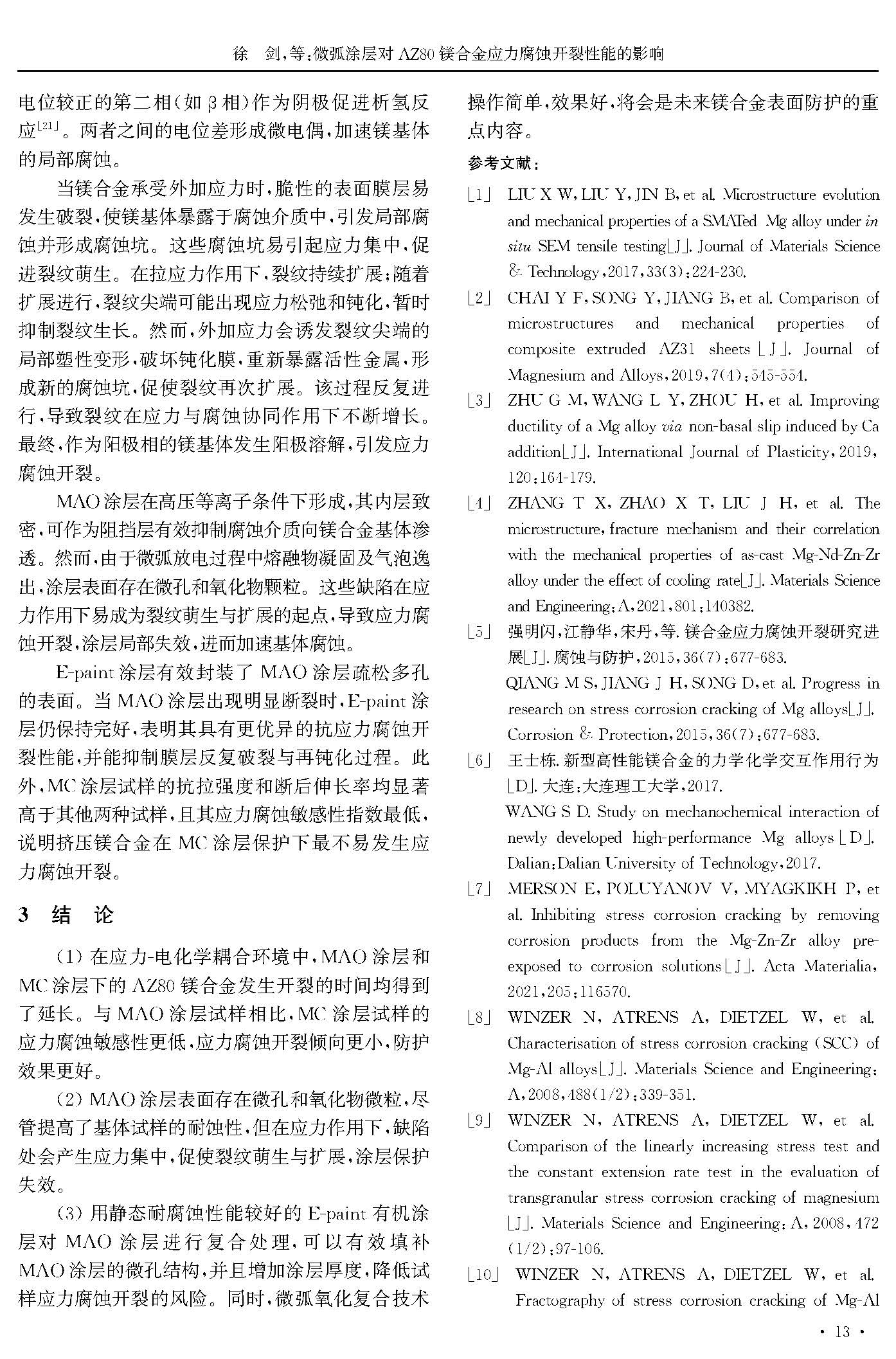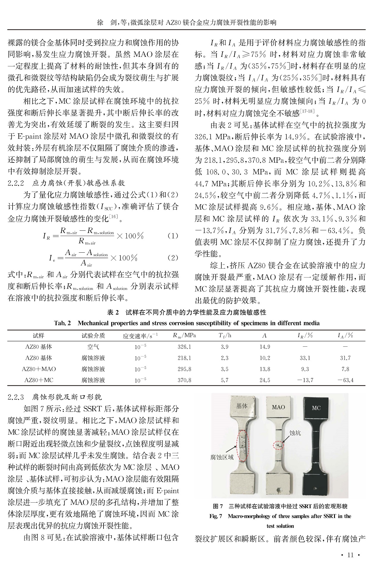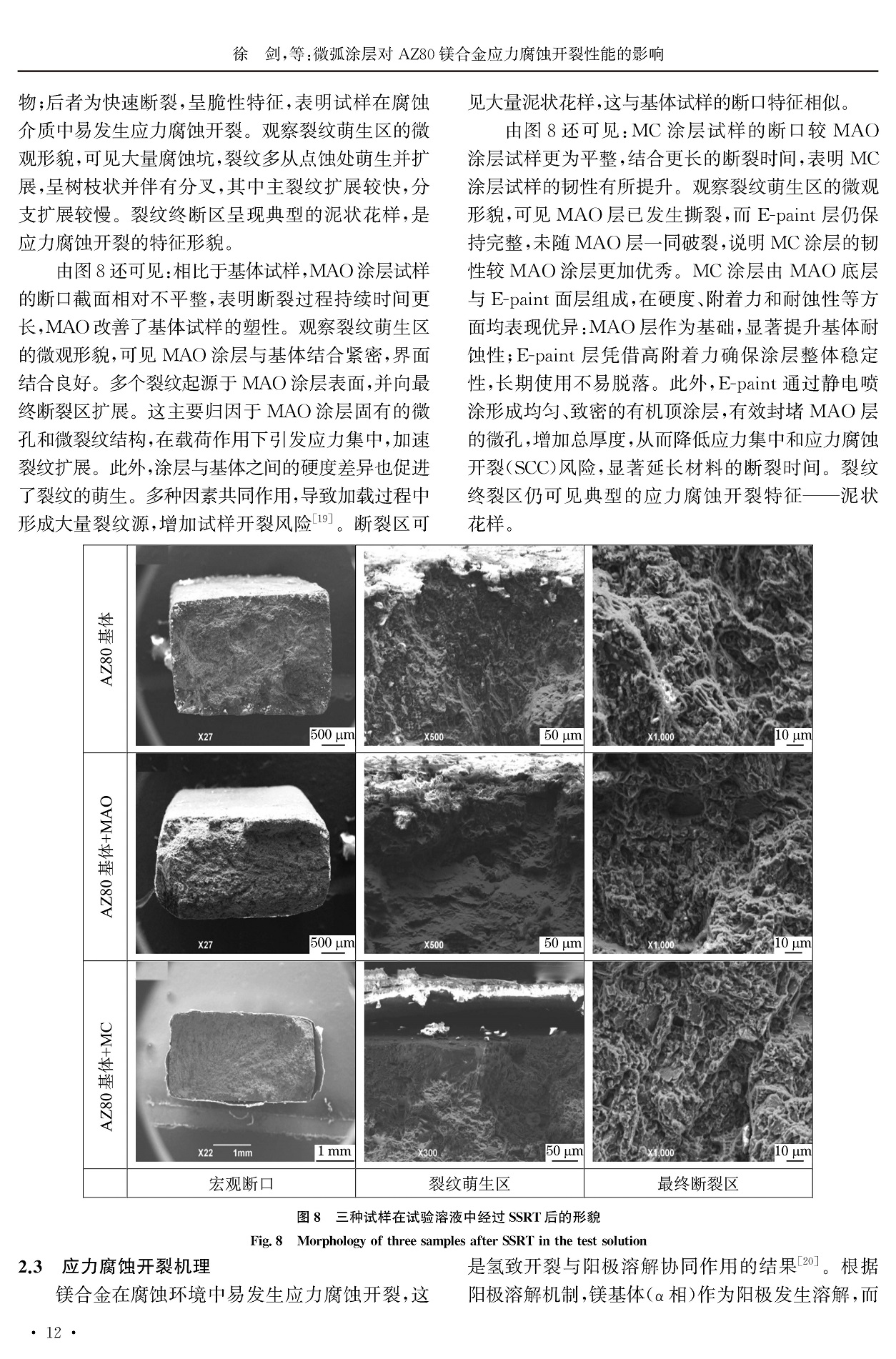 微弧涂层对AZ80镁合金应力腐蚀开裂性能的影响